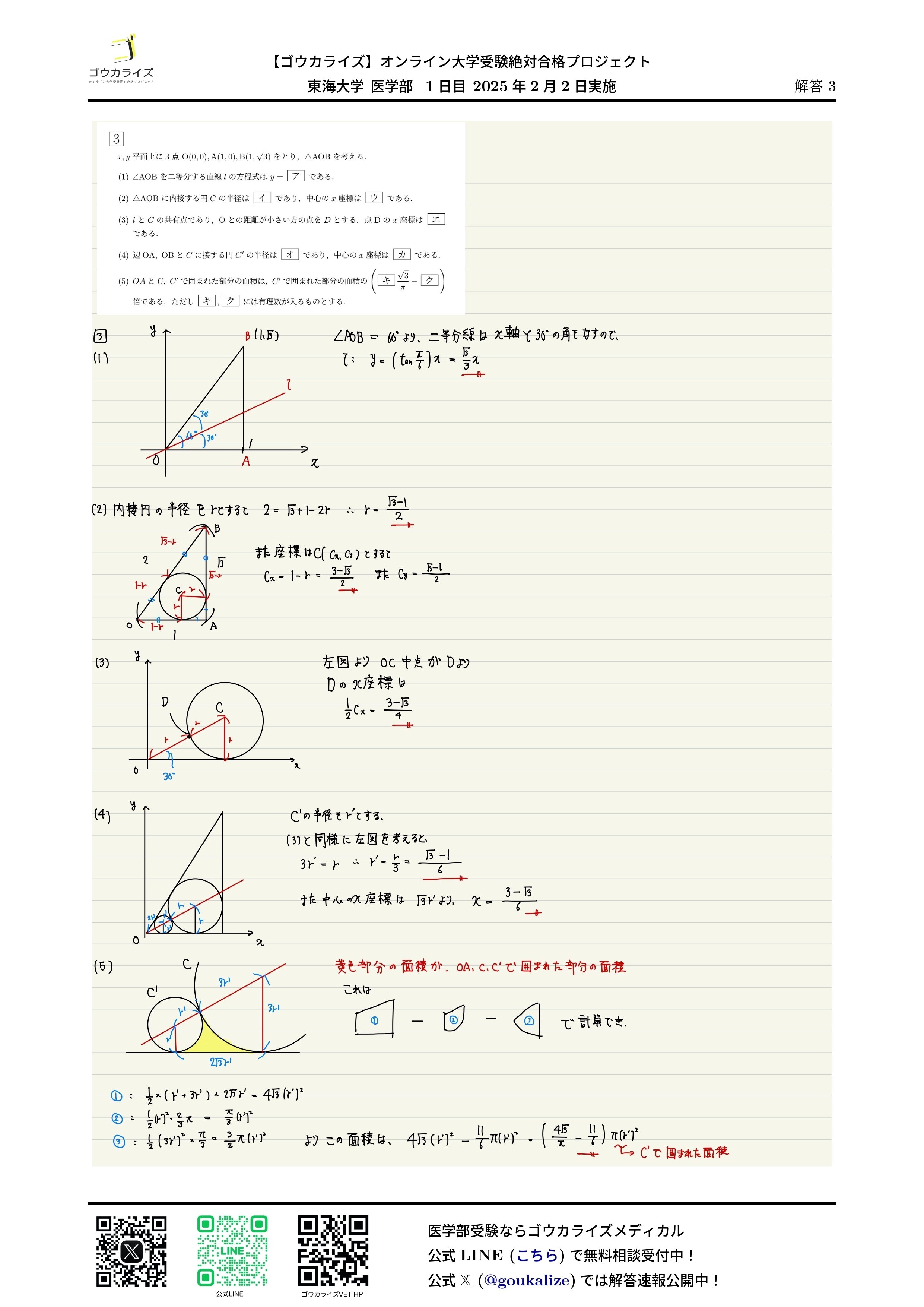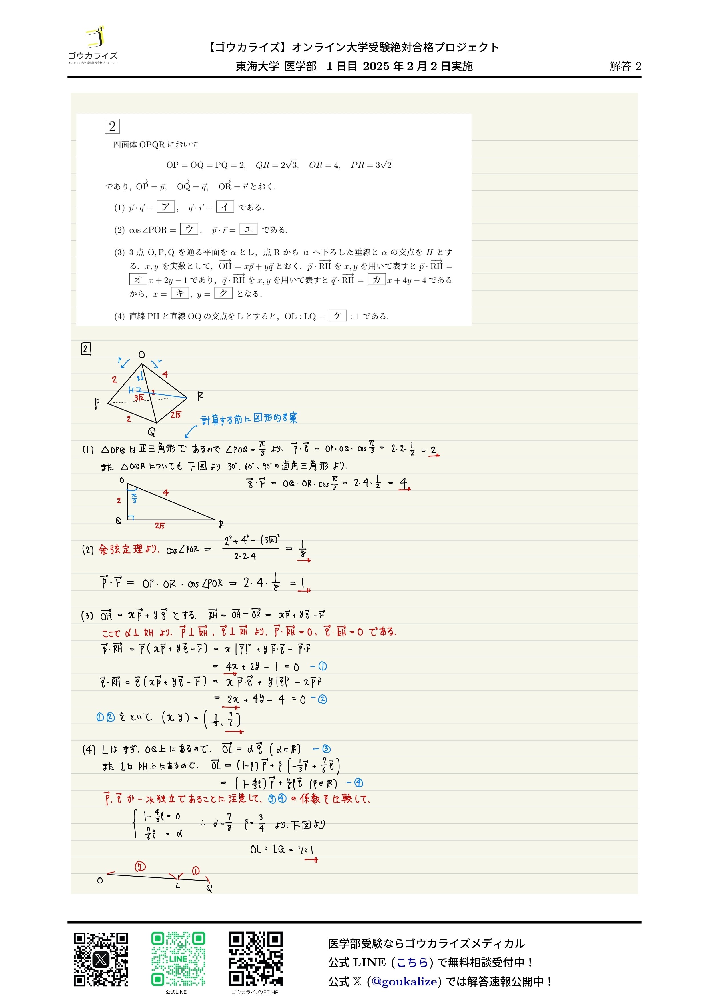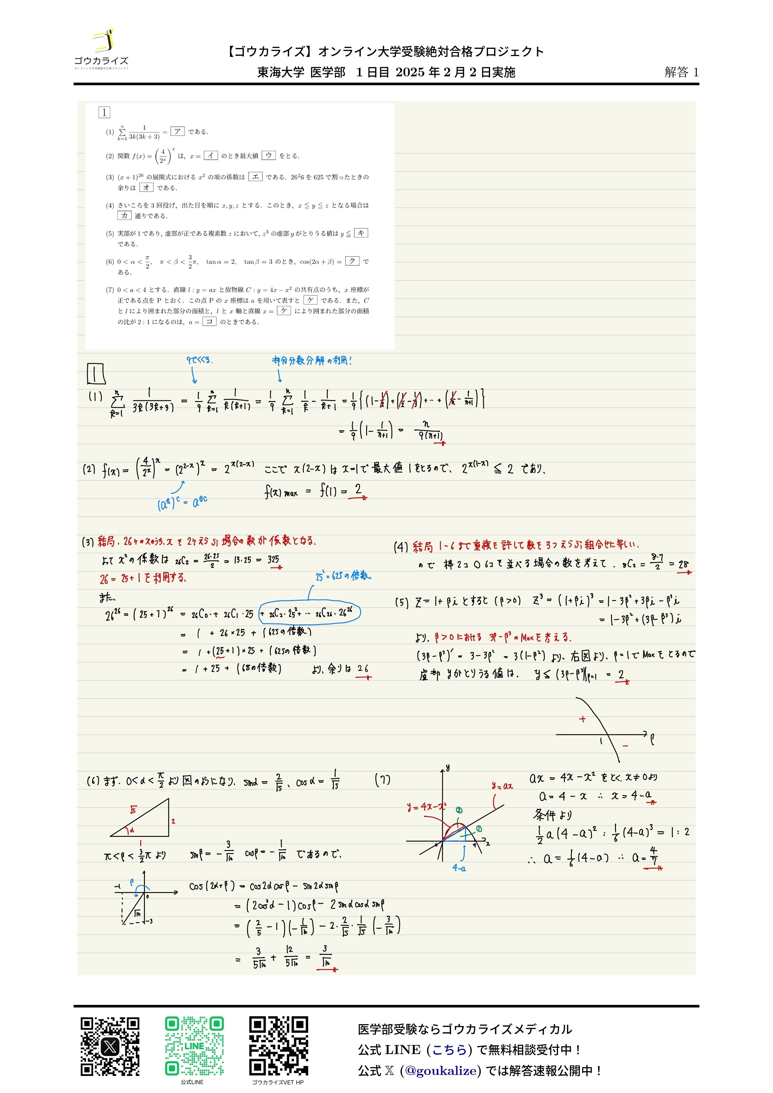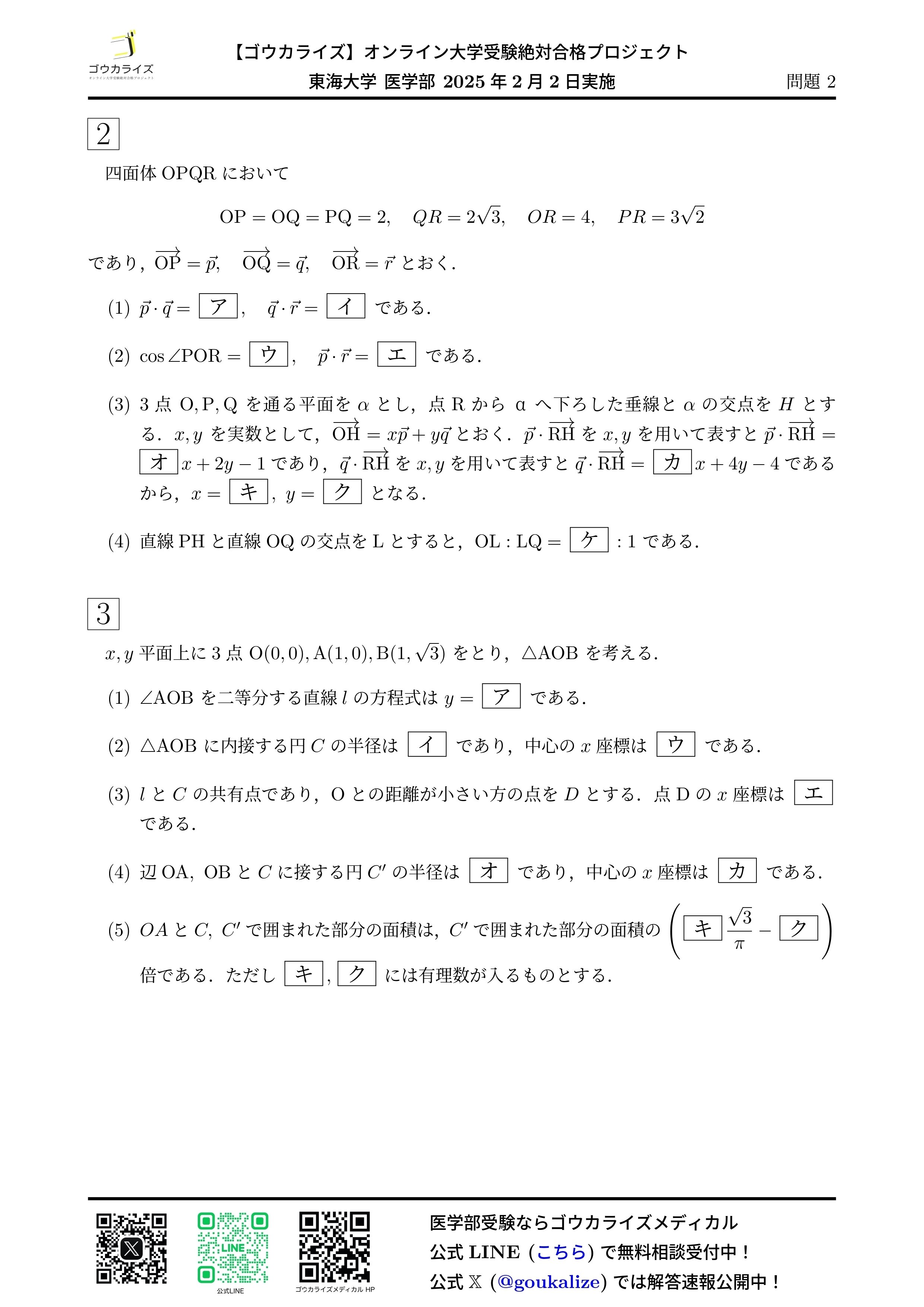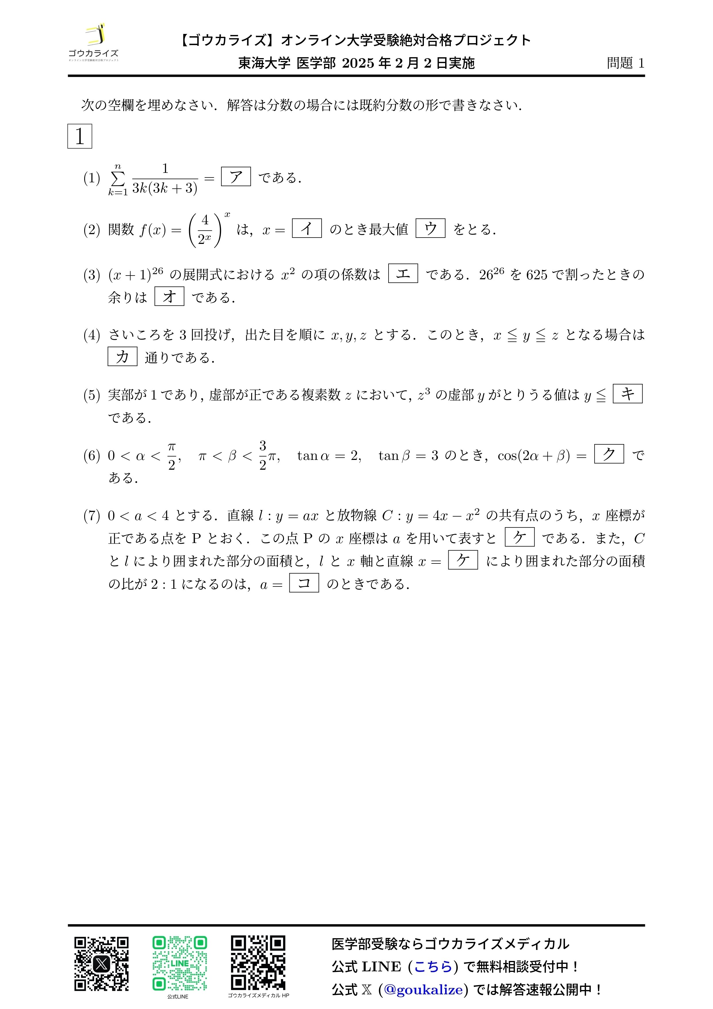 2025年 東海大学 医学部 (1日目、2/2実施) 数学 解答速報