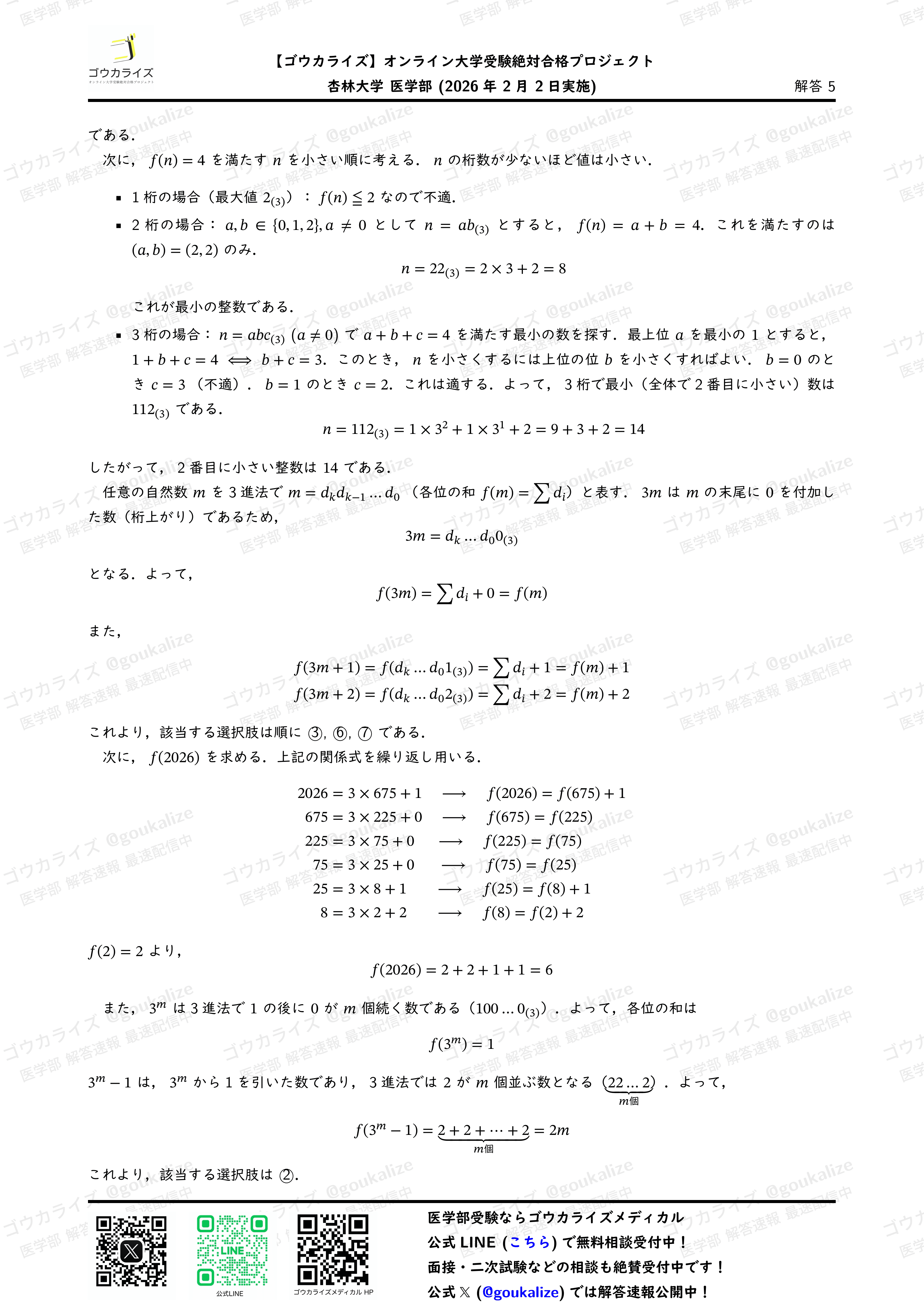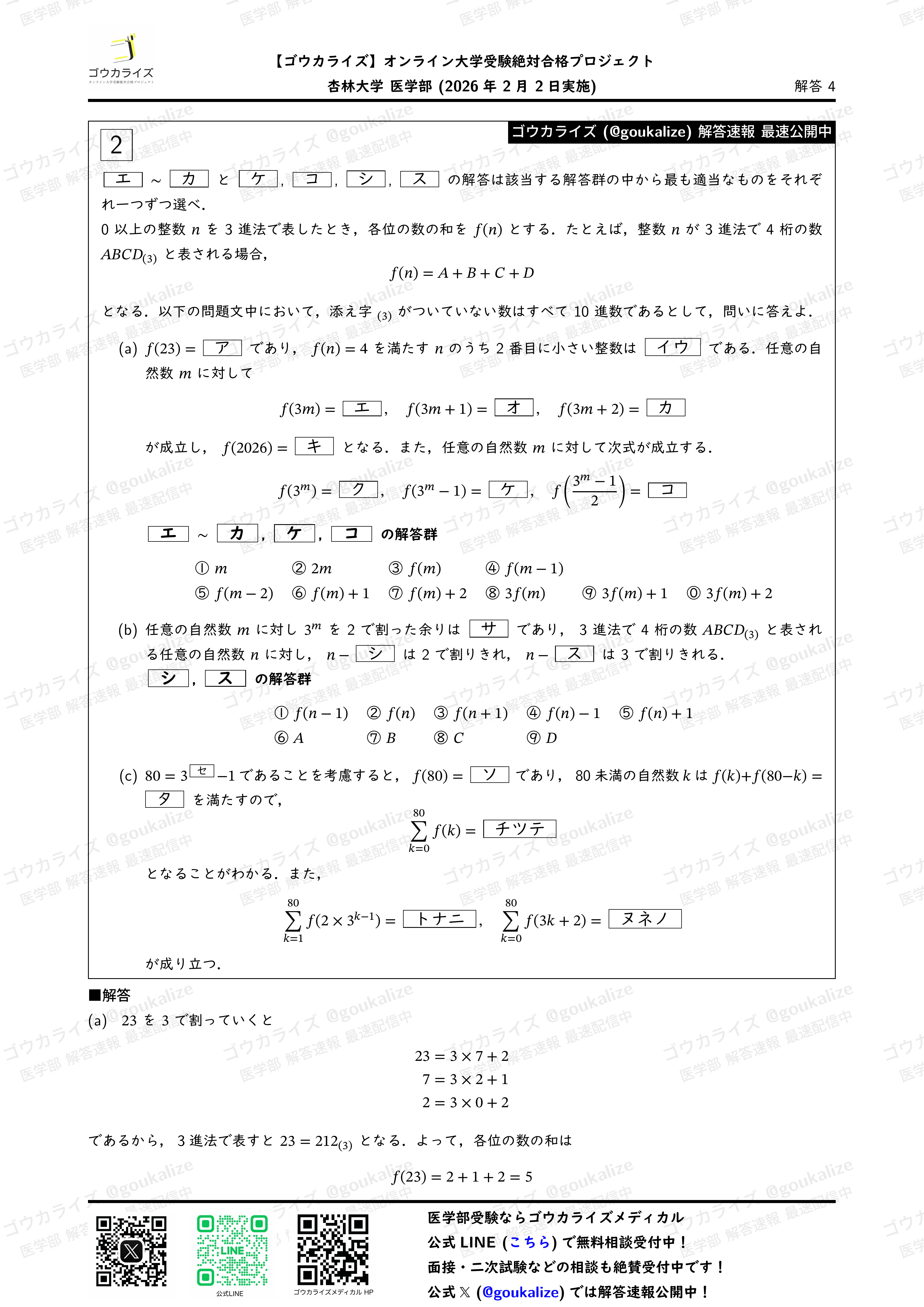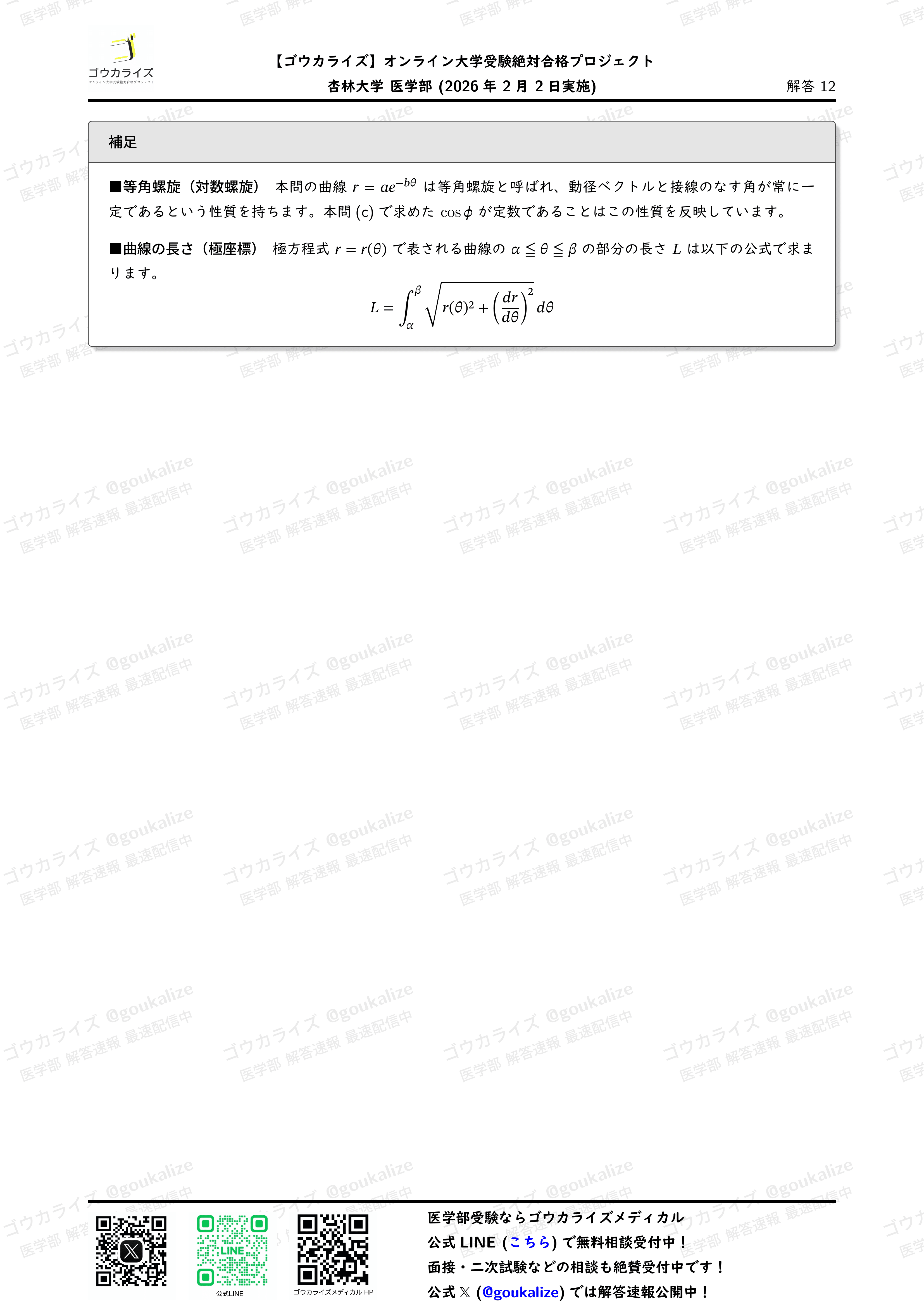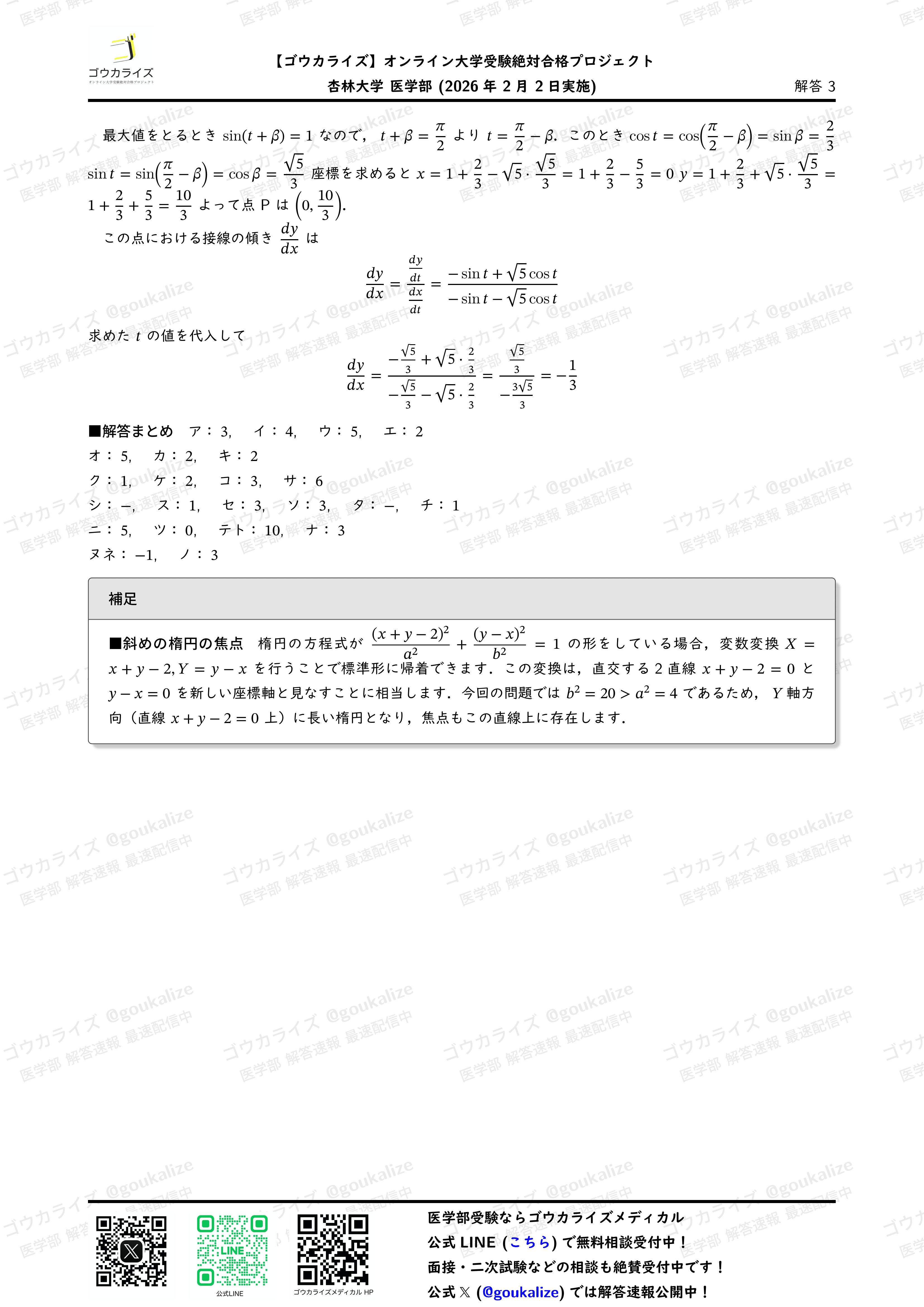 オープンチャット「2026年 医学部 解答速報【ゴウカライズ】」