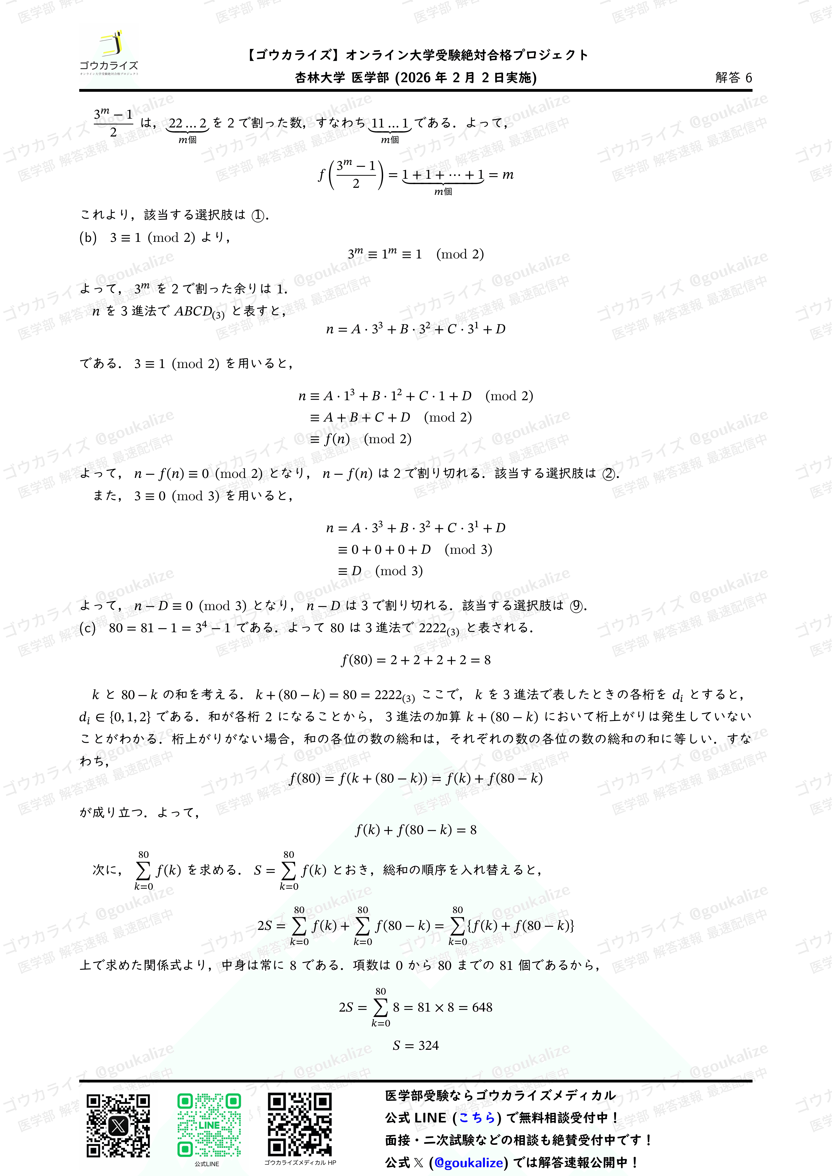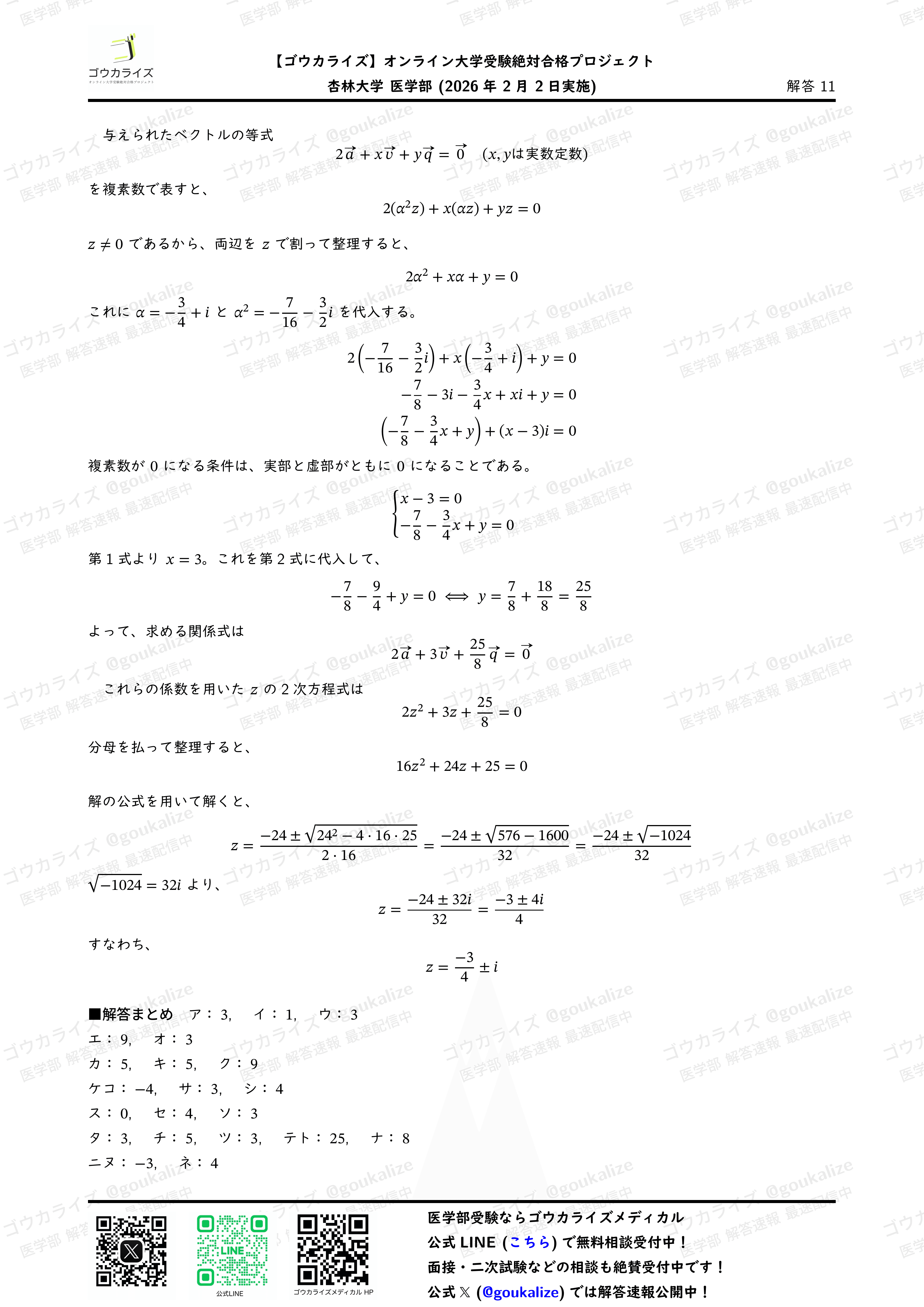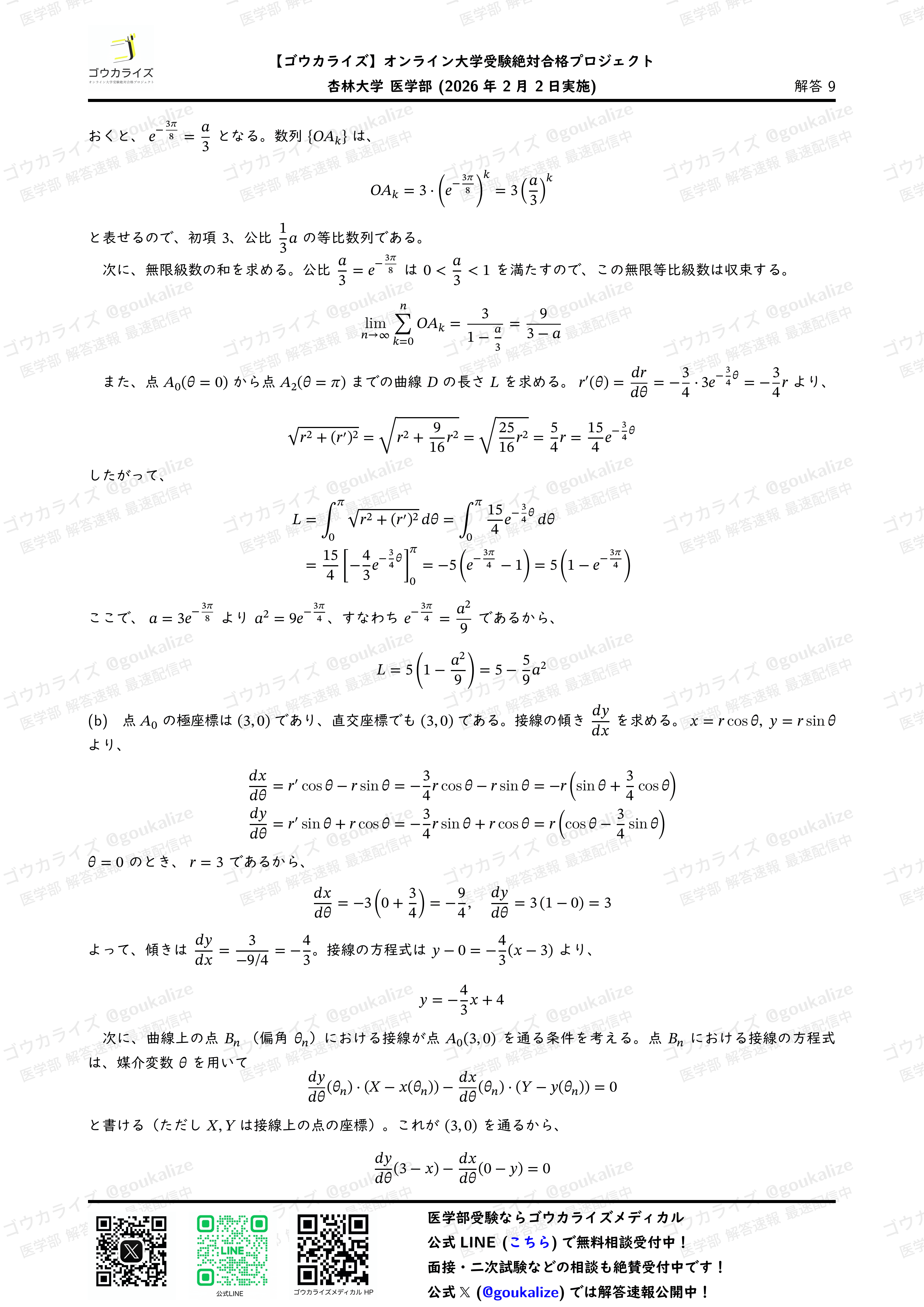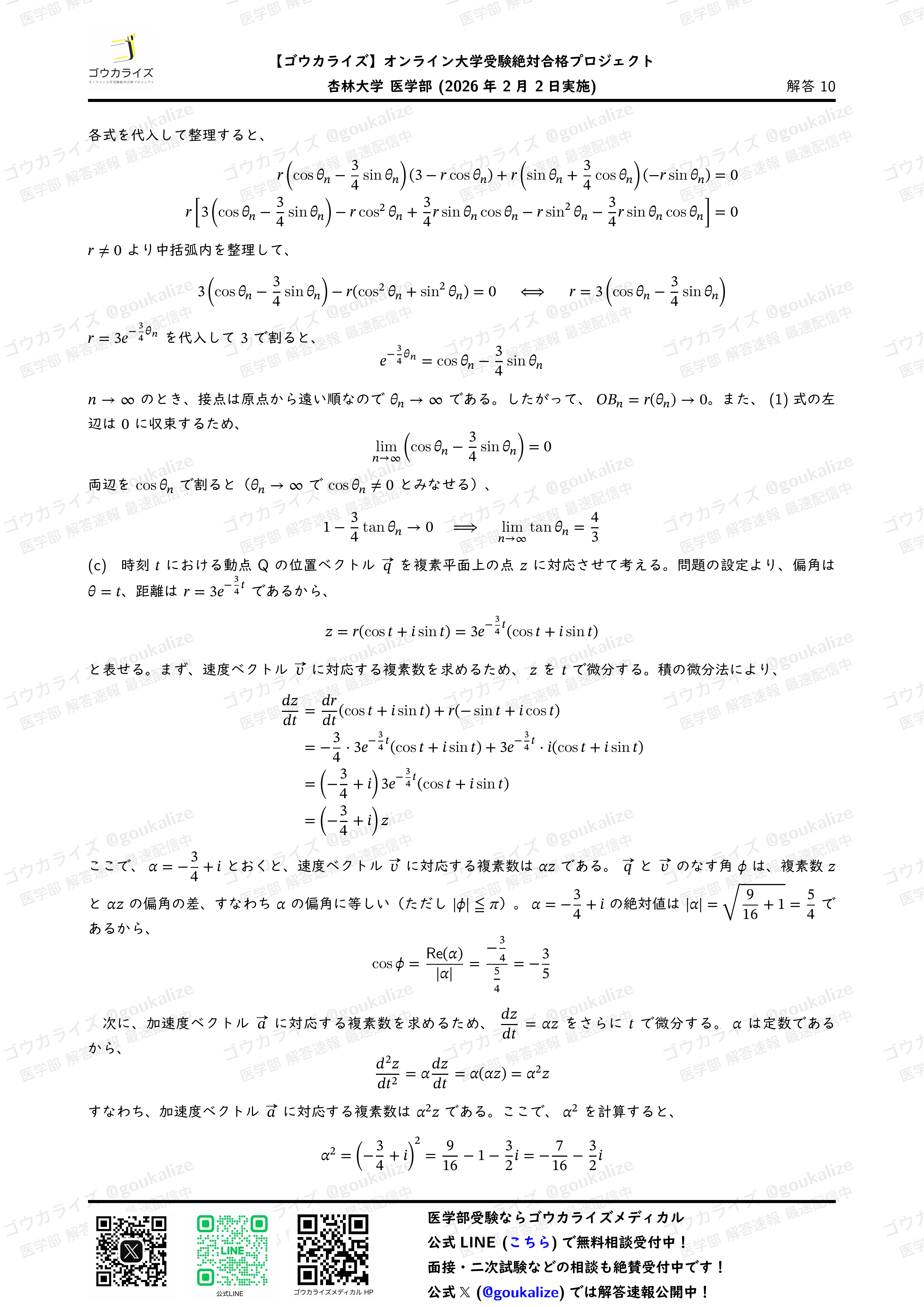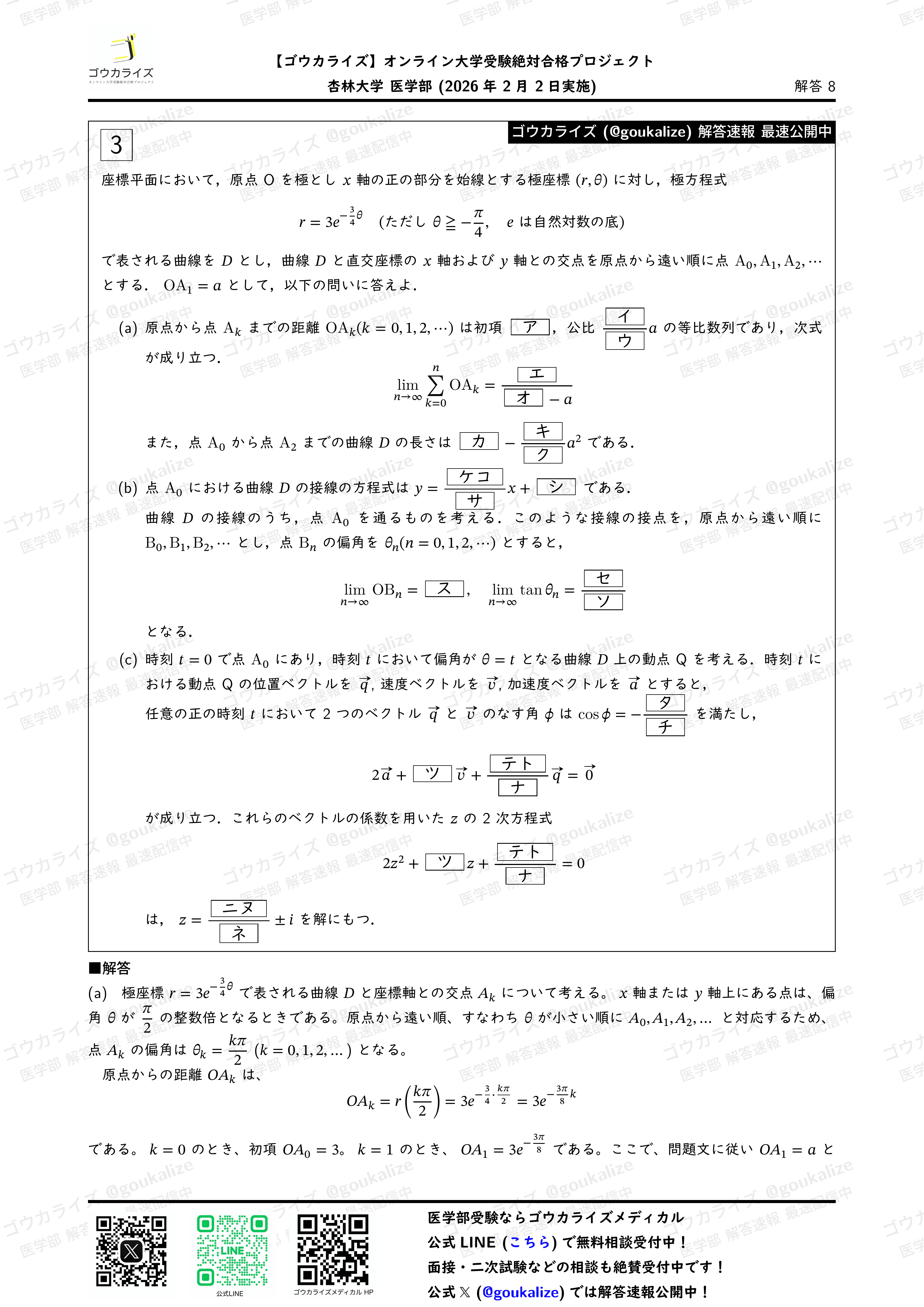 #解答速報 #医学部数学 #ゴウカライズ #医学部専門予備校 #入試数学