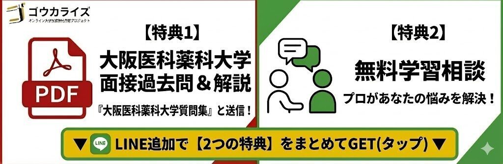 「大阪医科薬科大学医学部 面接質問集(PDF)」では、過去に報告された質問への回答例と詳しい解説をすべて網羅しています。LINE追加で無料でお送りします!
