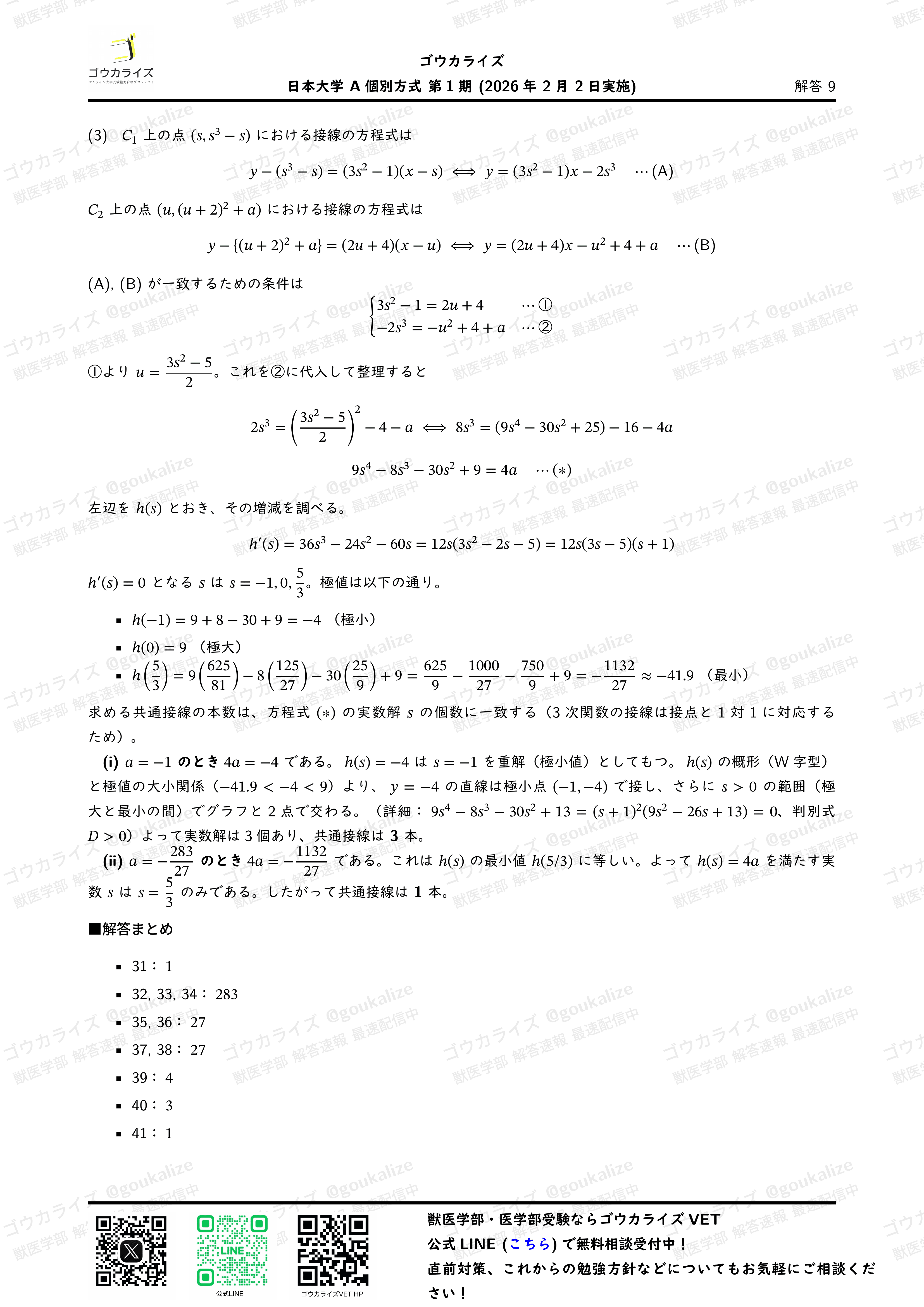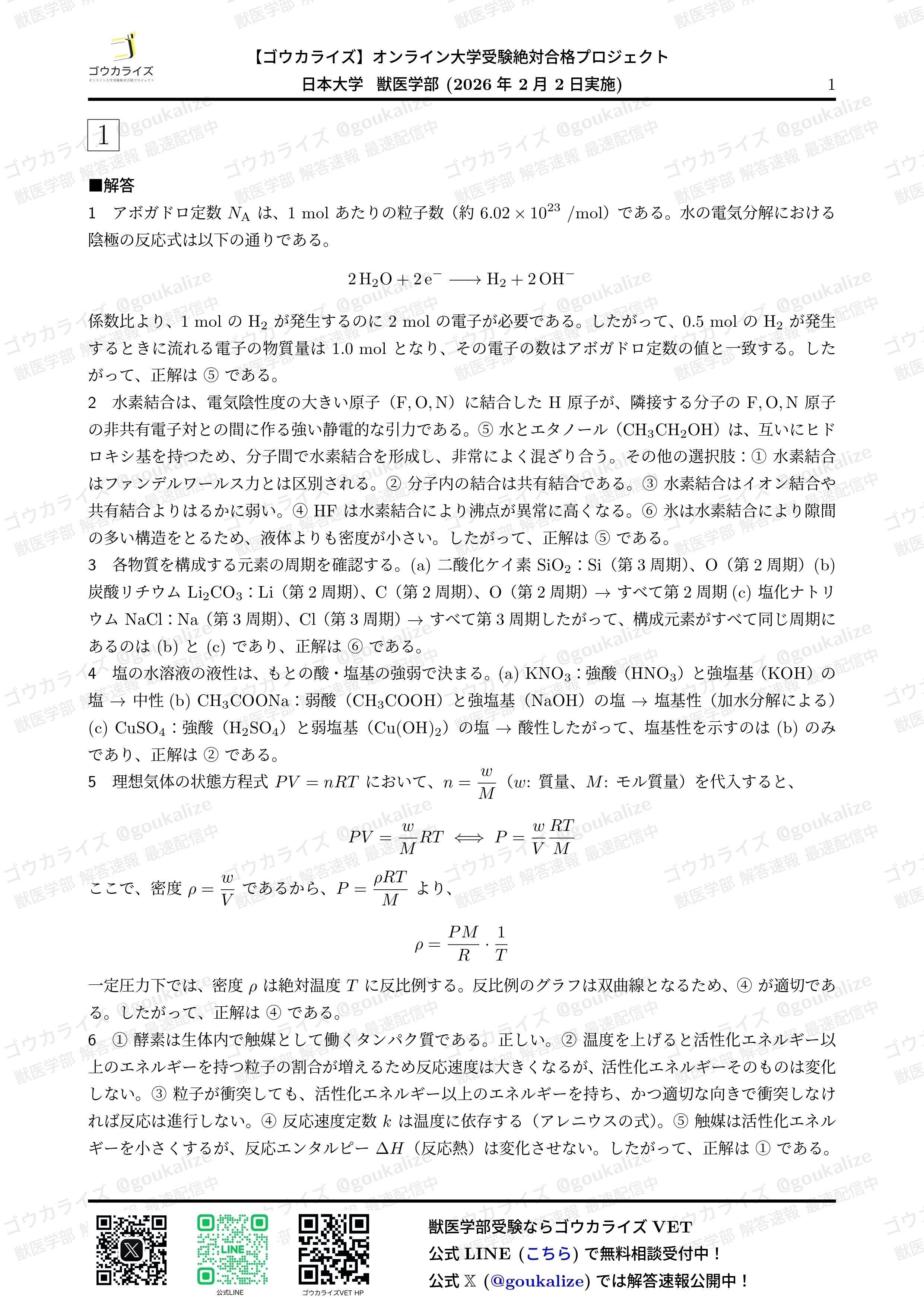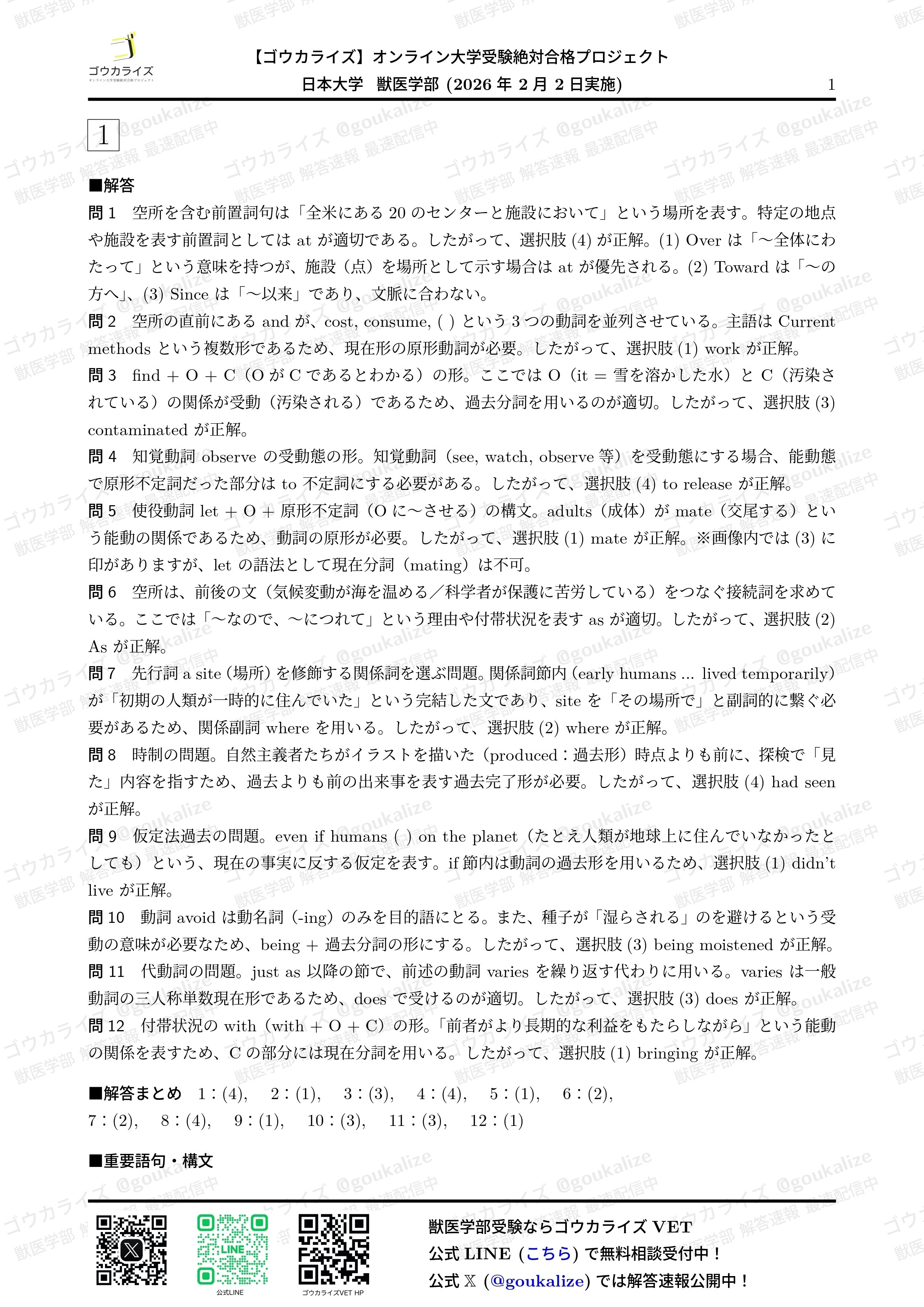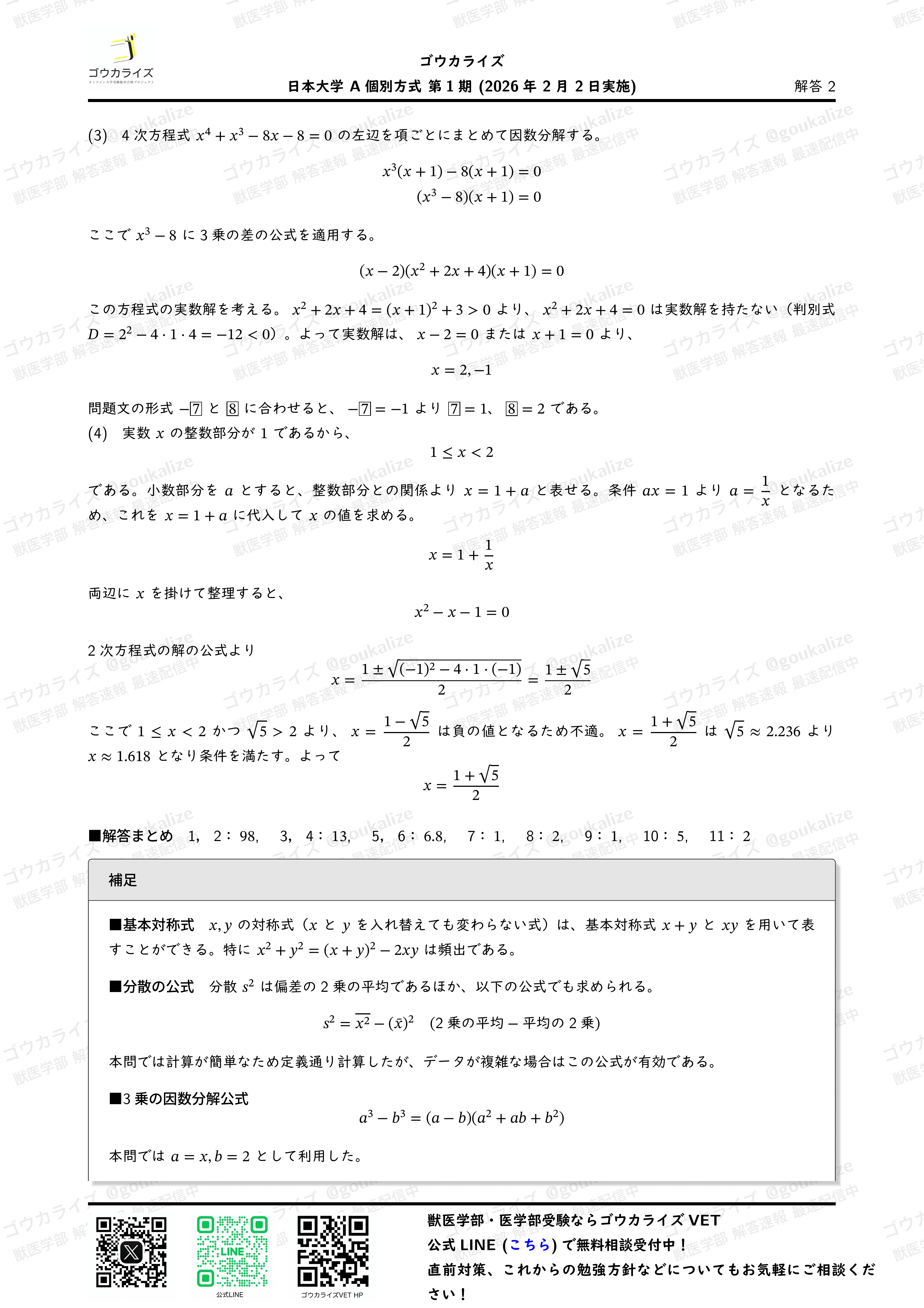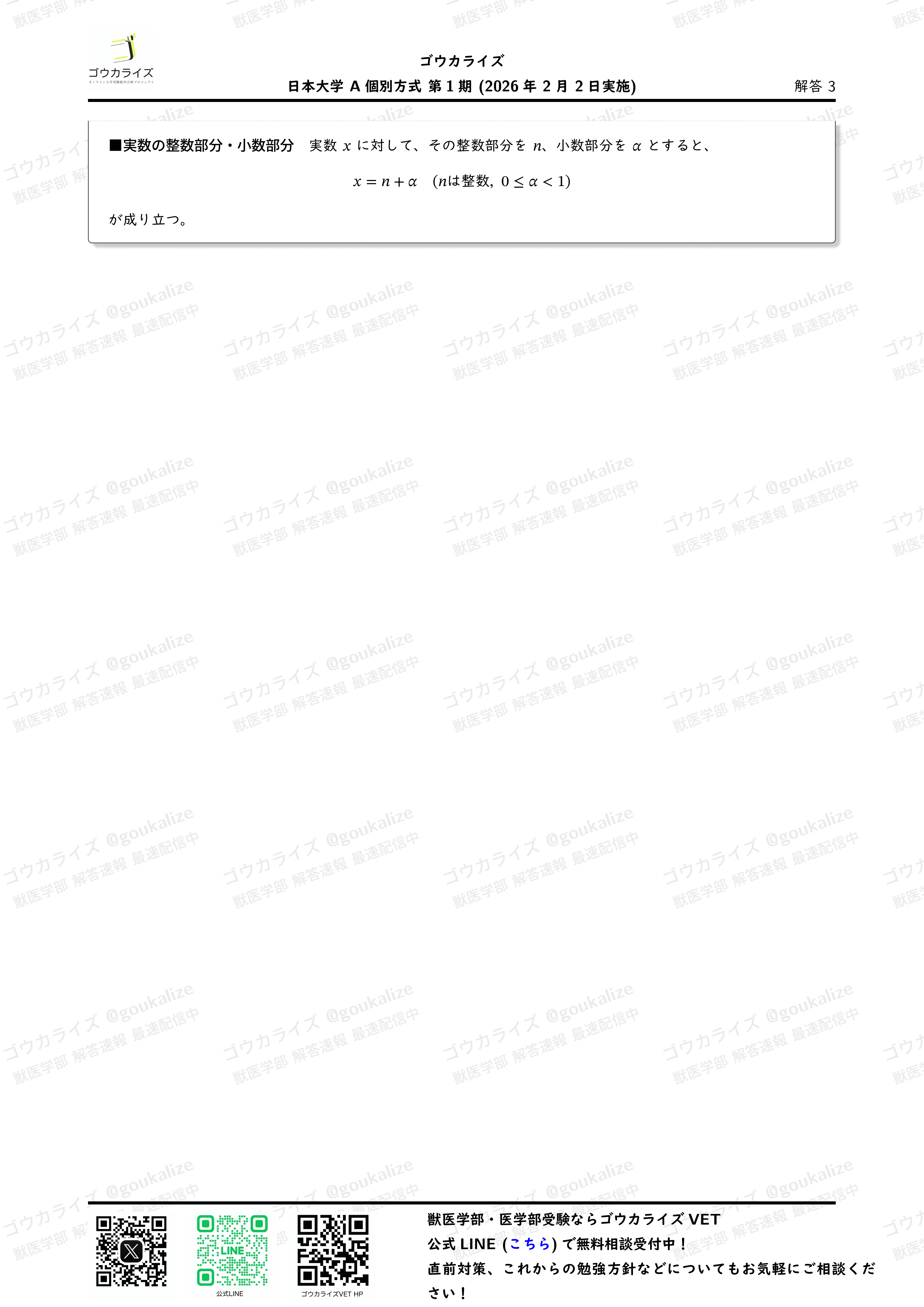 #解答速報 #獣医学部 #ゴウカライズ #獣医専門予備校 #入試数学