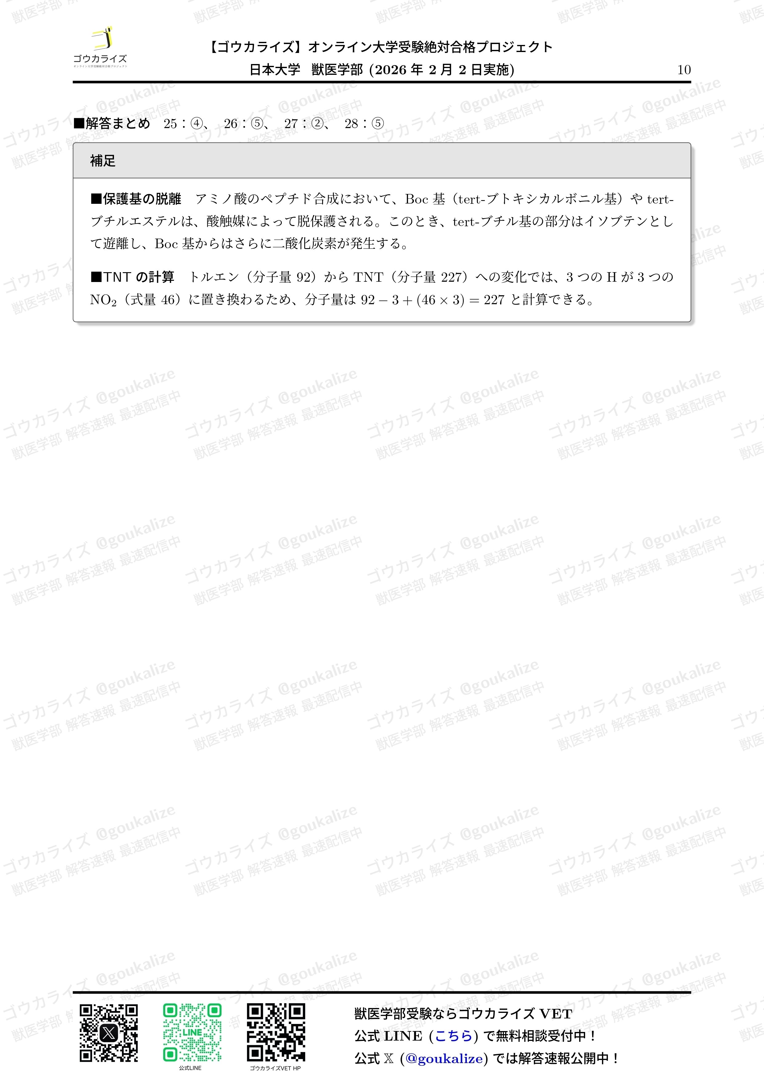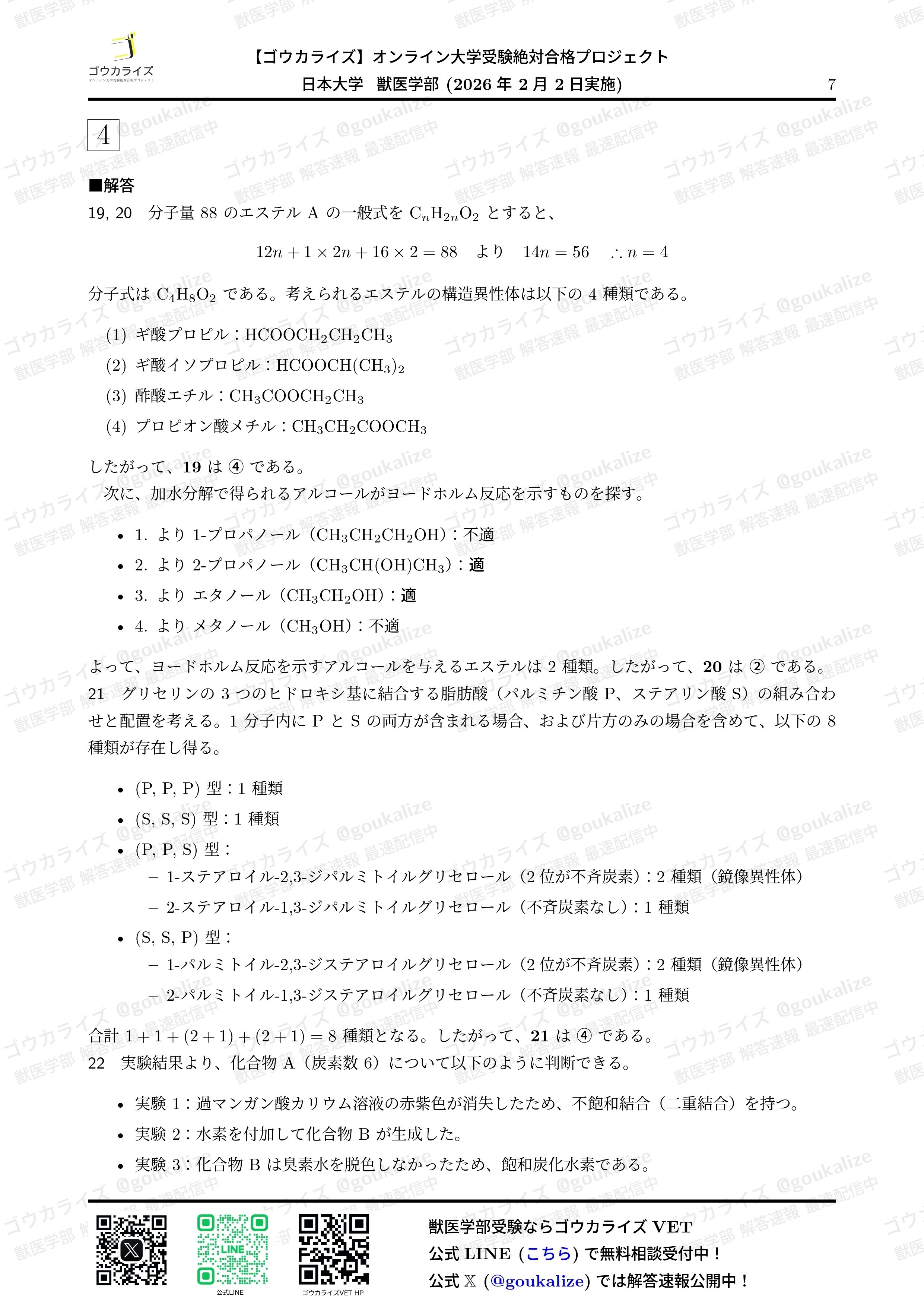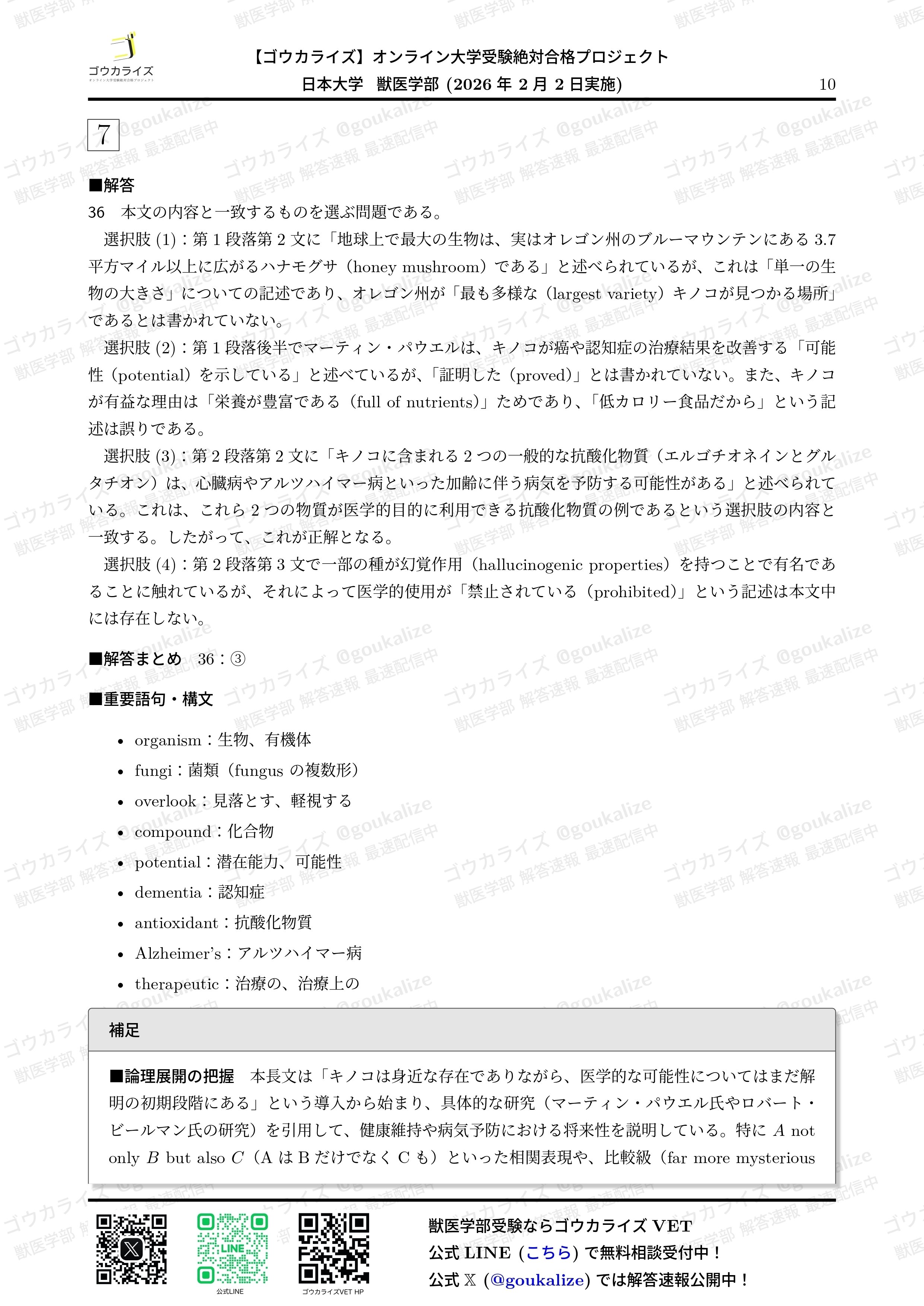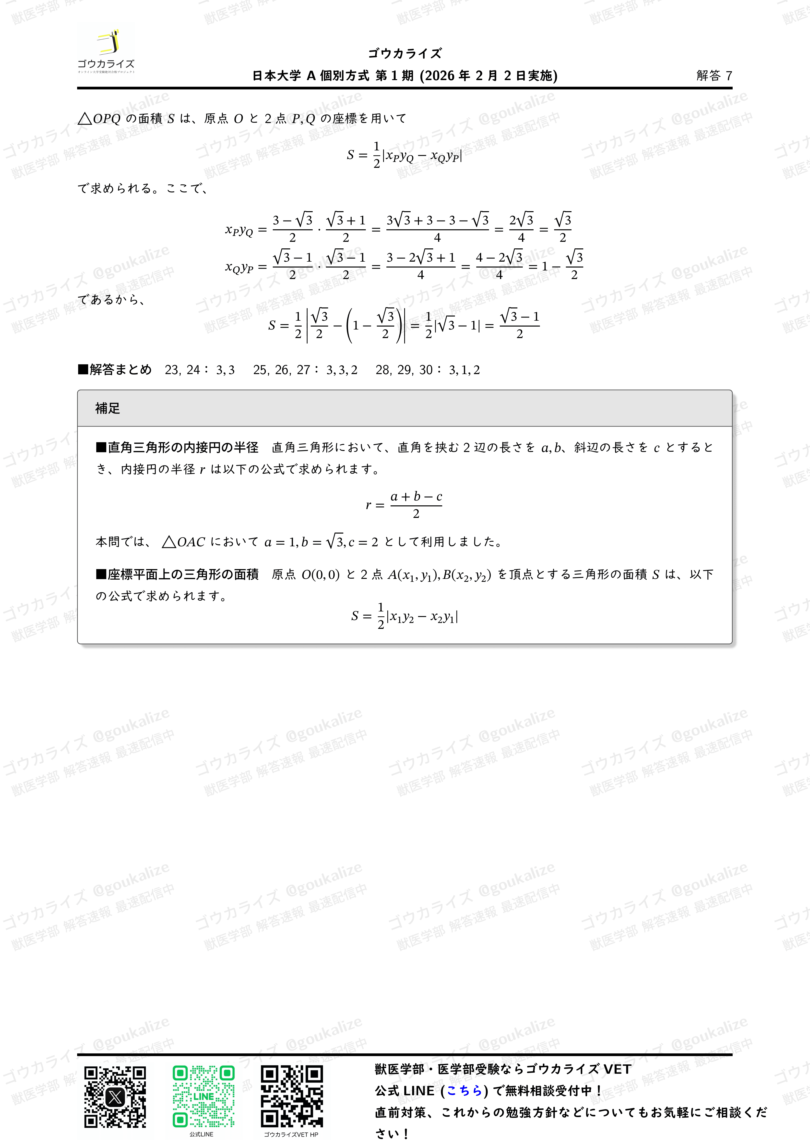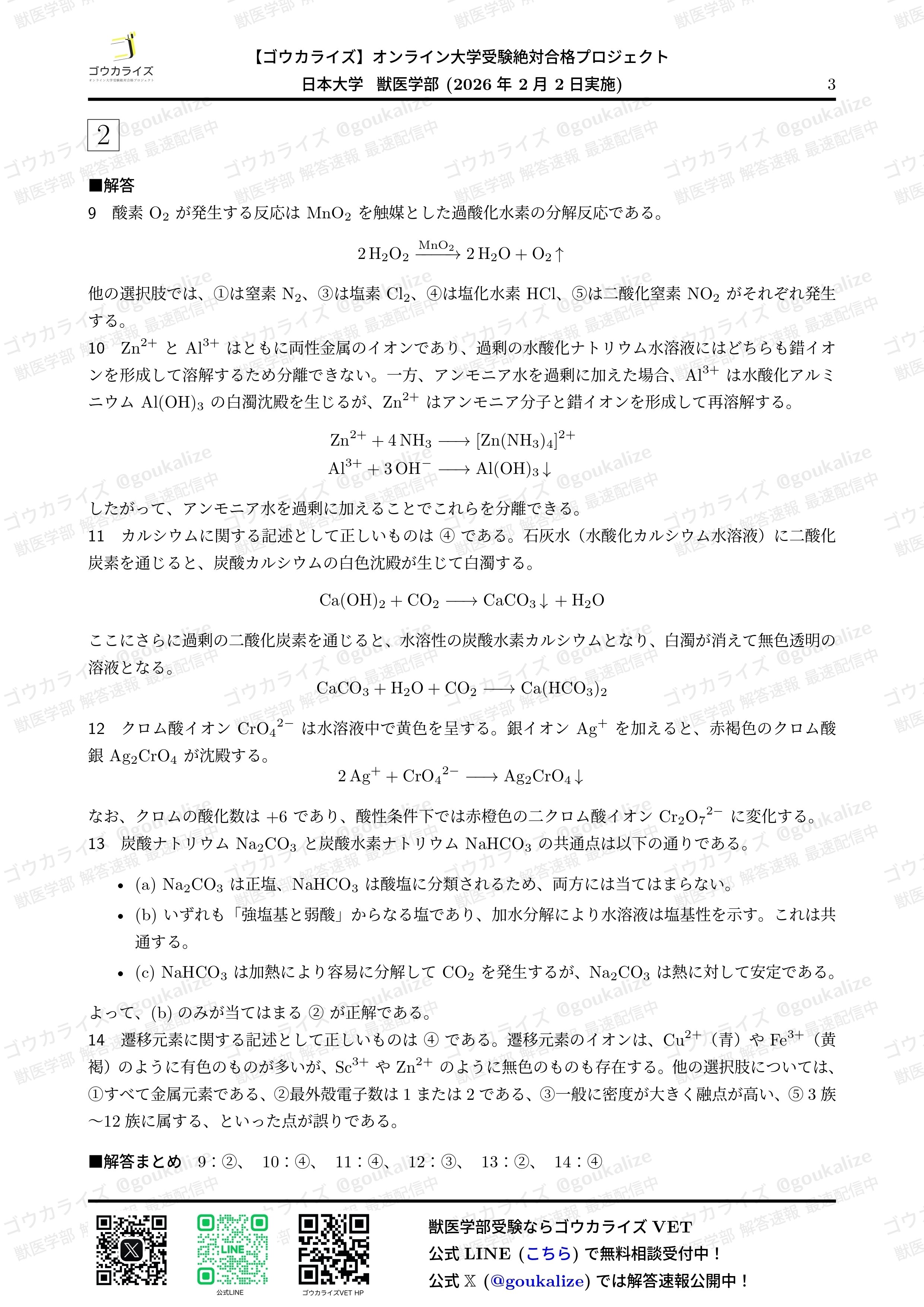 #解答速報 #獣医学部 #ゴウカライズ #獣医専門予備校 #入試数学