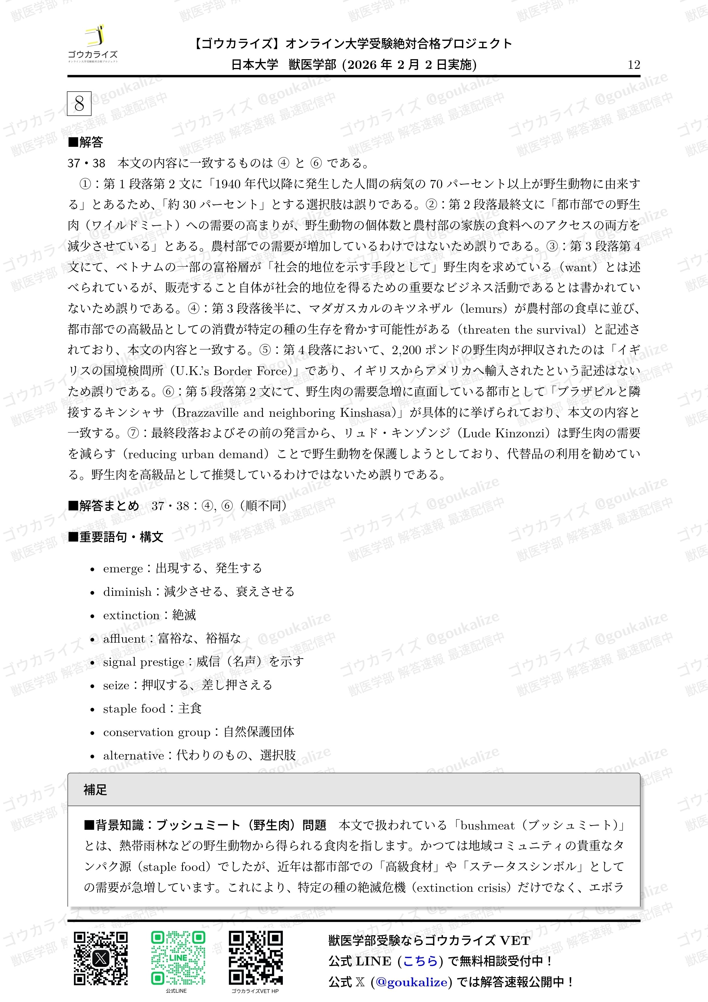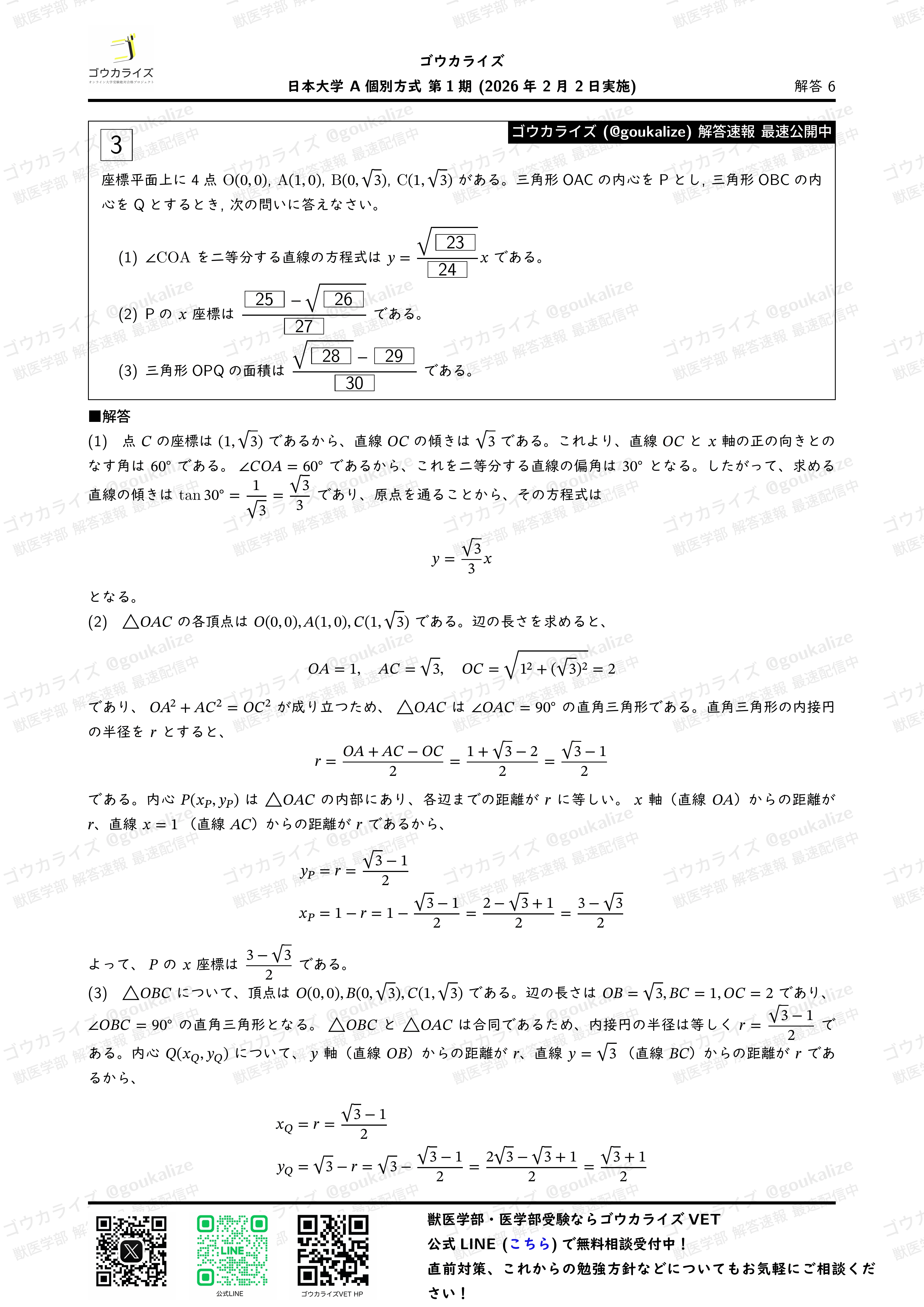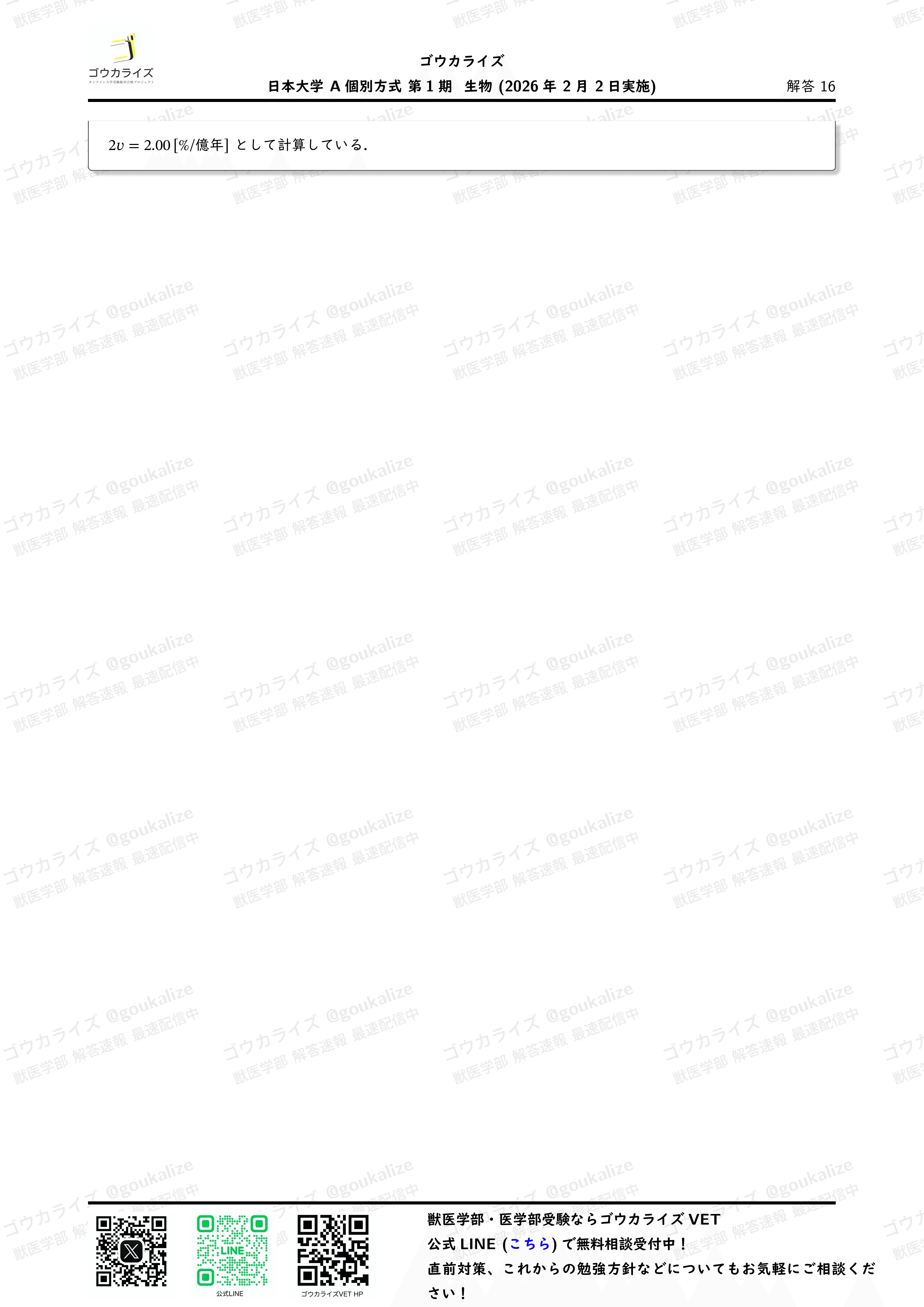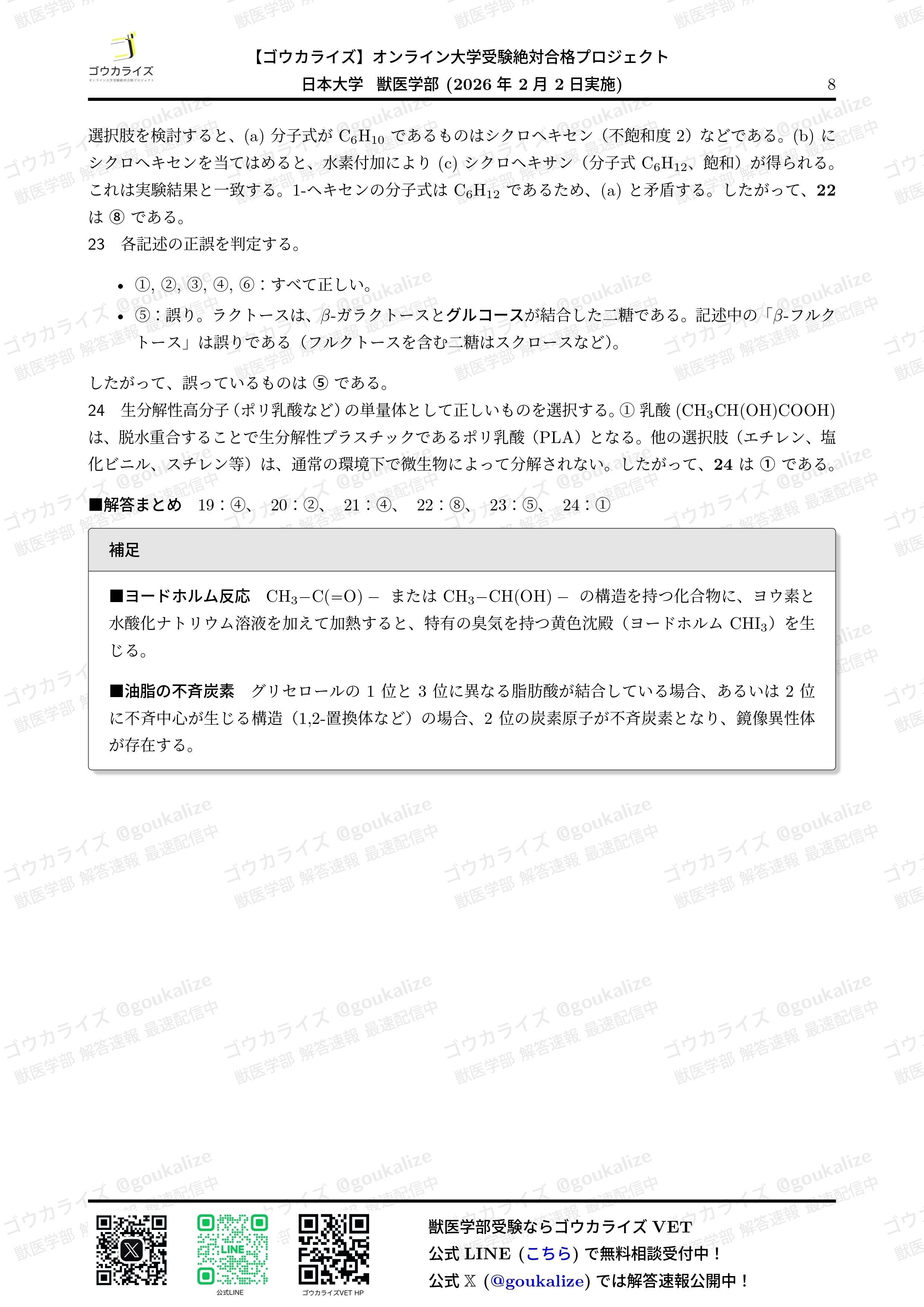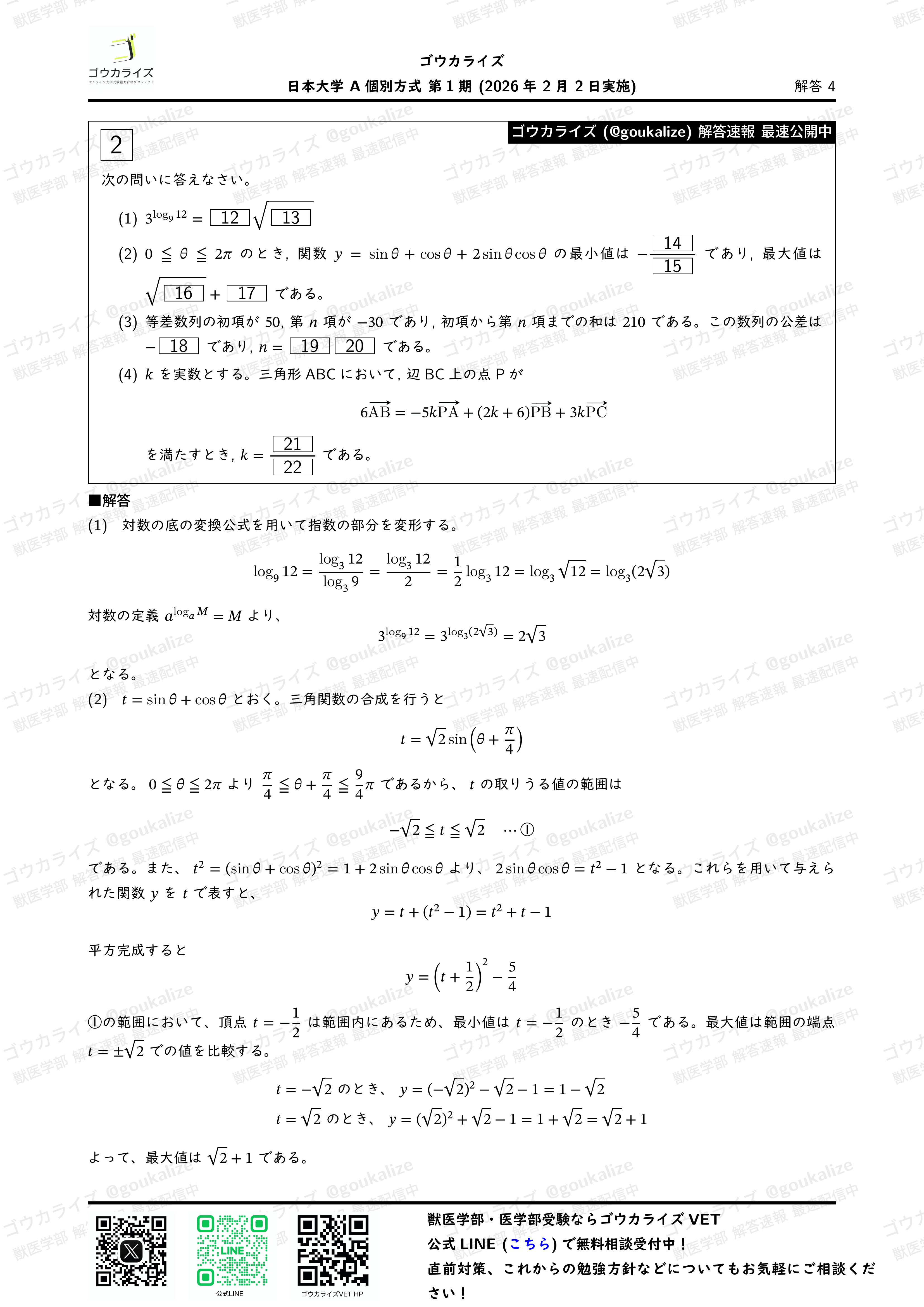 #解答速報 #獣医学部 #ゴウカライズ #獣医専門予備校 #入試数学
