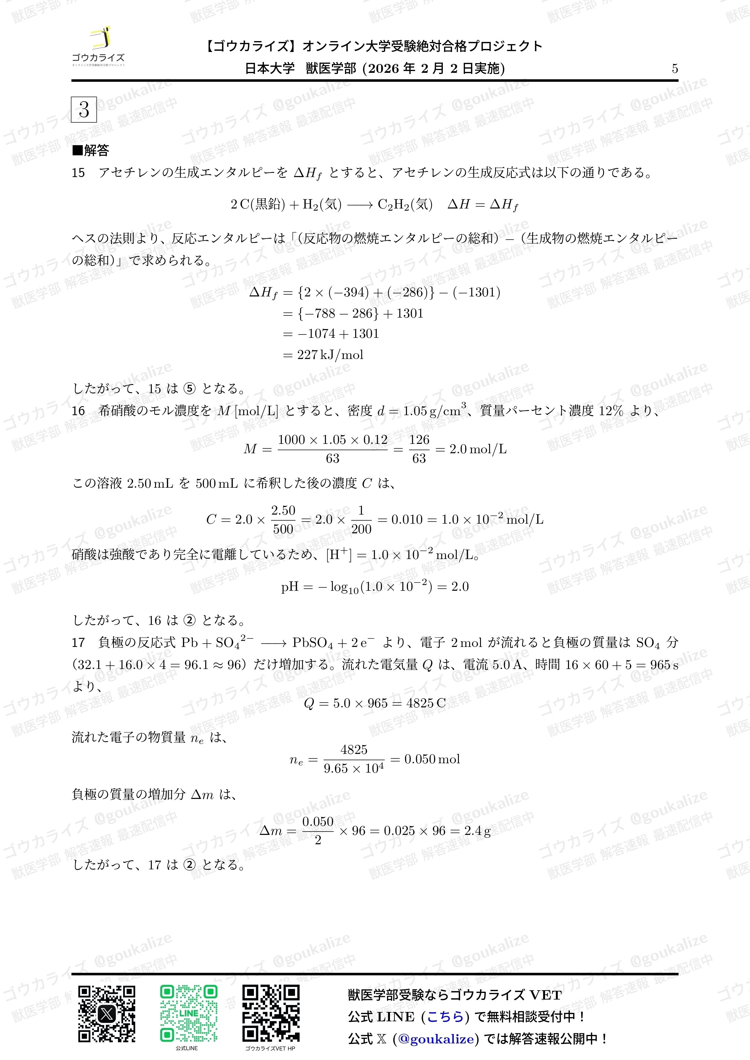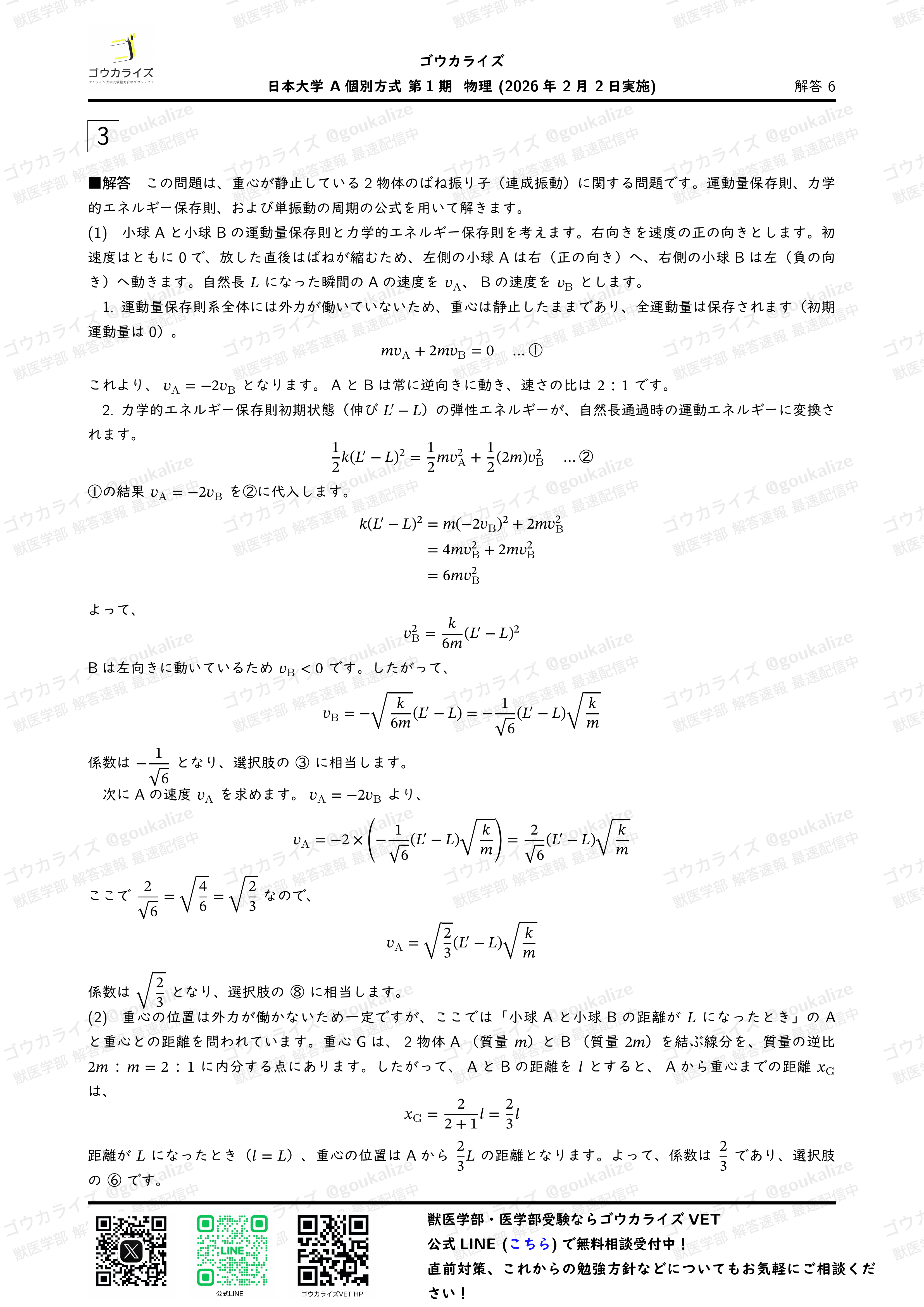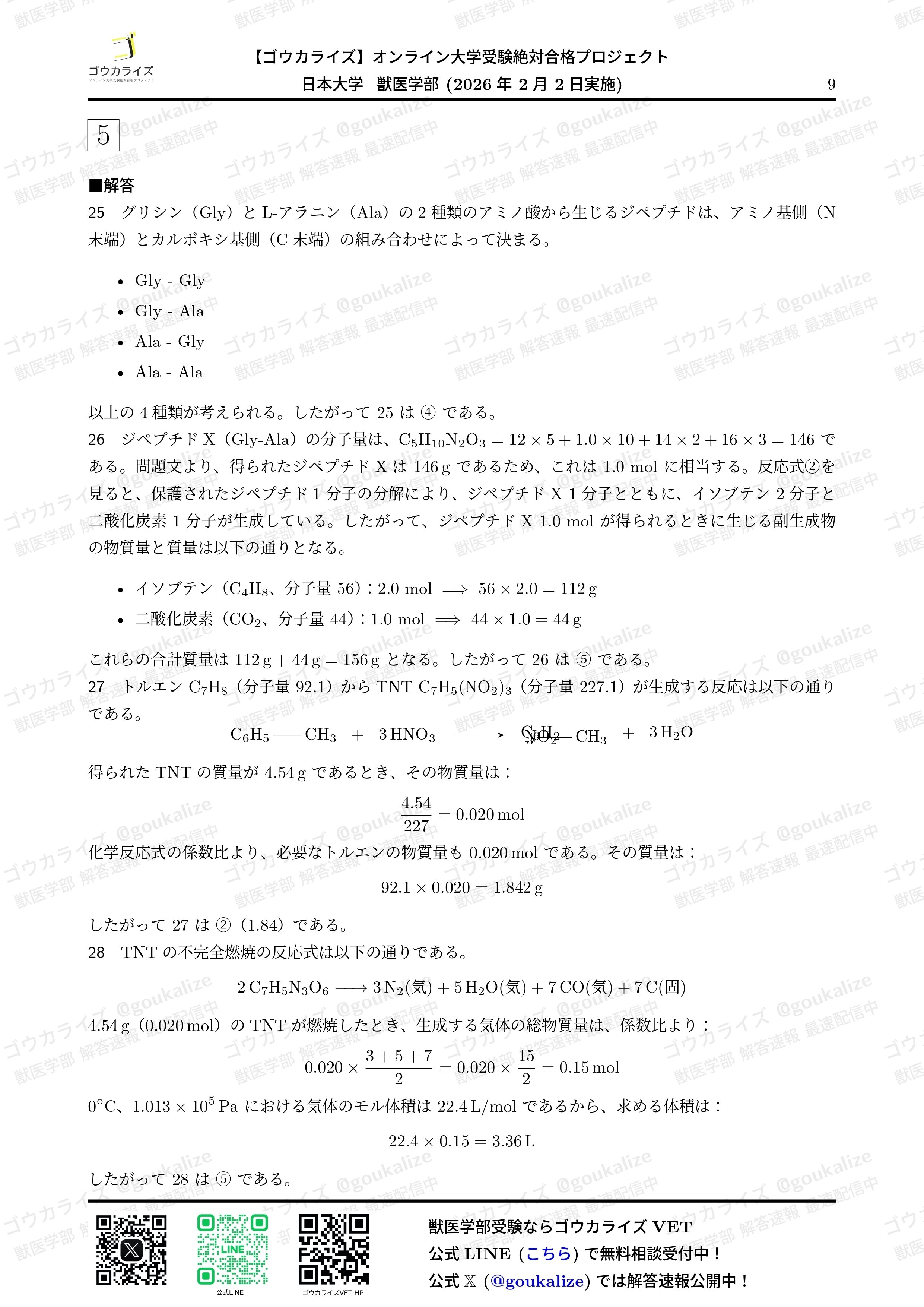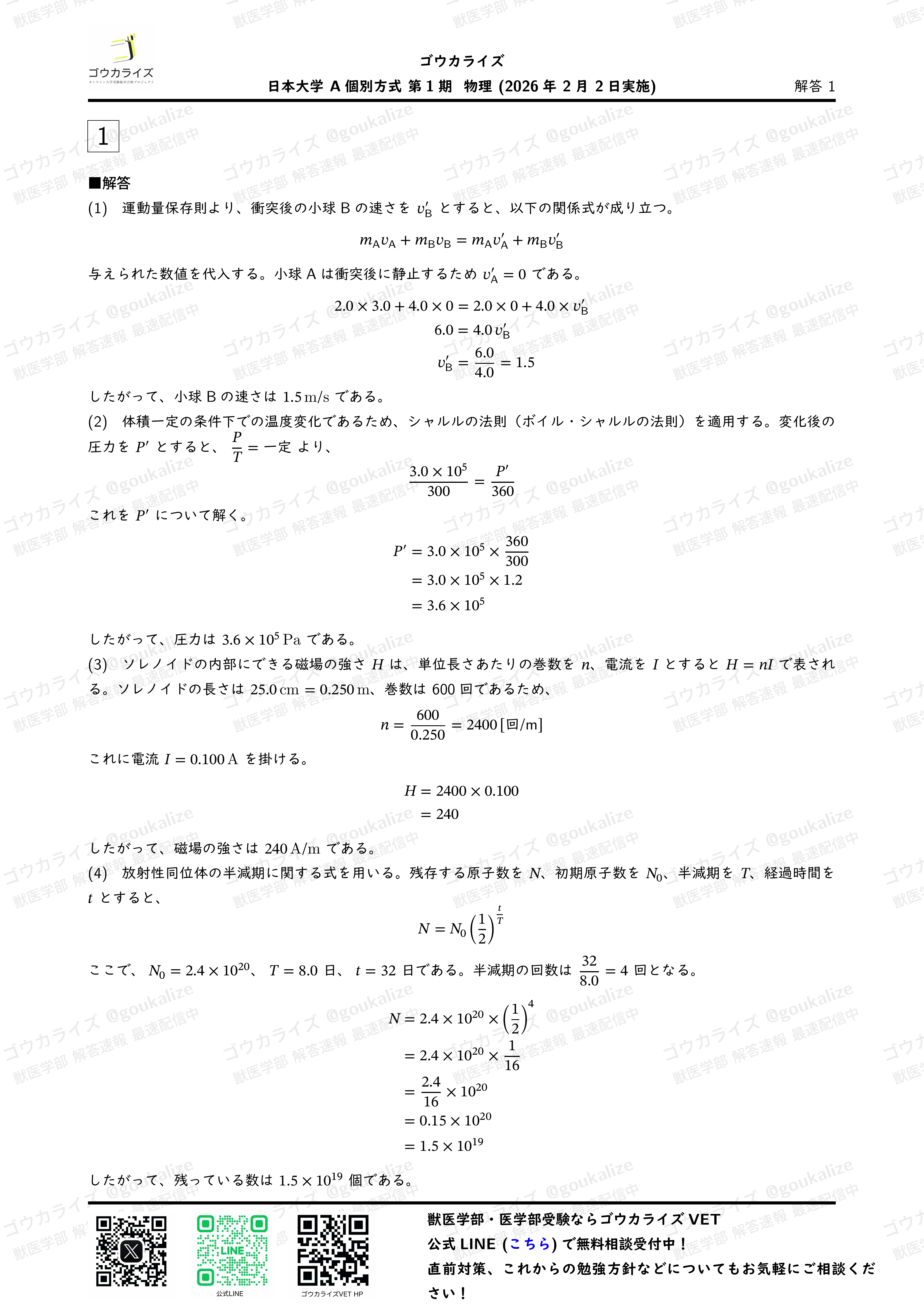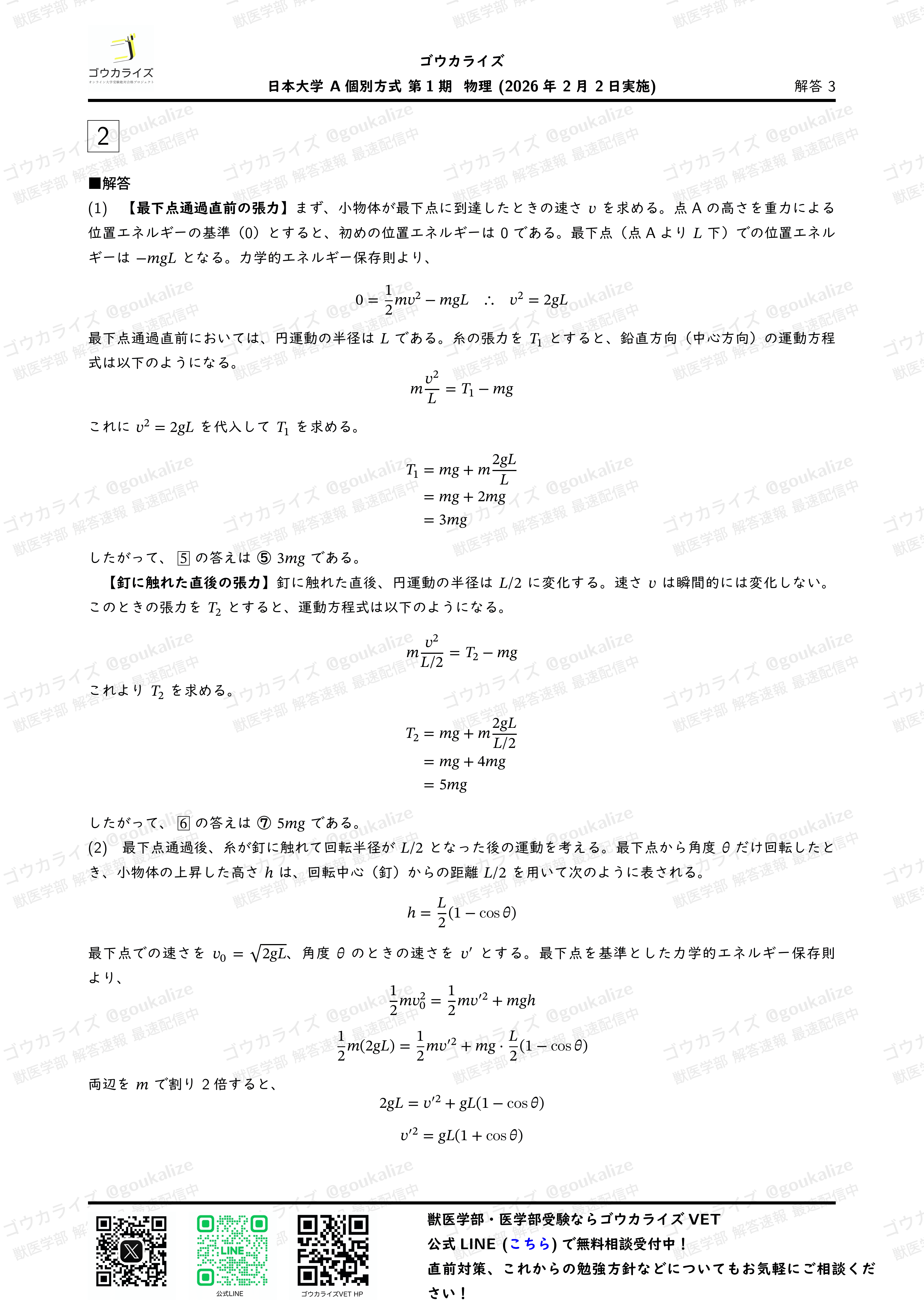 #解答速報 #獣医学部 #ゴウカライズ #獣医専門予備校 #入試数学