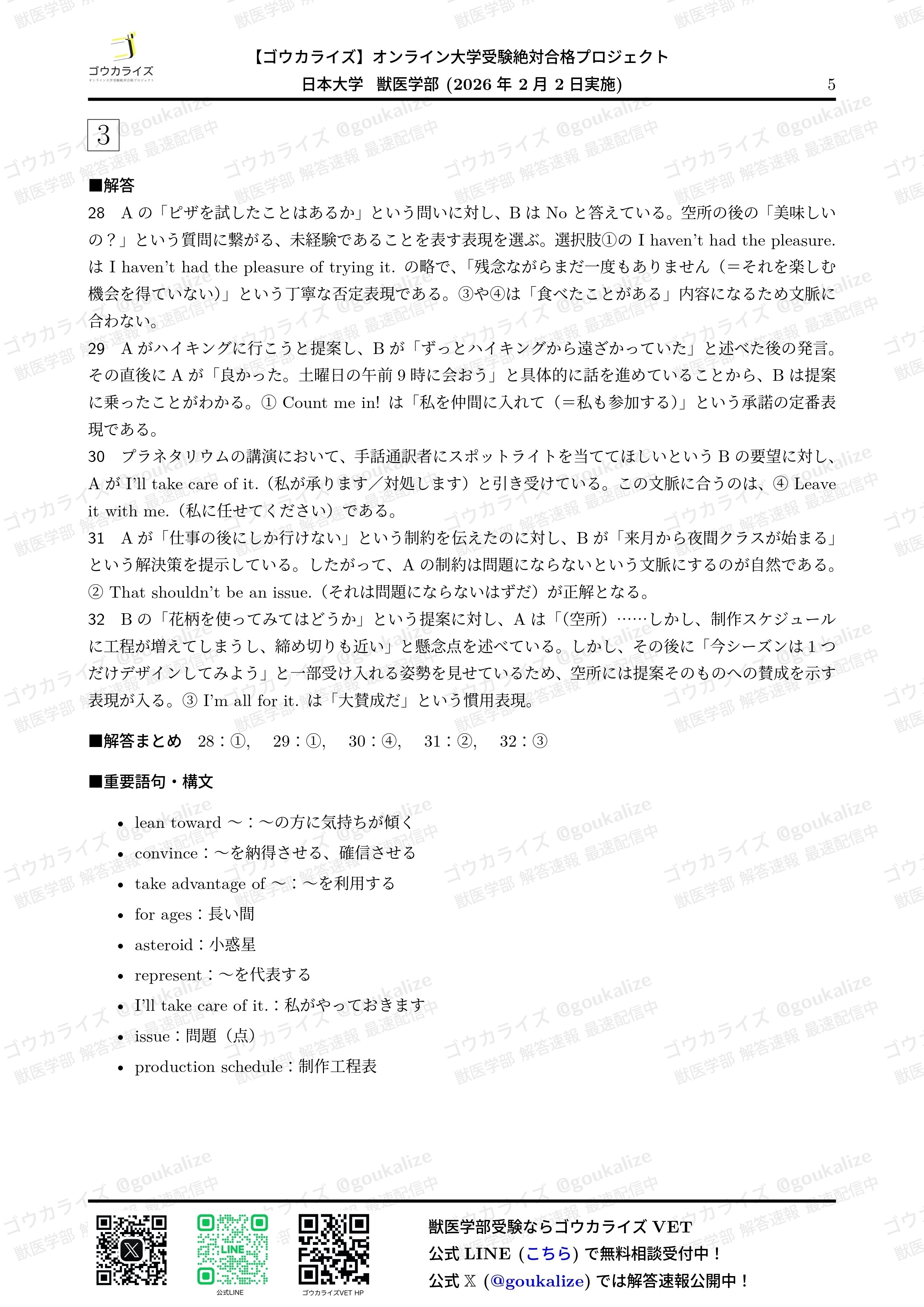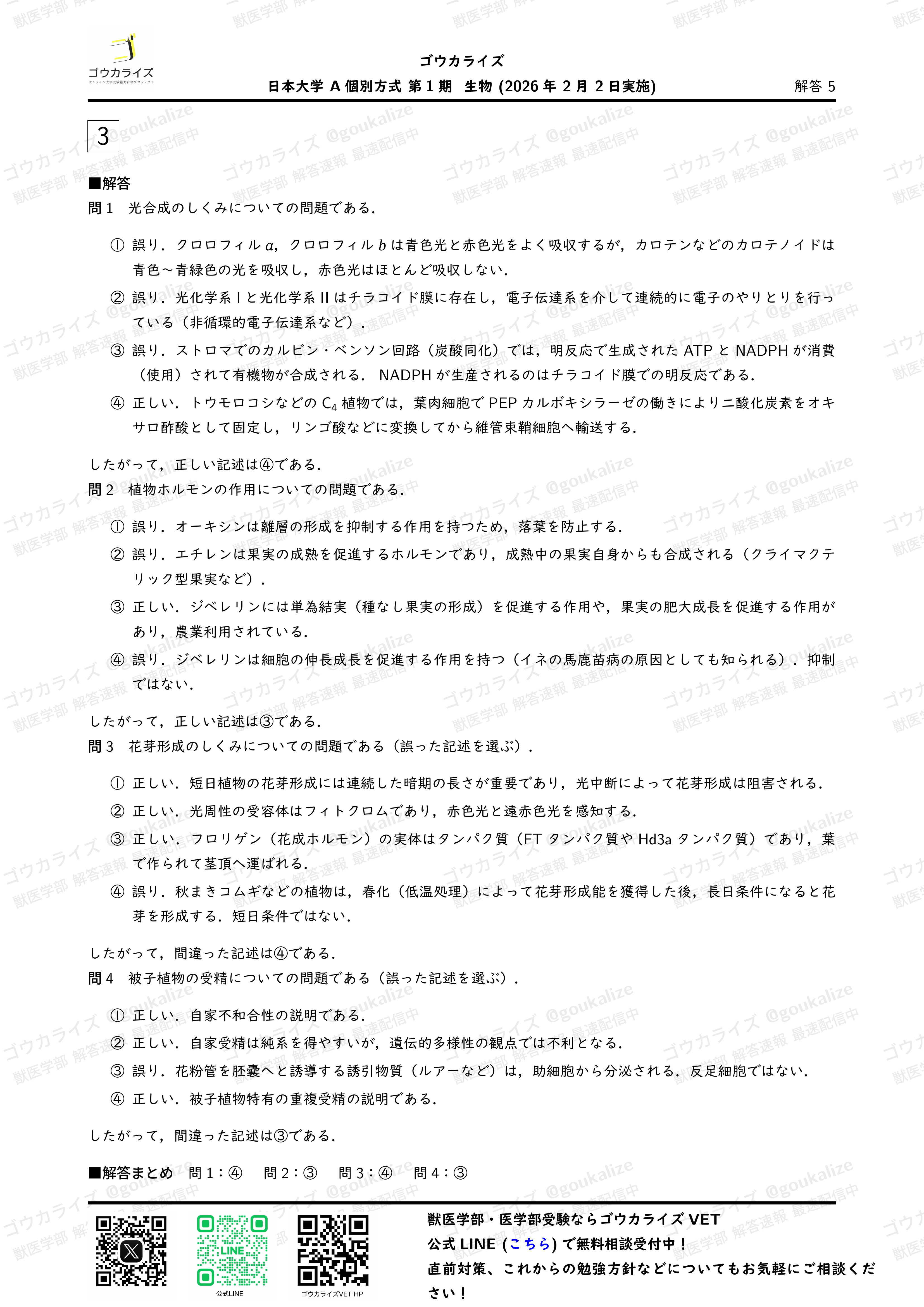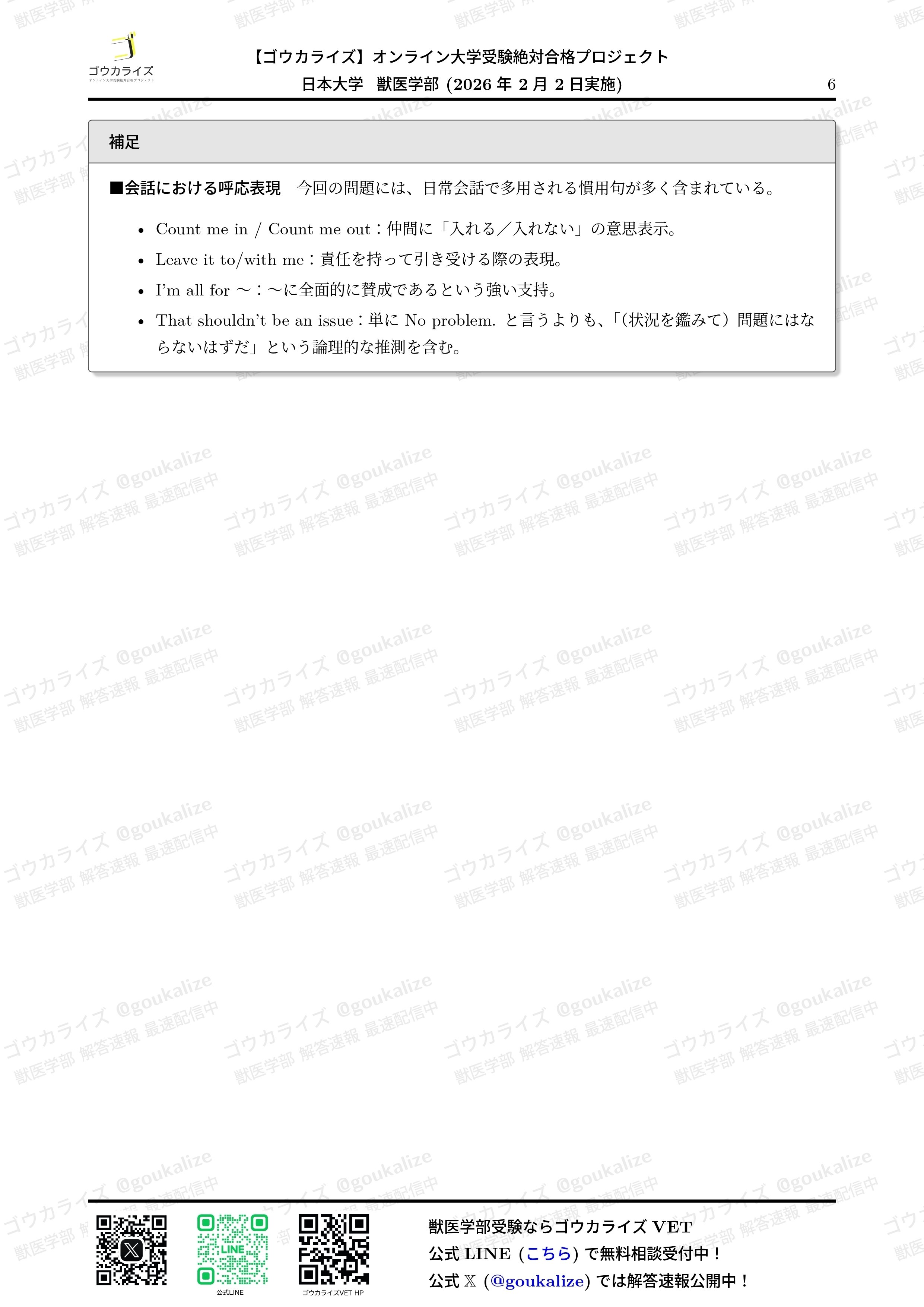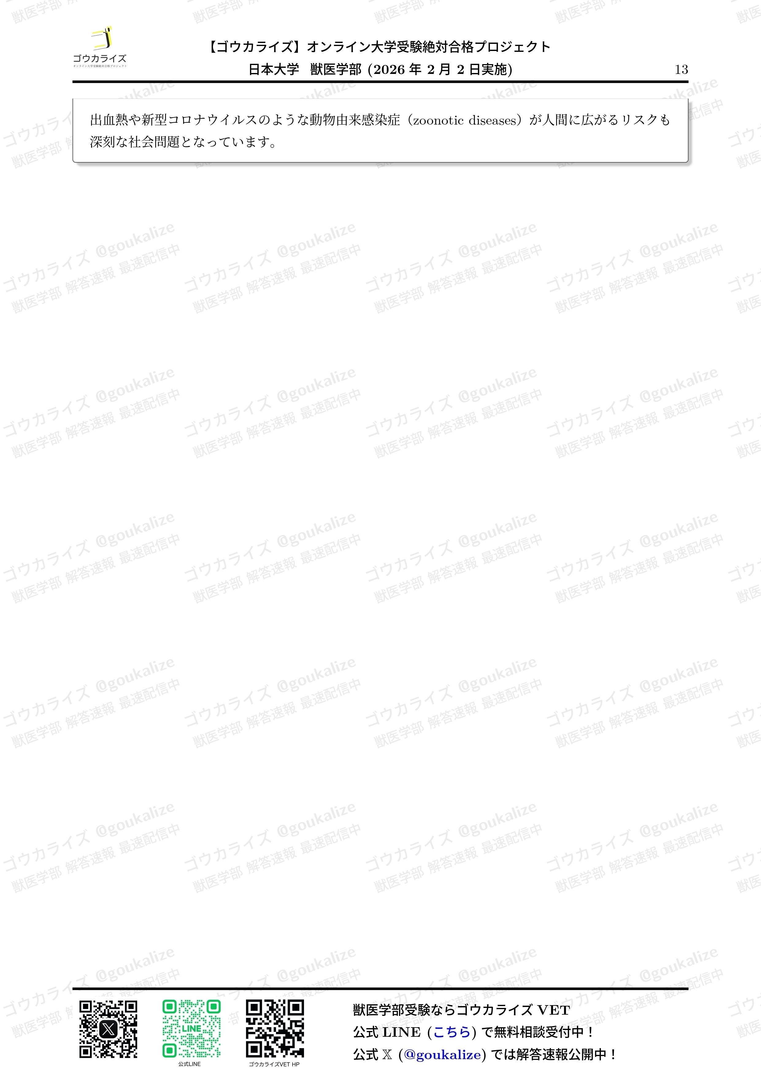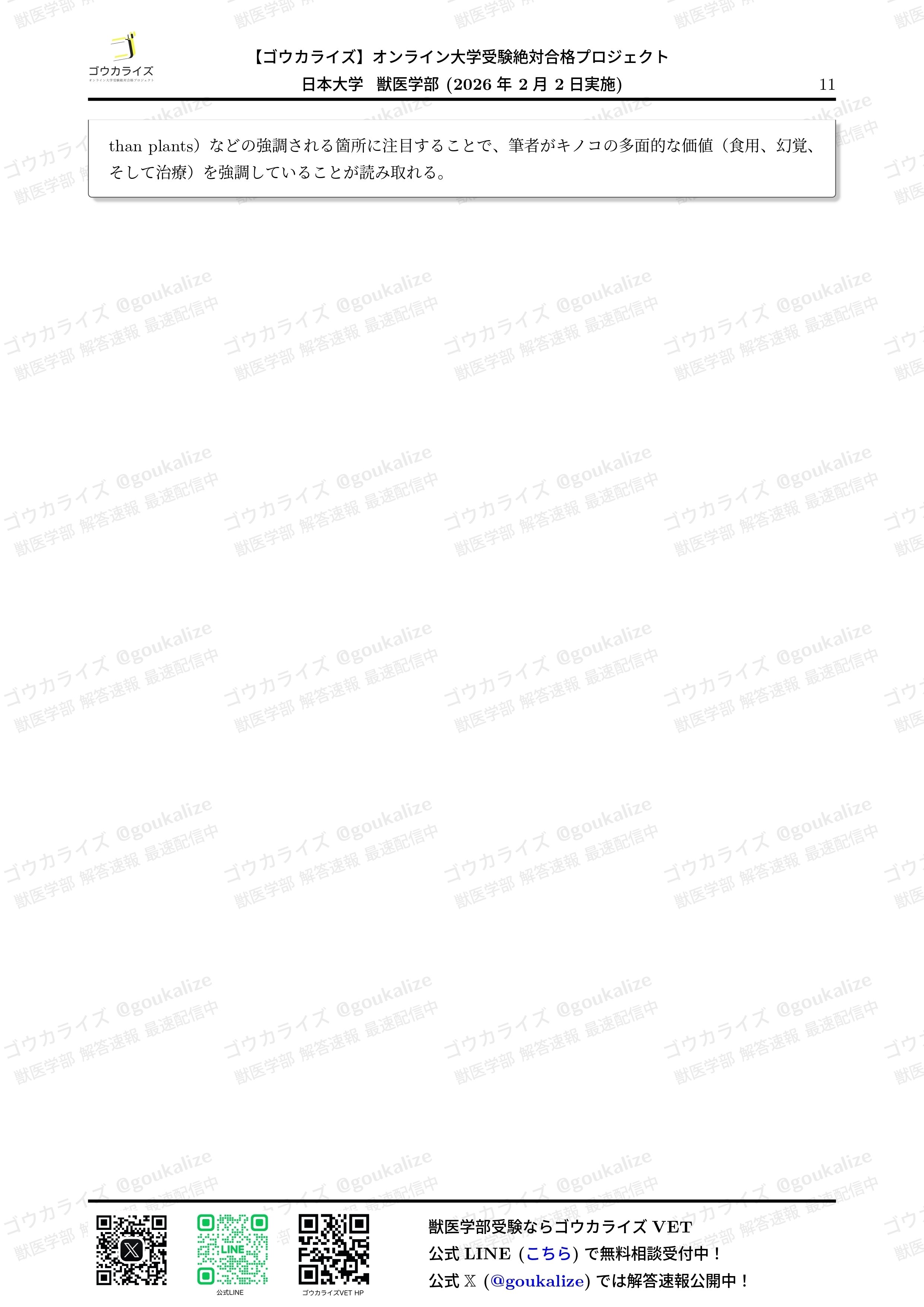 noteには画像を載せますが問題・解答解説をPDFで受け取りたい方は公式LINEで「日本大学解答速報」と送信してください。