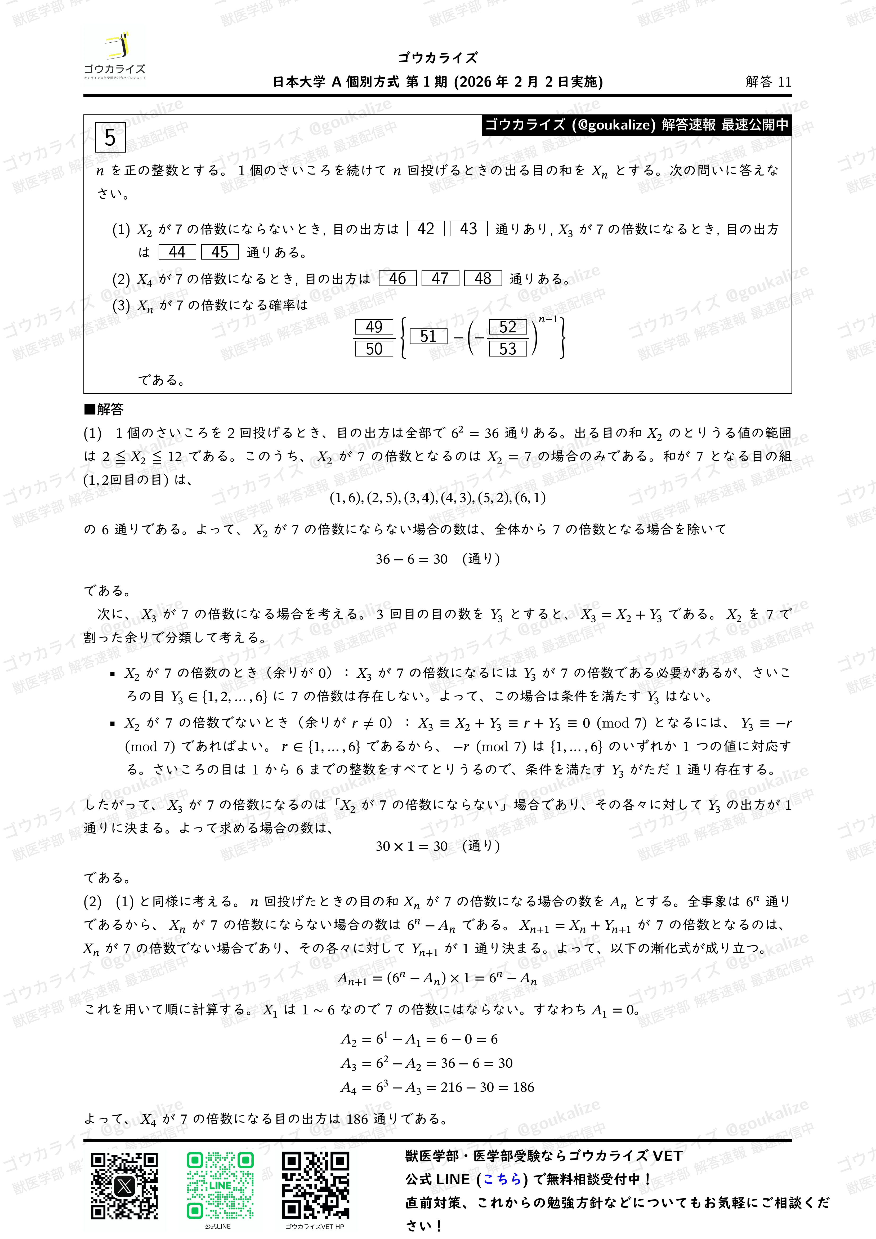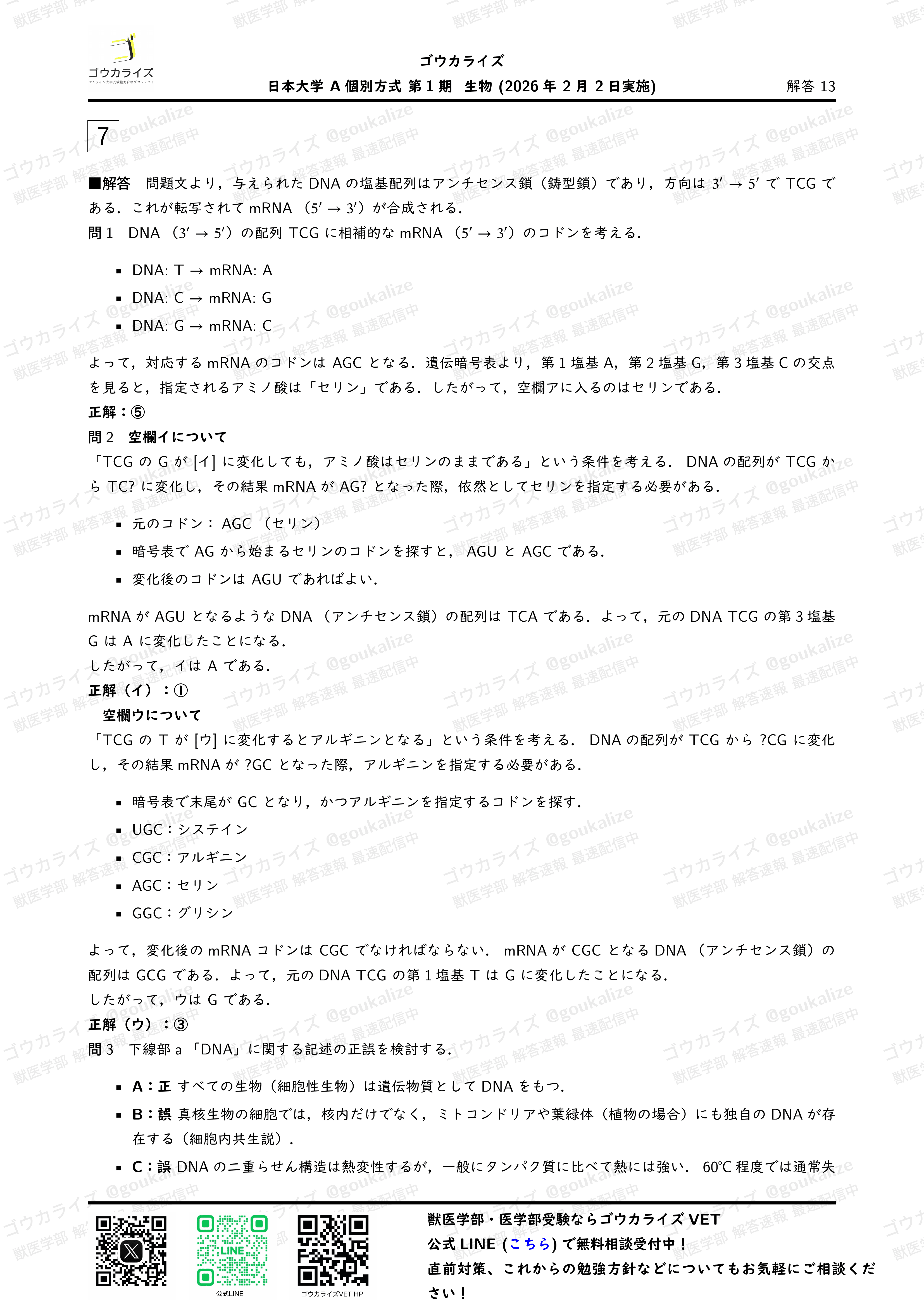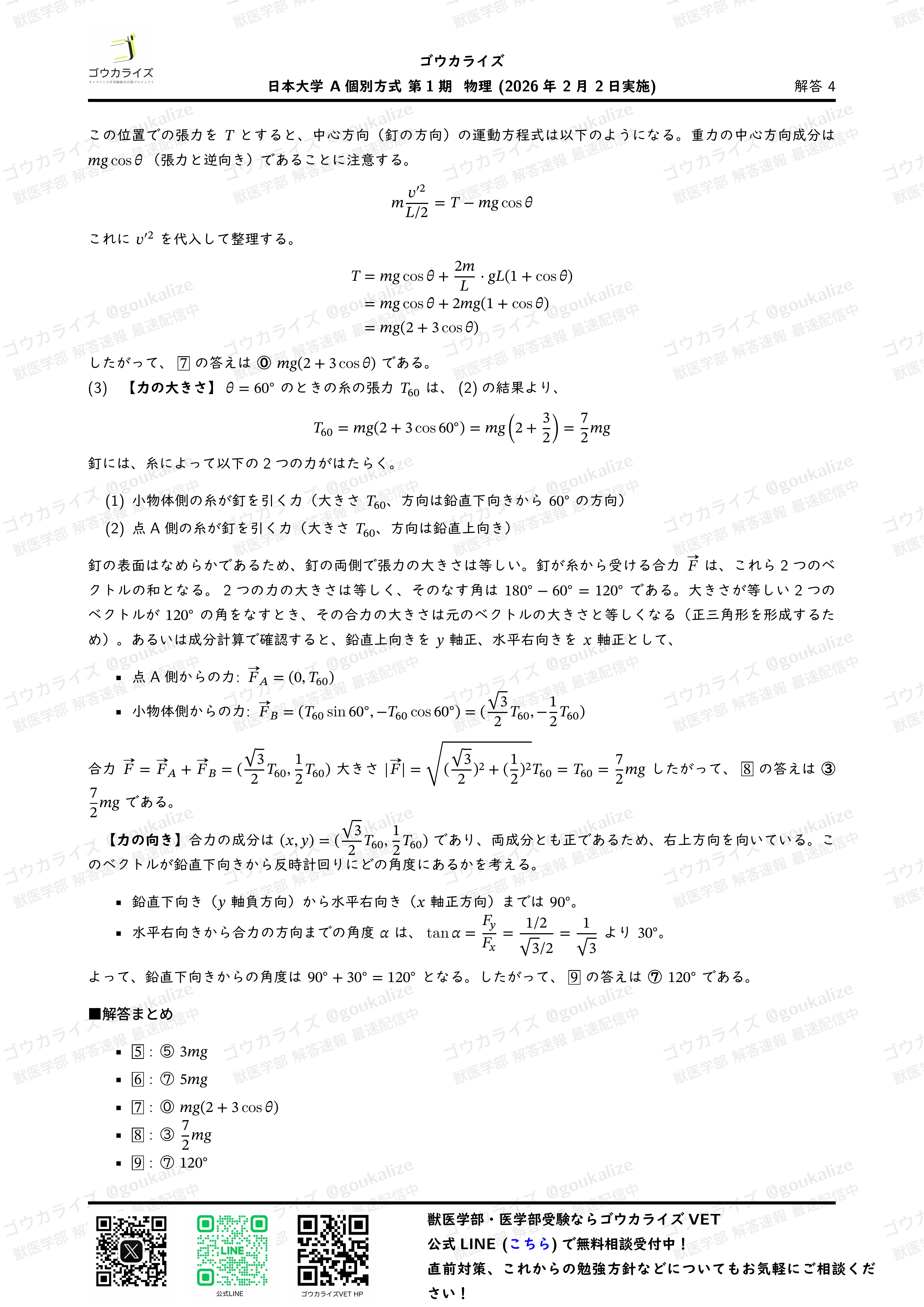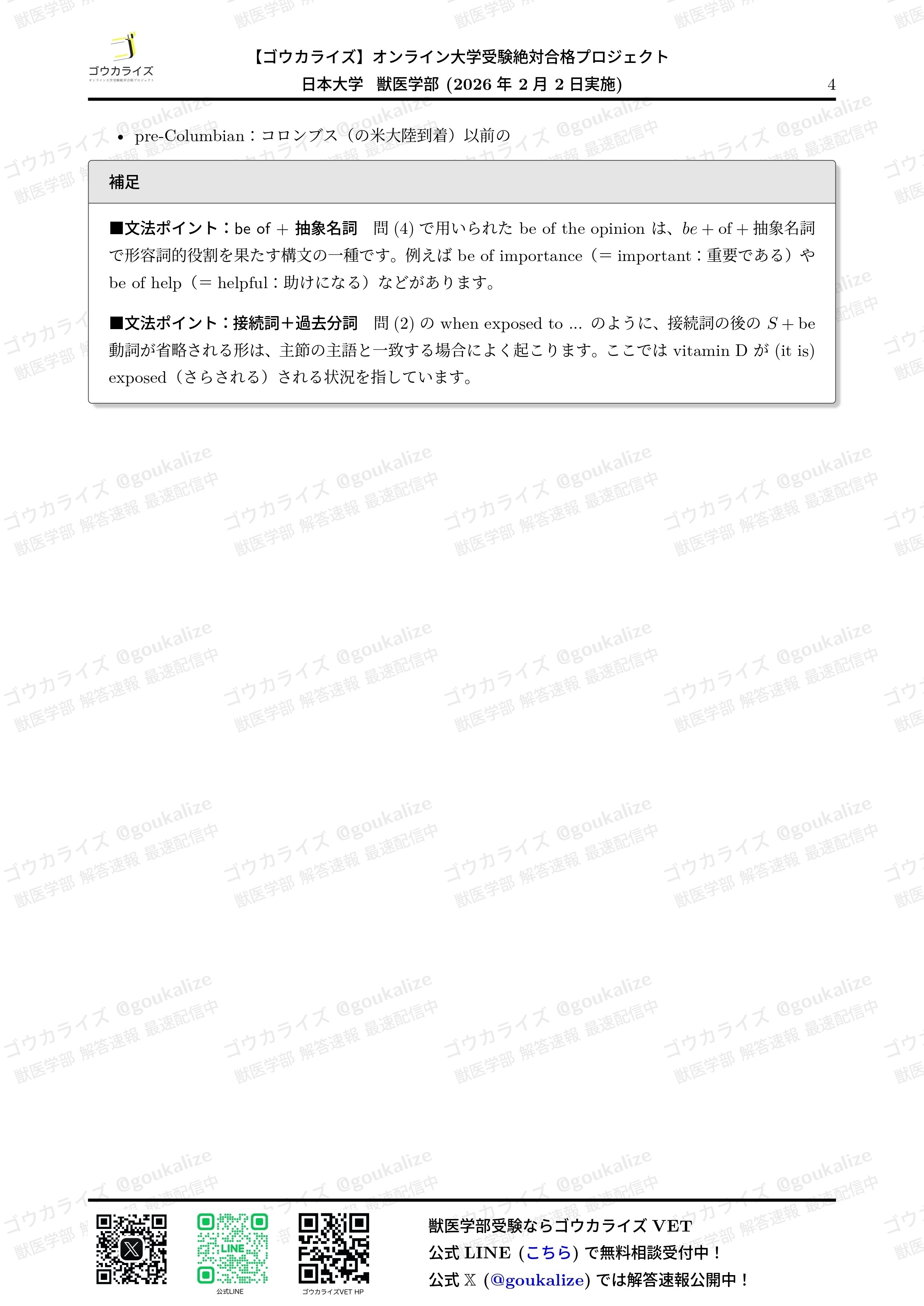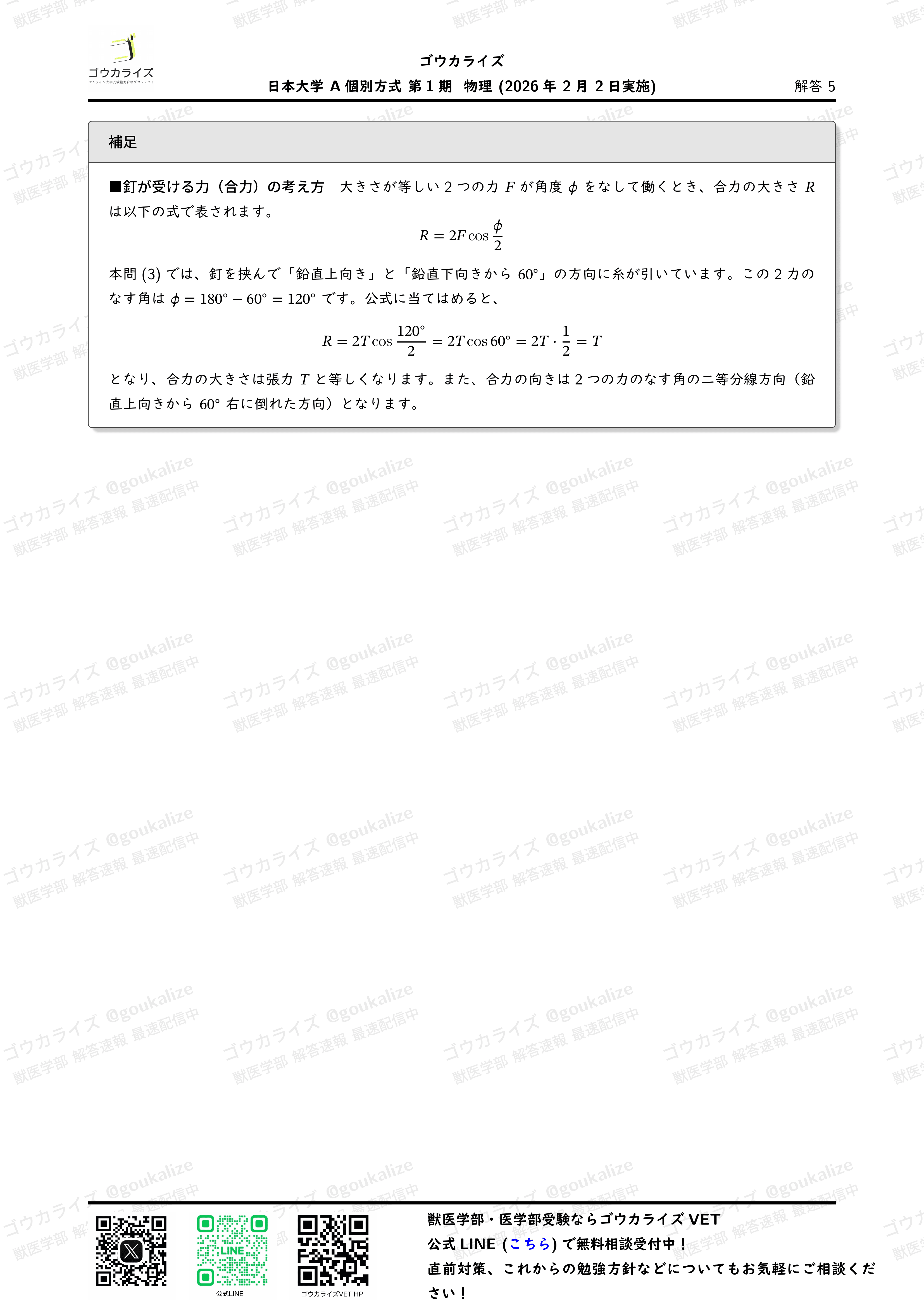 noteには画像を載せますが問題・解答解説をPDFで受け取りたい方は公式LINEで「日本大学解答速報」と送信してください。
