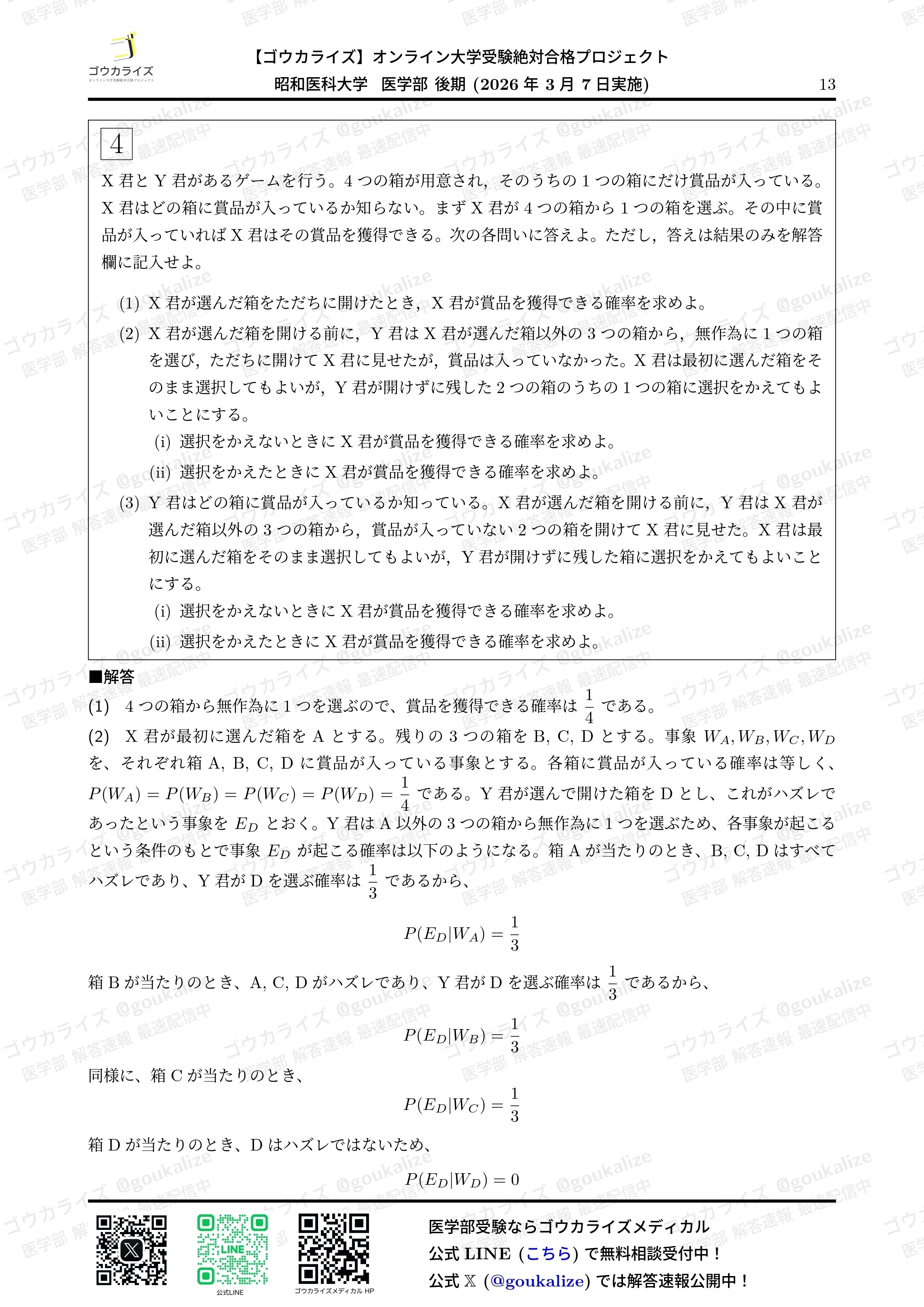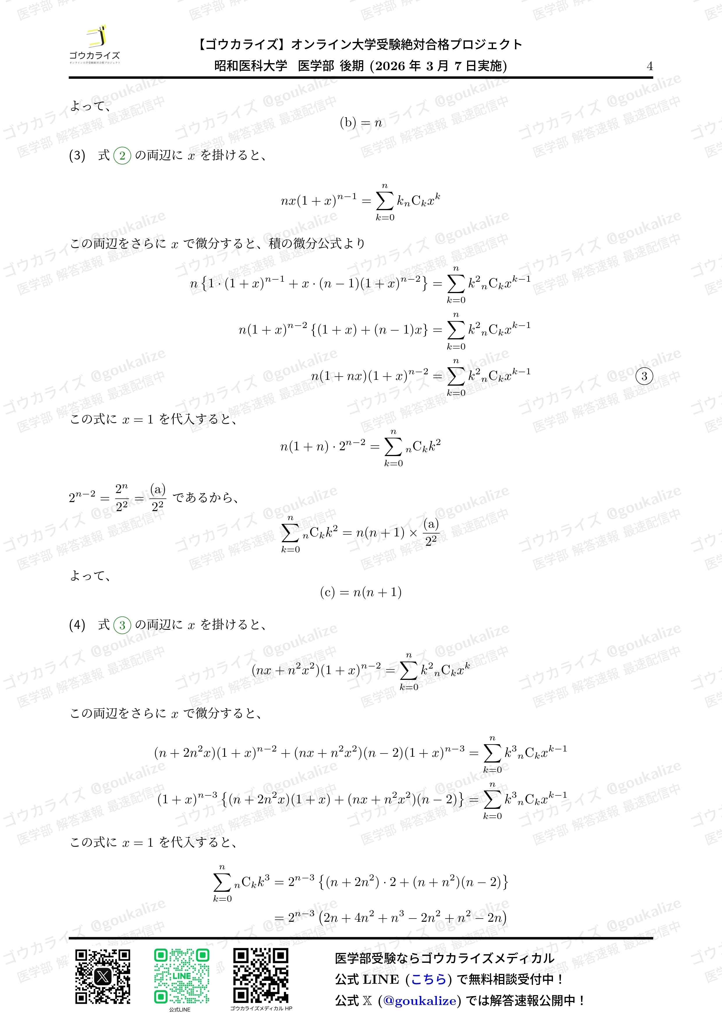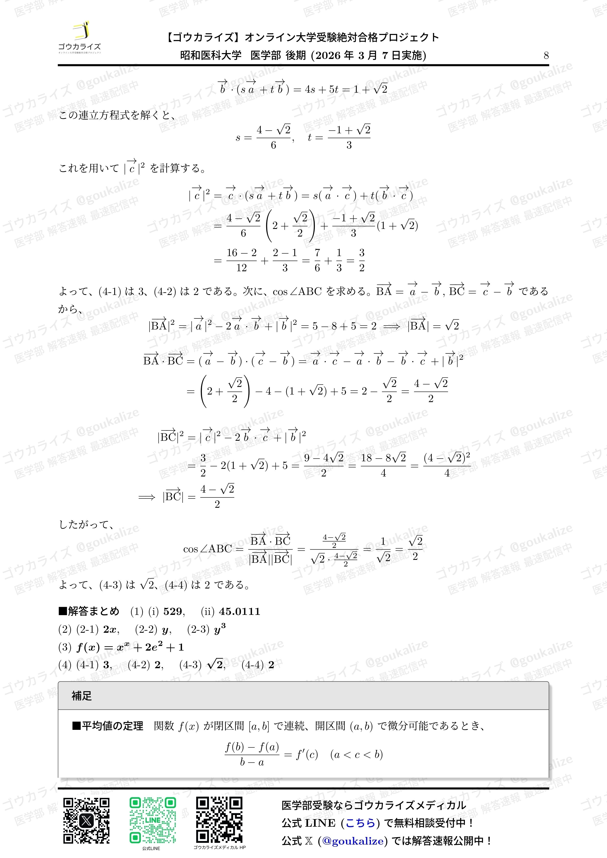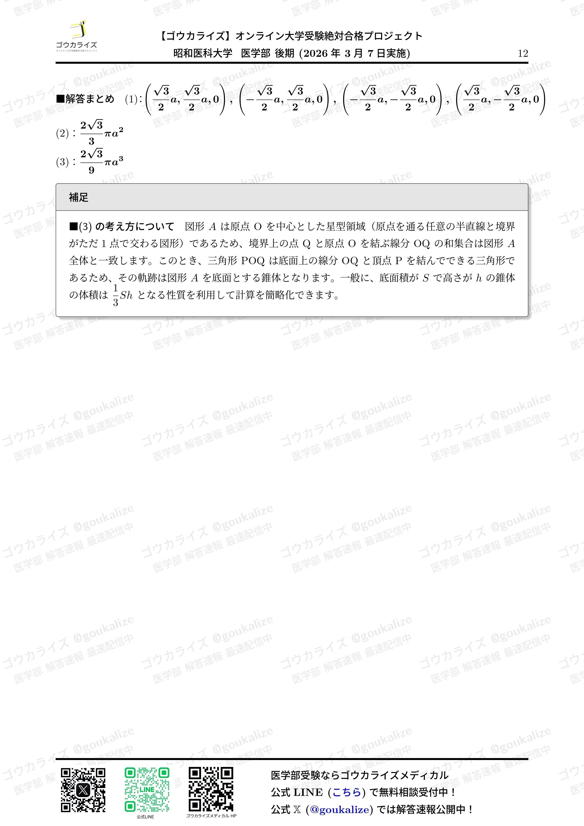 2026/3/7 実施の 昭和医科大学 II期 数学 の解答速報です。