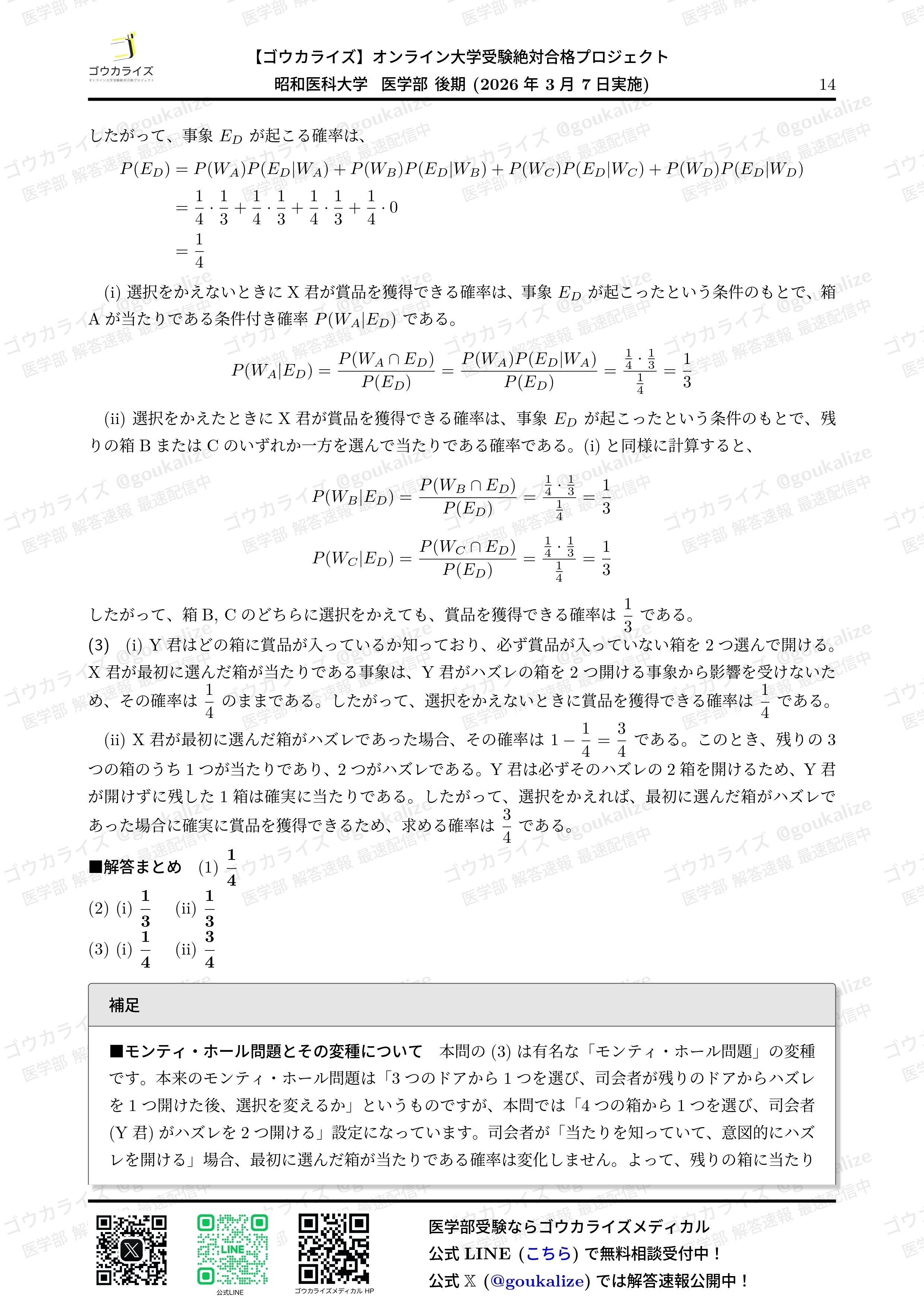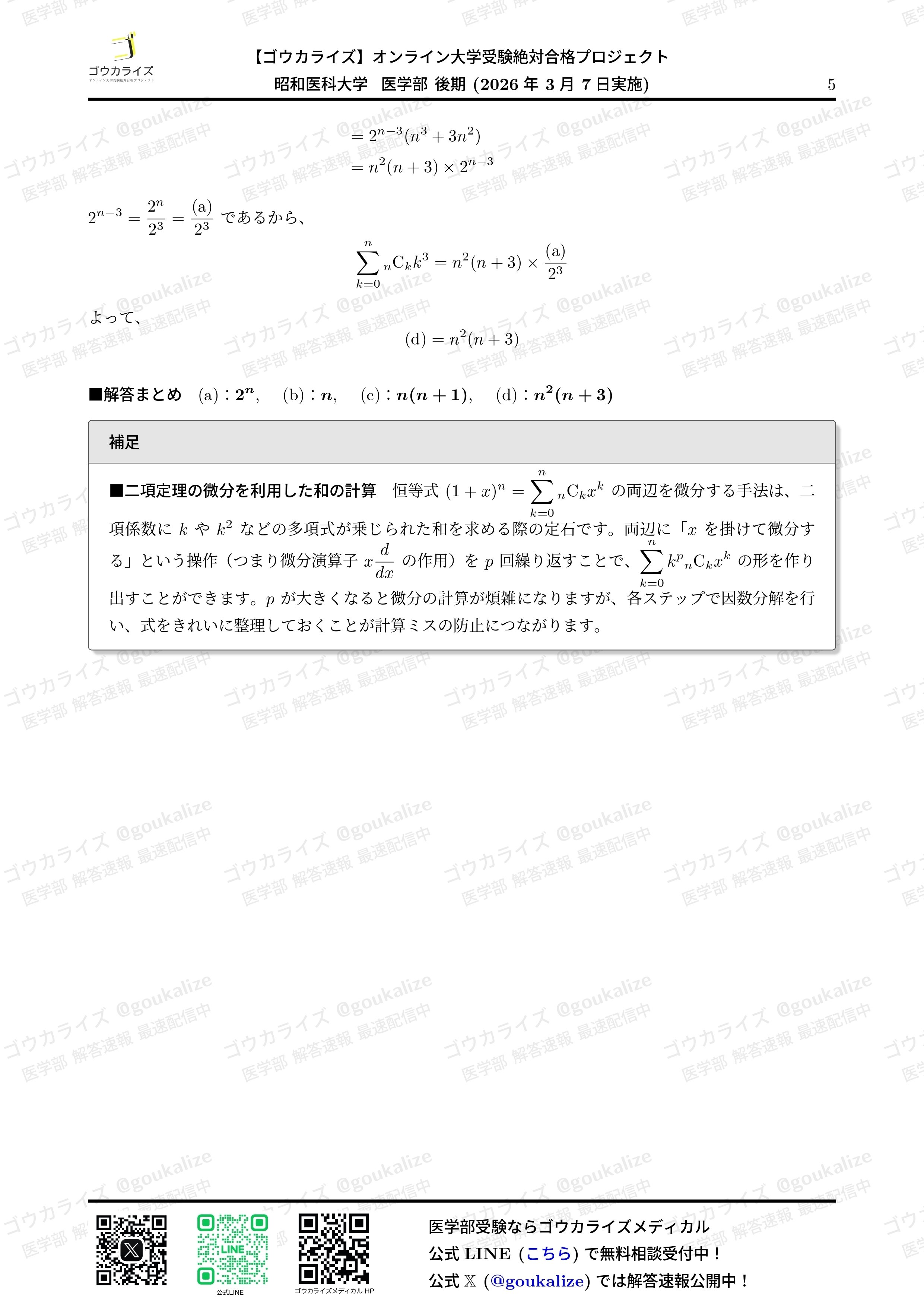 noteには画像を載せますが問題・解答解説をPDFで受け取りたい方は公式LINEを追加後、右下の解答速報ボタンを押してください。