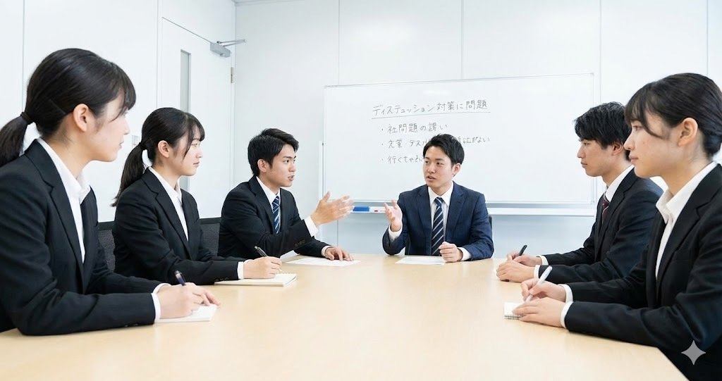 積極性も評価対象です。積極的に発言し、討論に貢献することが求められます。意見の内容も重要ですが、発言回数や、他の人の意見を踏まえた発言ができているかも見られます。