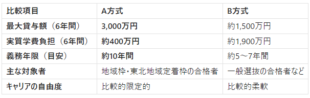 - 義務年限と勤務地:支援額が異なる分、卒業後の義務も、A方式よりは短縮・緩和されます。例えば、義務年限が5〜7年程度となったり、勤務地の選択において、ある程度の本人の希望が考慮されたりする場合があります。将来的に、東北地方に残りつつも、より早い段階で、自分のキャリアの自由度を高めたい、と考える学生にとっては、現実的な選択肢となるでしょう。