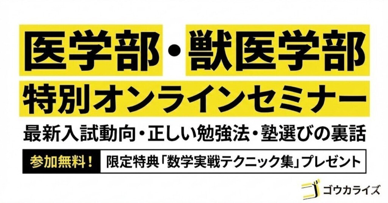 今回、ゴウカライズでは、医学部・獣医学部を目指す受験生とその保護者様を対象とした「特別オンラインセミナー」 を開催することを決定いたしました!