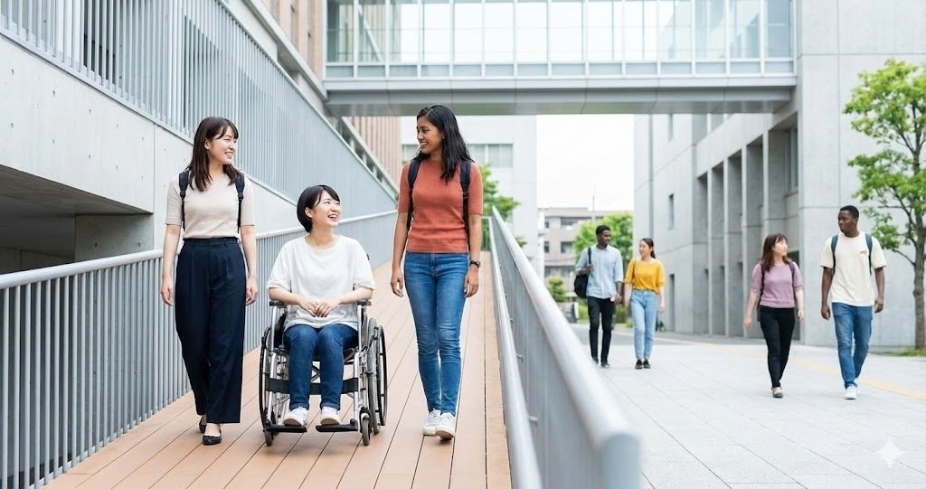 受け入れに必要なこととしては、①バリアフリー設備の整備(スロープ、エレベーター、多目的トイレ)、②試験時の合理的配慮(時間延長、別室受験)、③教職員への研修、④本人との事前面談で必要なサポートを確認すること、が挙げられます。