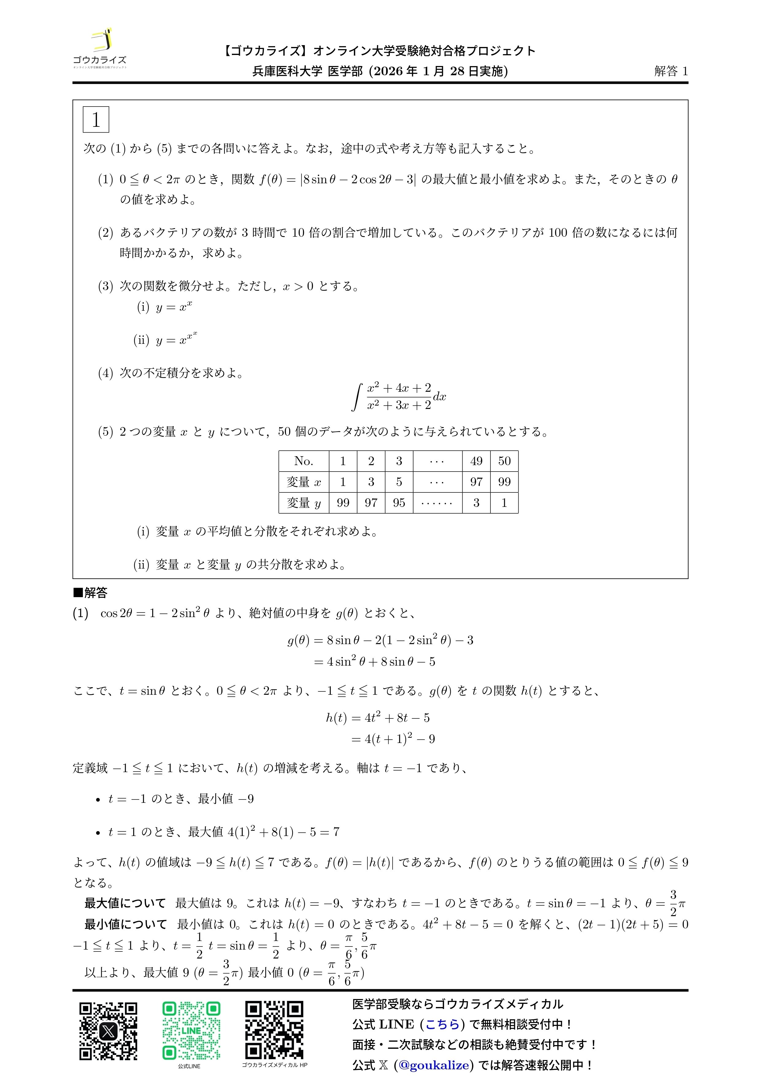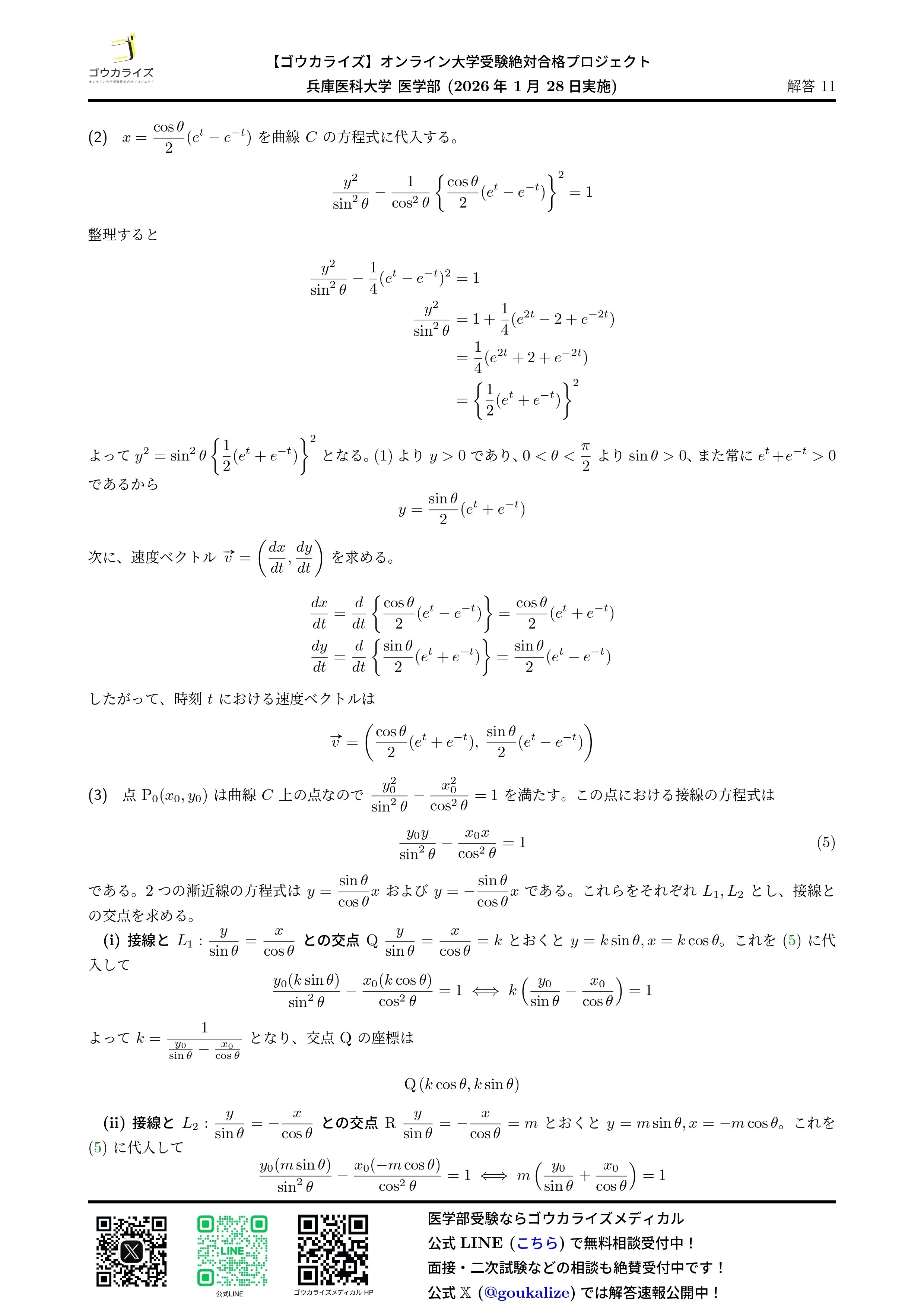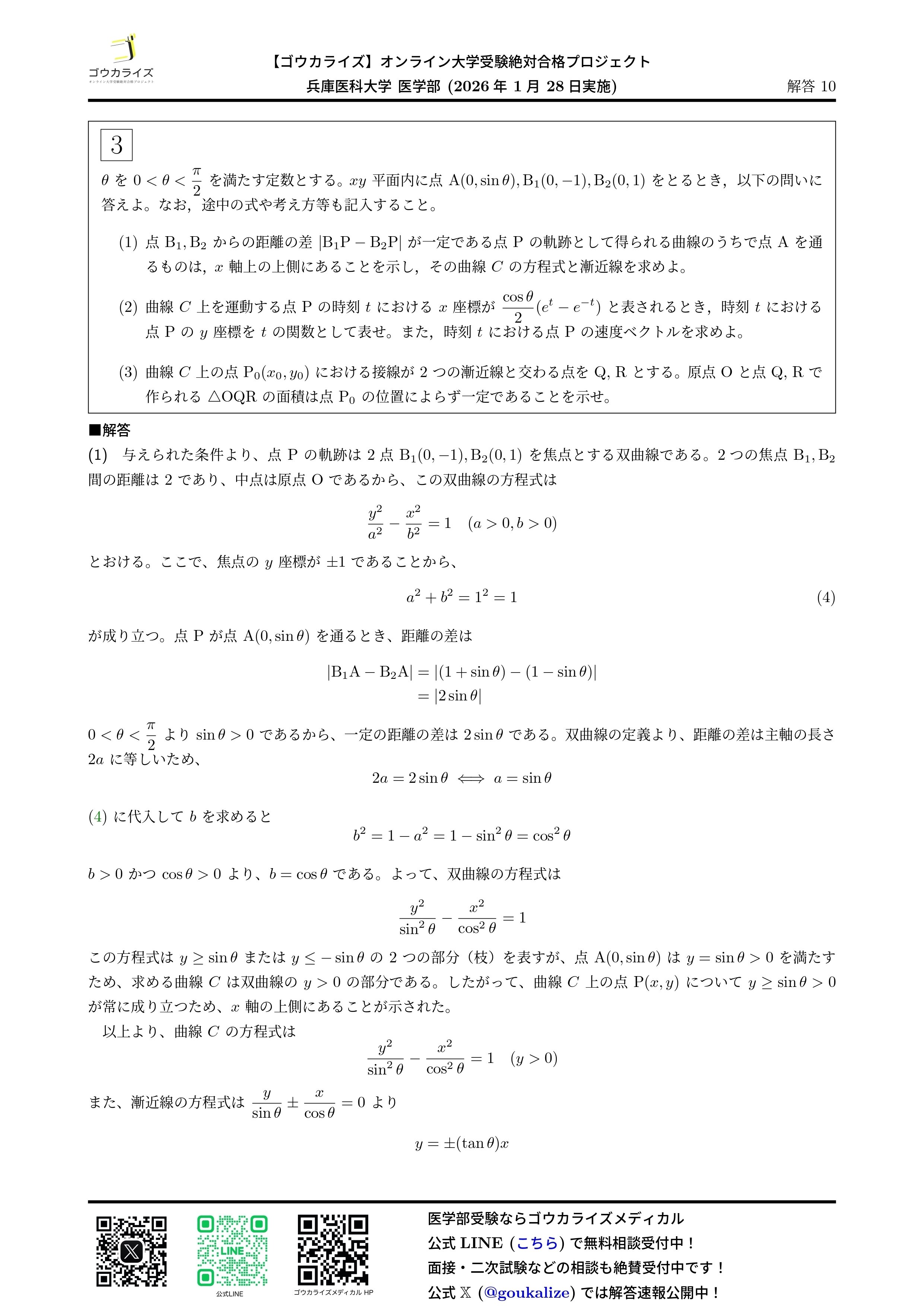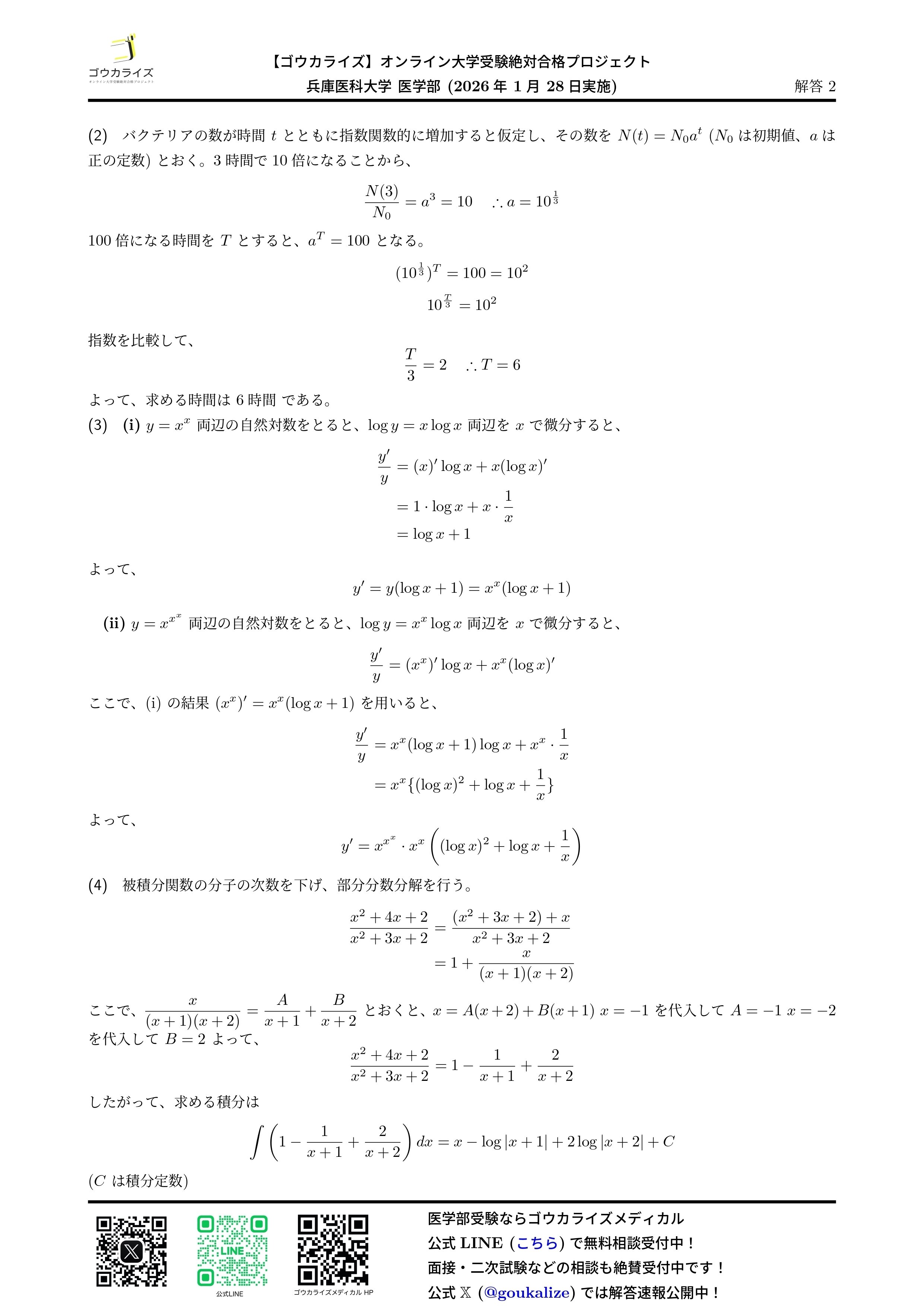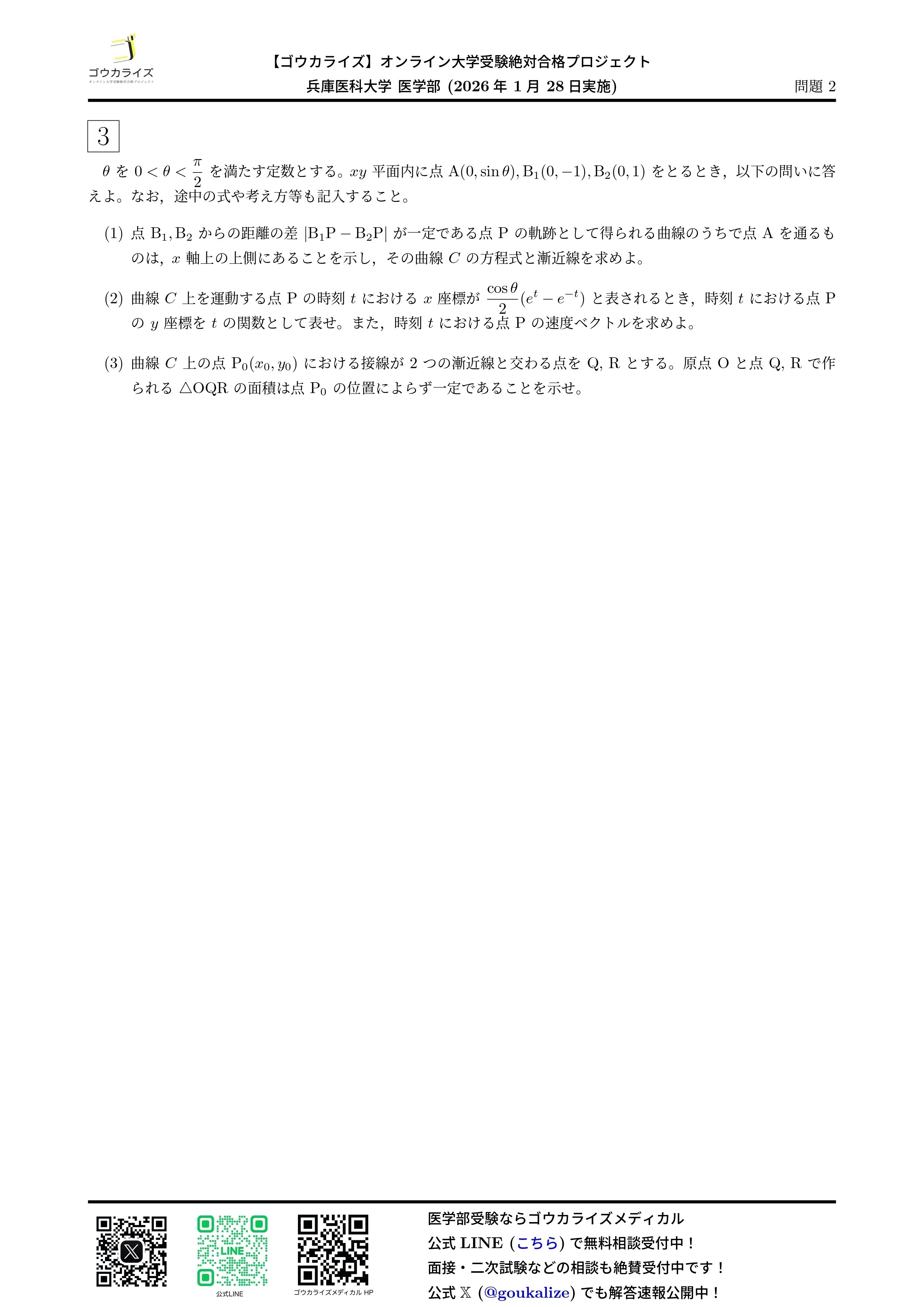 2026/01/28実施の兵庫医科大学 医学部の数学の解答速報です。
