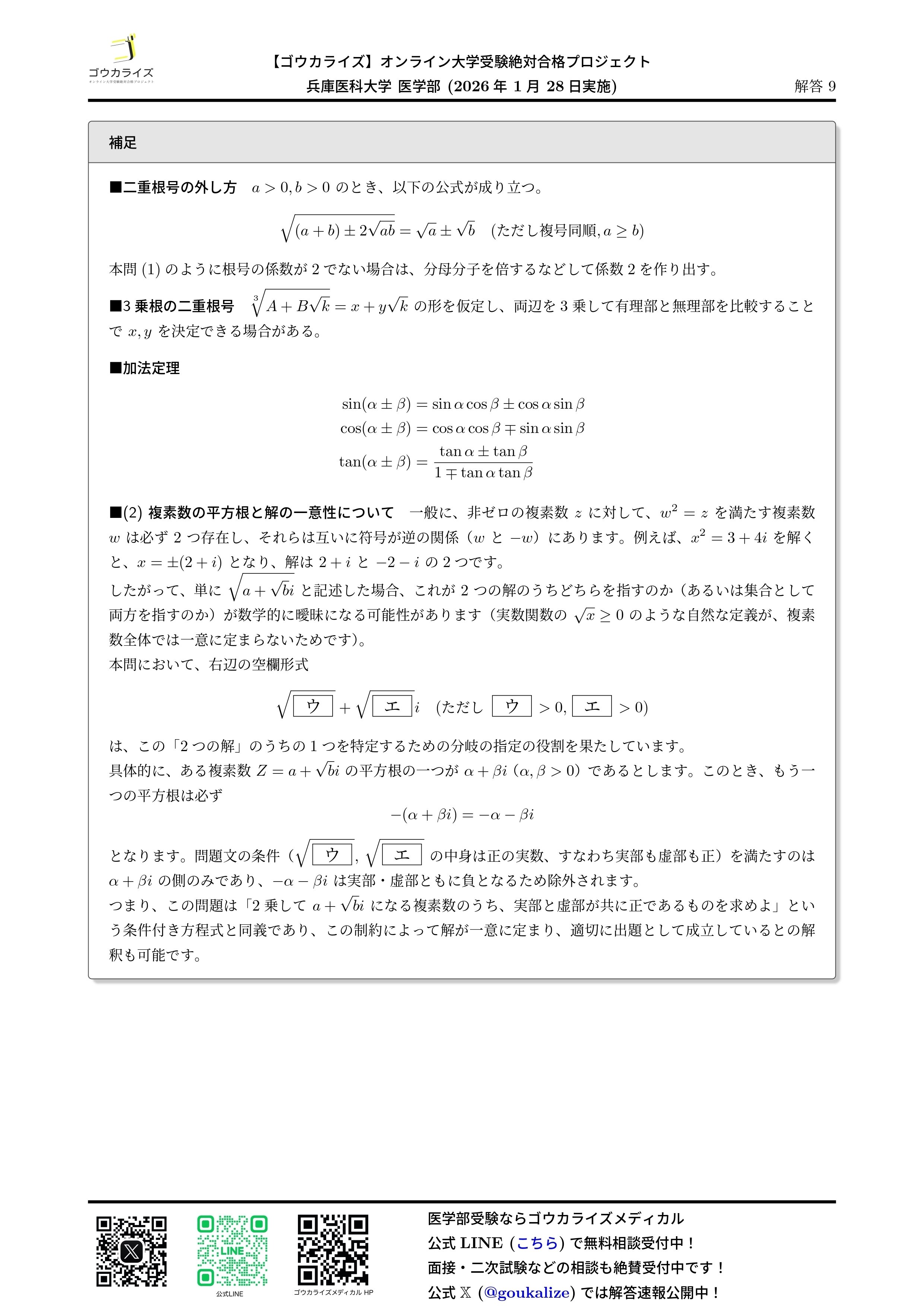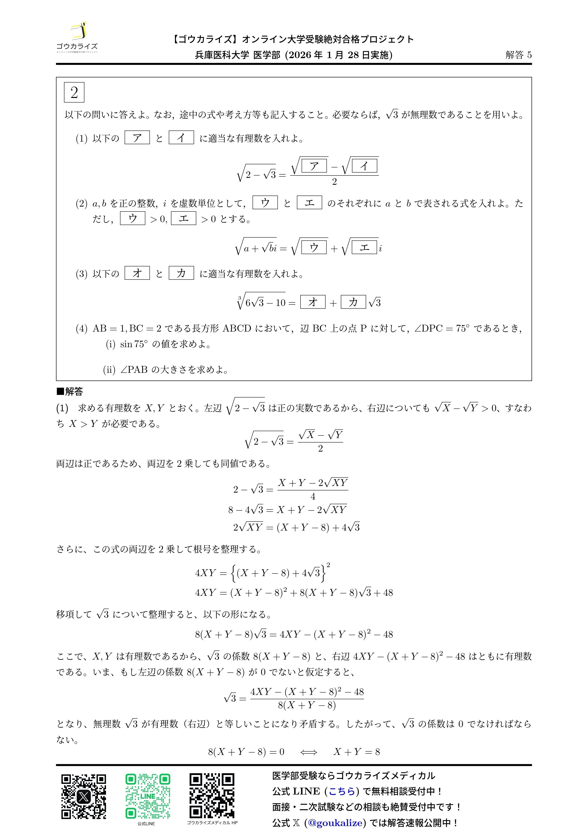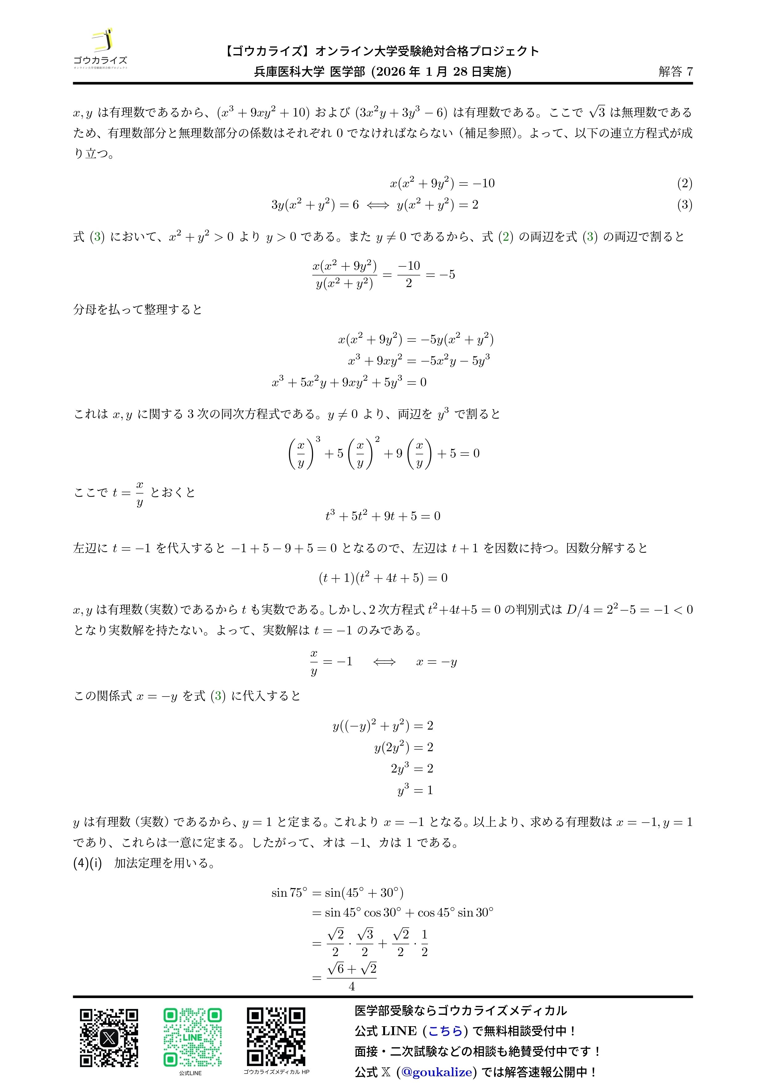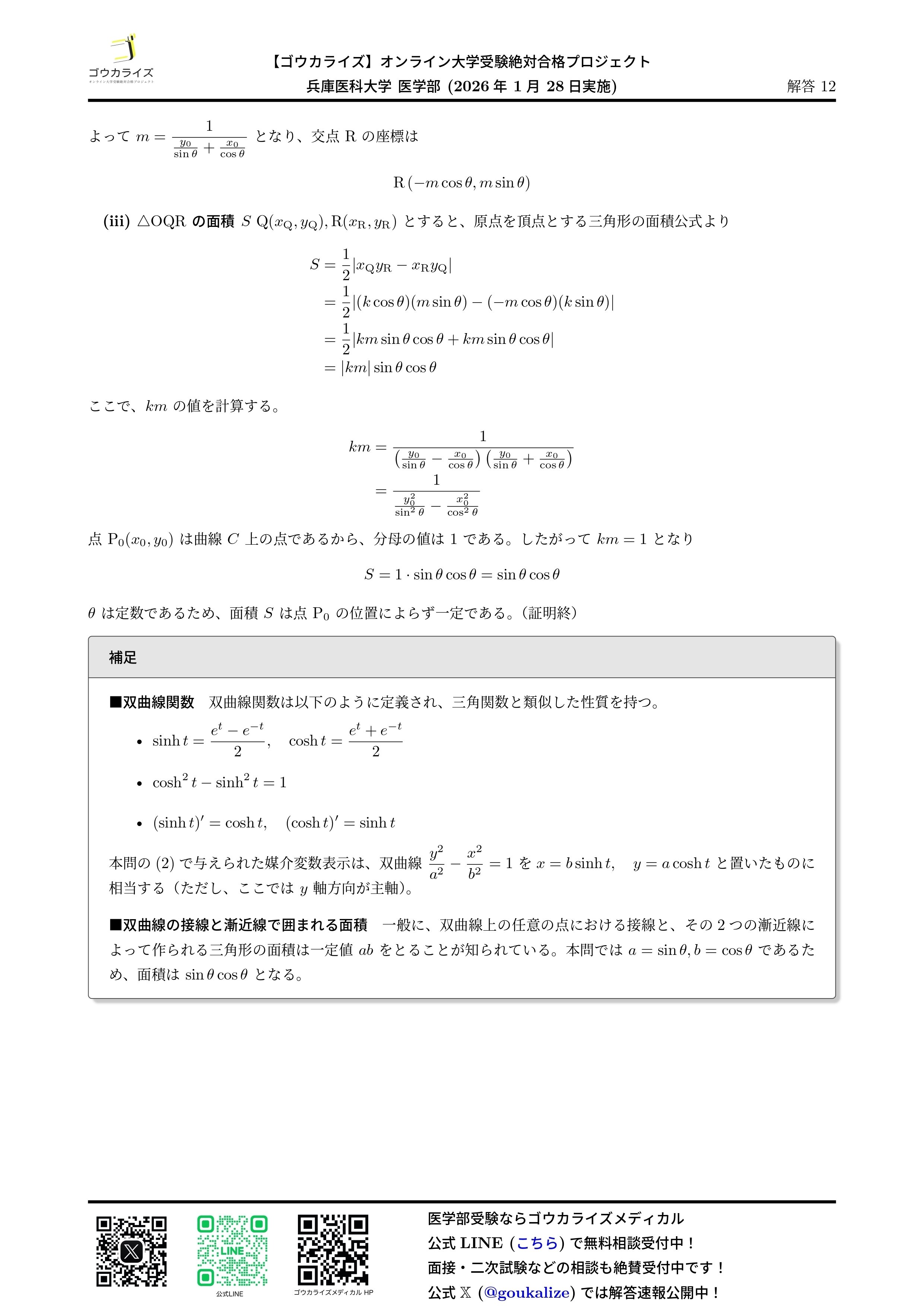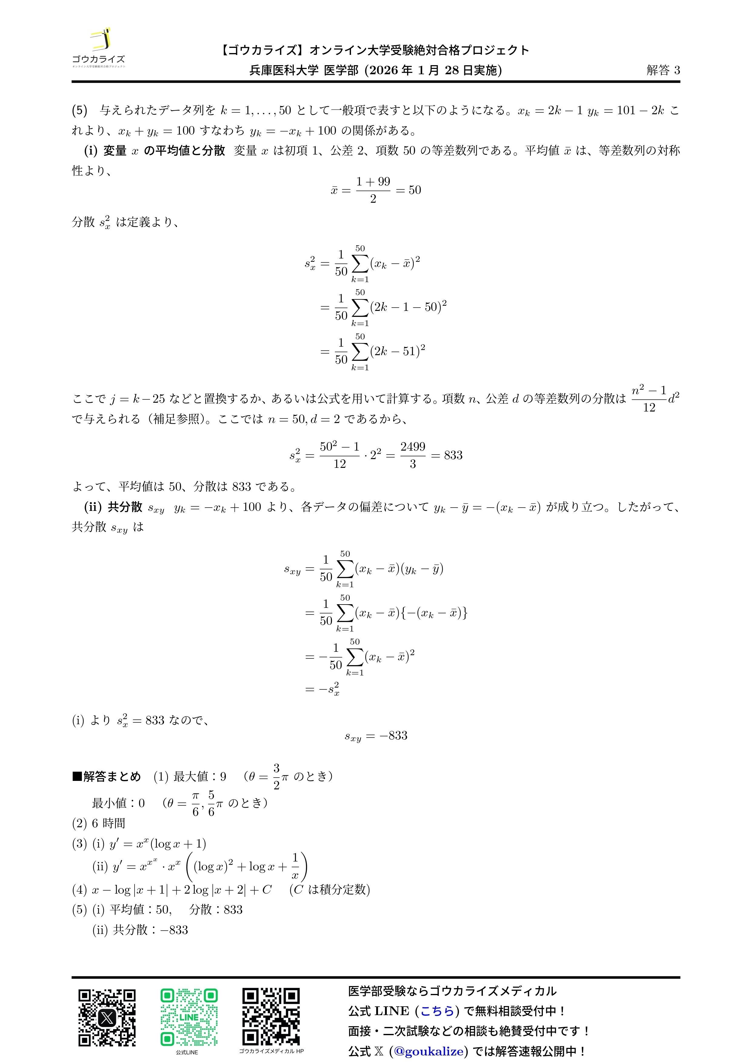 2026/01/28実施の兵庫医科大学 医学部の数学の解答速報です。