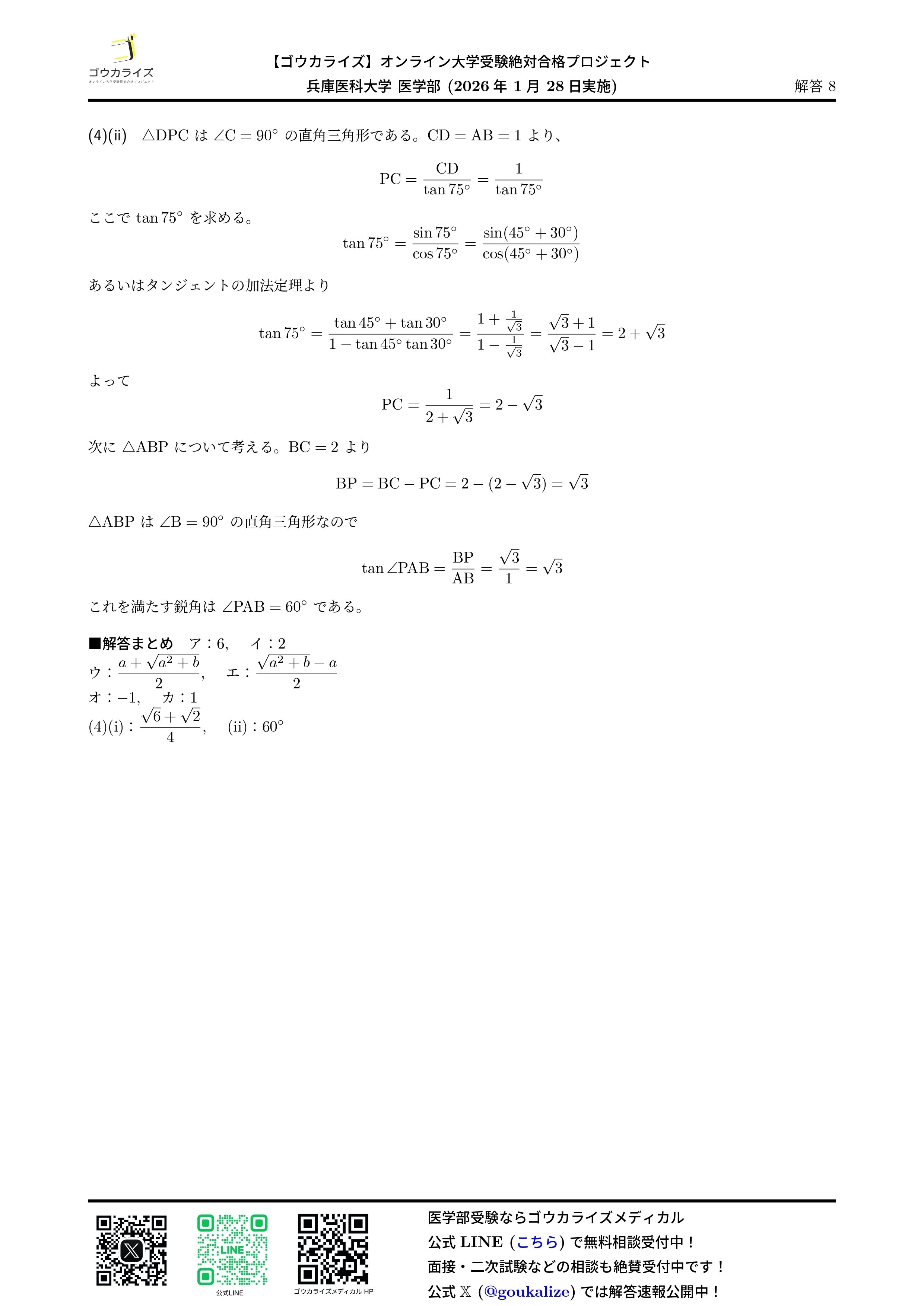 noteには画像を載せますが問題・解答解説をPDFで受け取りたい方は公式LINEで「兵庫医科大学解答速報」と送信してください。