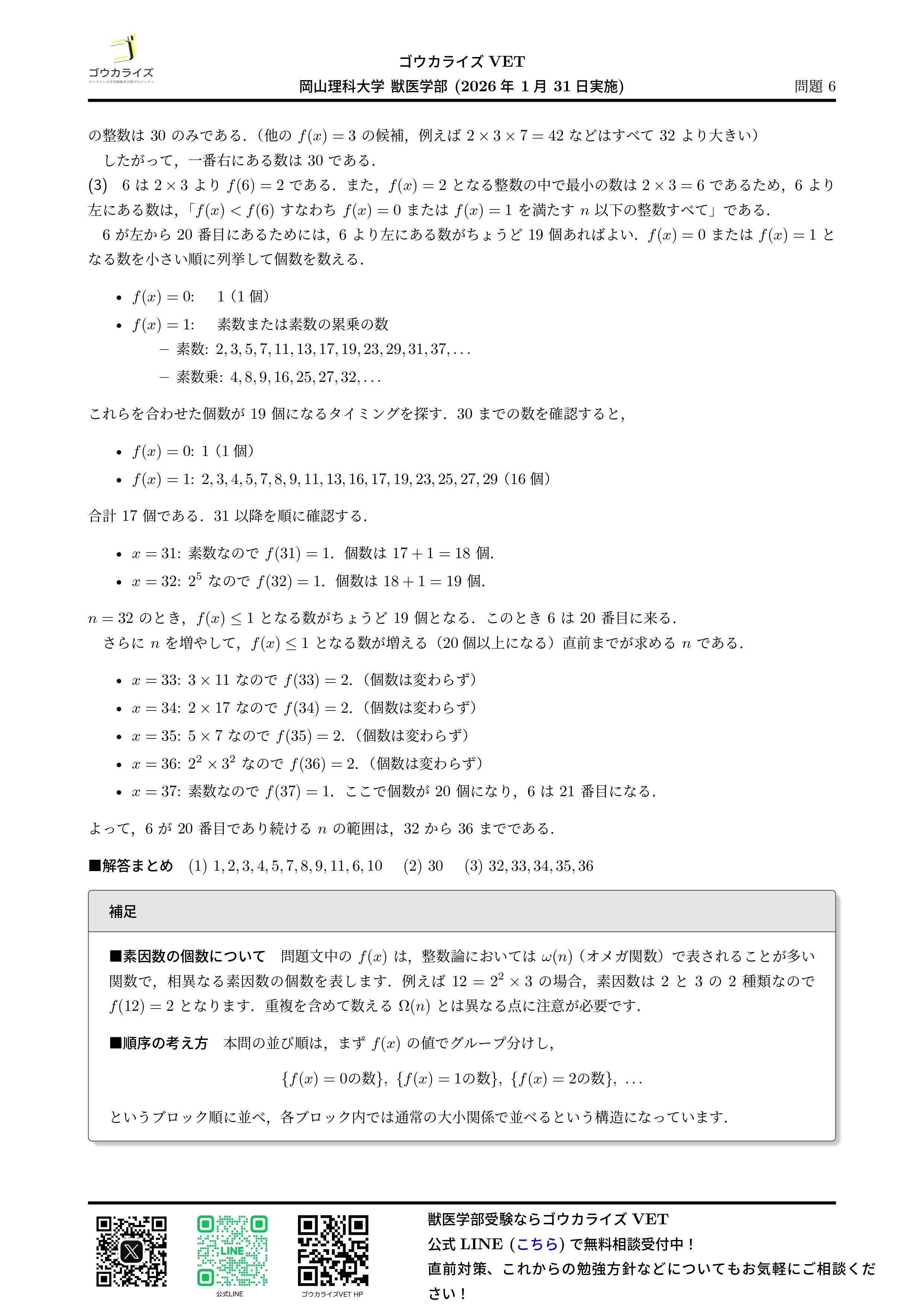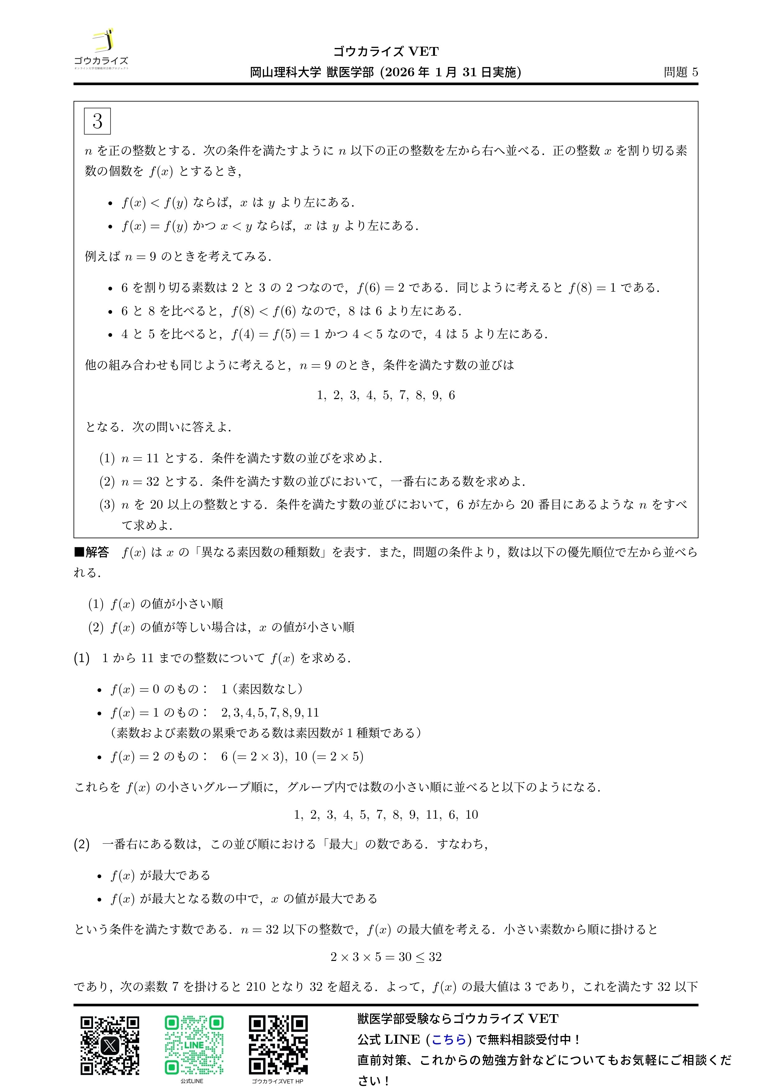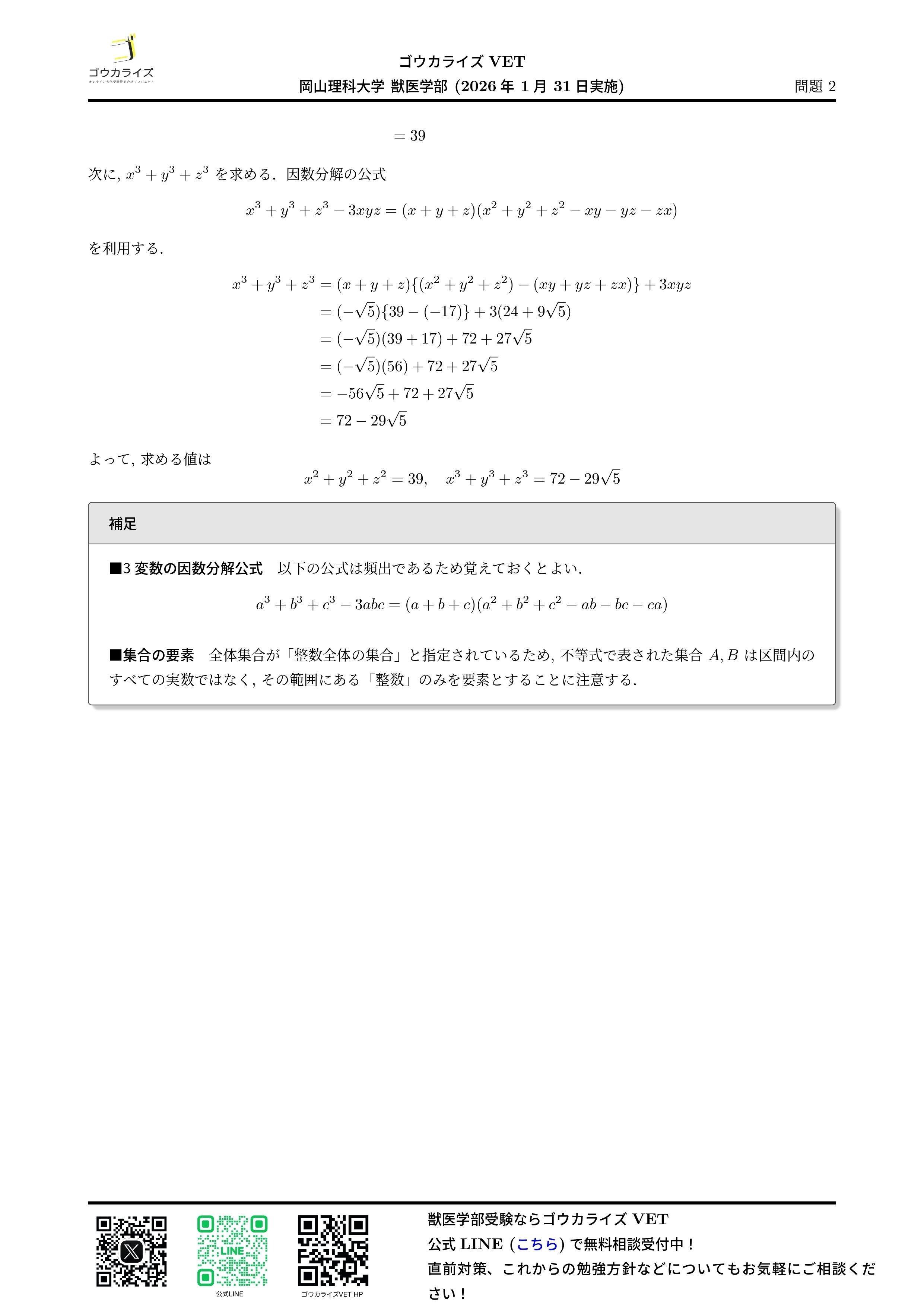 #解答速報 #獣医学部 #ゴウカライズ #獣医専門予備校 #入試数学