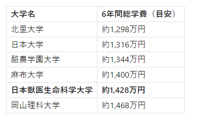 【リアルな数字】日本獣医生命科学大学、6年間の学費総額シミュレーション