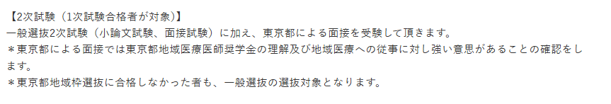 2.東京都地域枠選抜として合格した場合に、本学医学部への入学を確約できる者。