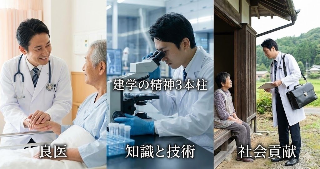 金沢医科大学の建学の精神は「良医を育てる」「知識と技術をきわめる」「社会に貢献する」の3本柱です。この3つを志望理由にどう結びつけるかを、具体的に見ていきましょう。