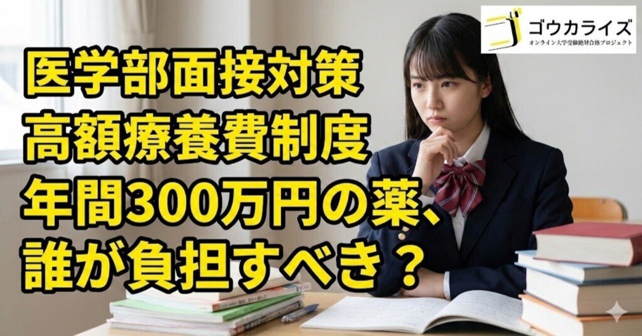 【医学部面接対策】高額療養費制度|年間300万円の薬、誰が負担すべき?