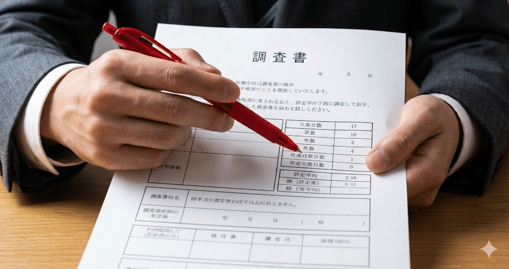 この記事では、面接官が調査書の「どこ」を重点的にチェックしているのか、そして欠席日数が多い場合や成績が悪い場合の「挽回トーク術」を徹底解説します。
