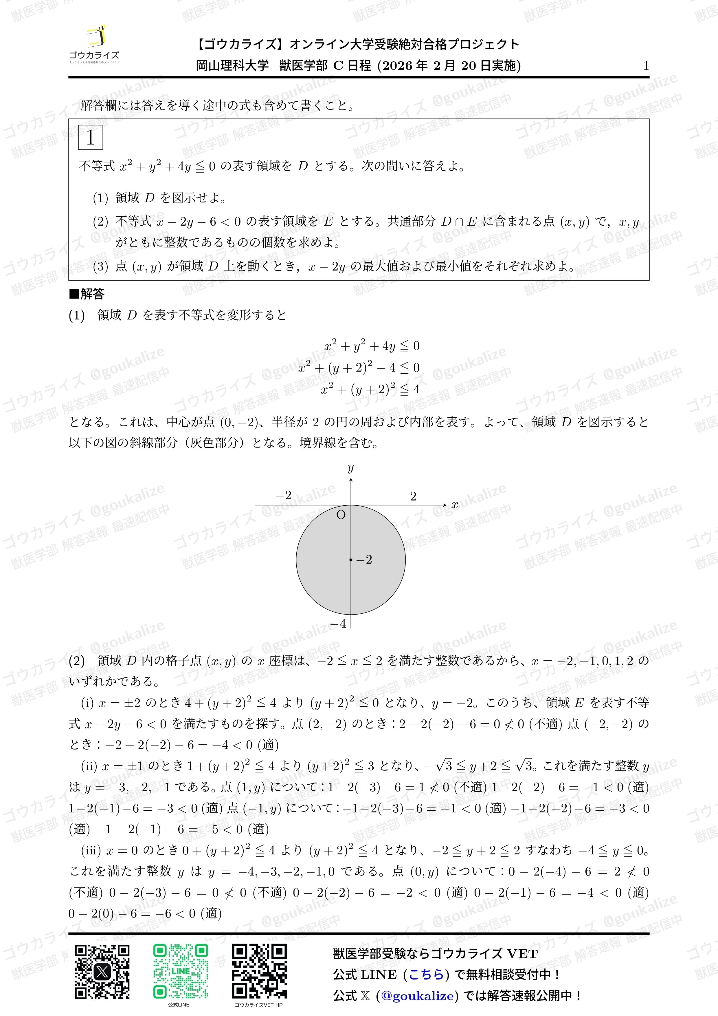 【2026年解答速報】岡山理科大学 獣医学部 前期C日程 全科目 (2/20実施)
