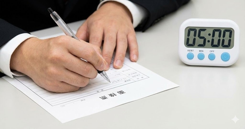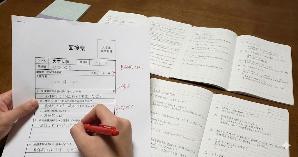 そして多くの場合、その後の面接は15分前後(年度・方式で変動) で行われ、面接では、この「面接票」が質問の“出発点”になることが多いため、何を書くかで話の主導権がかなり変わります。