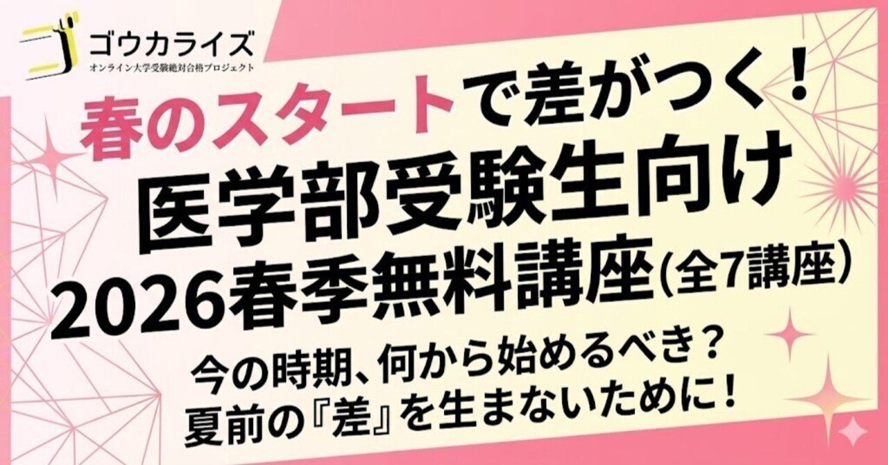春のスタートで差がつく!医学部受験生向け2026春季無料講座 (全7講座)