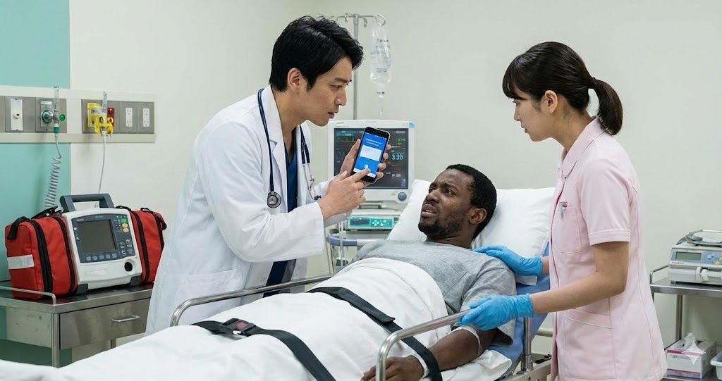 救急の現場では、翻訳アプリや指さしシートを活用しつつ、最低限の情報(アレルギー、常用薬、既往歴)を確認する努力が必要です。