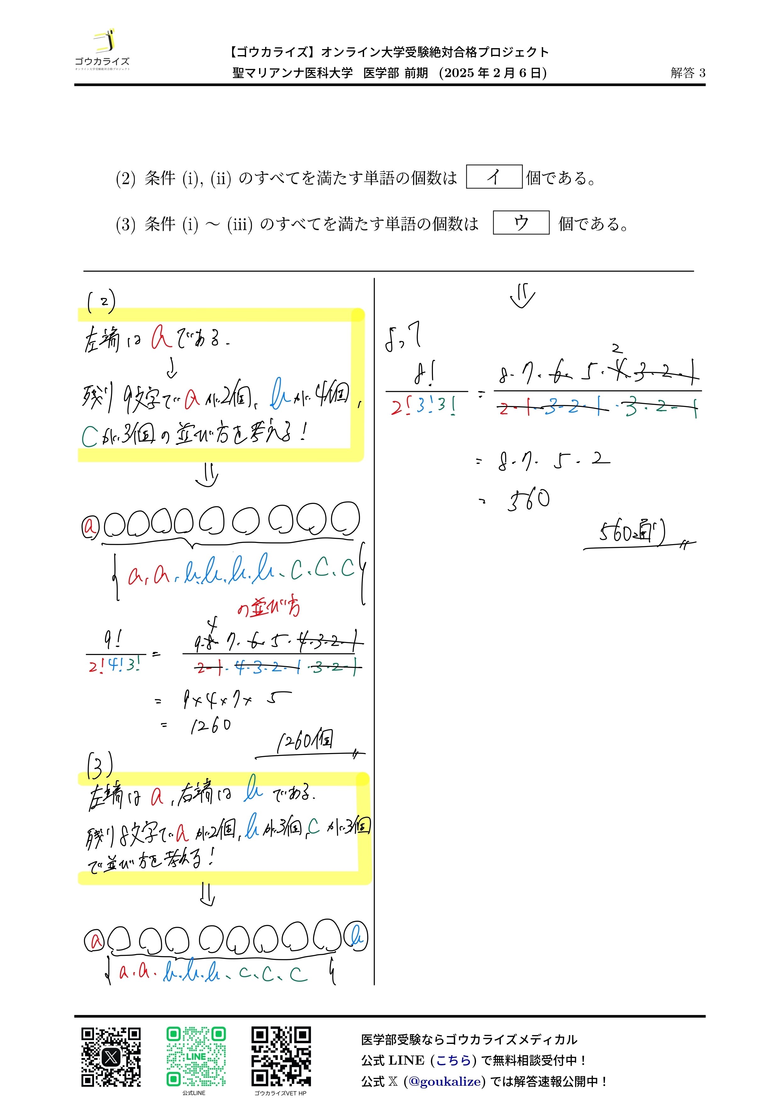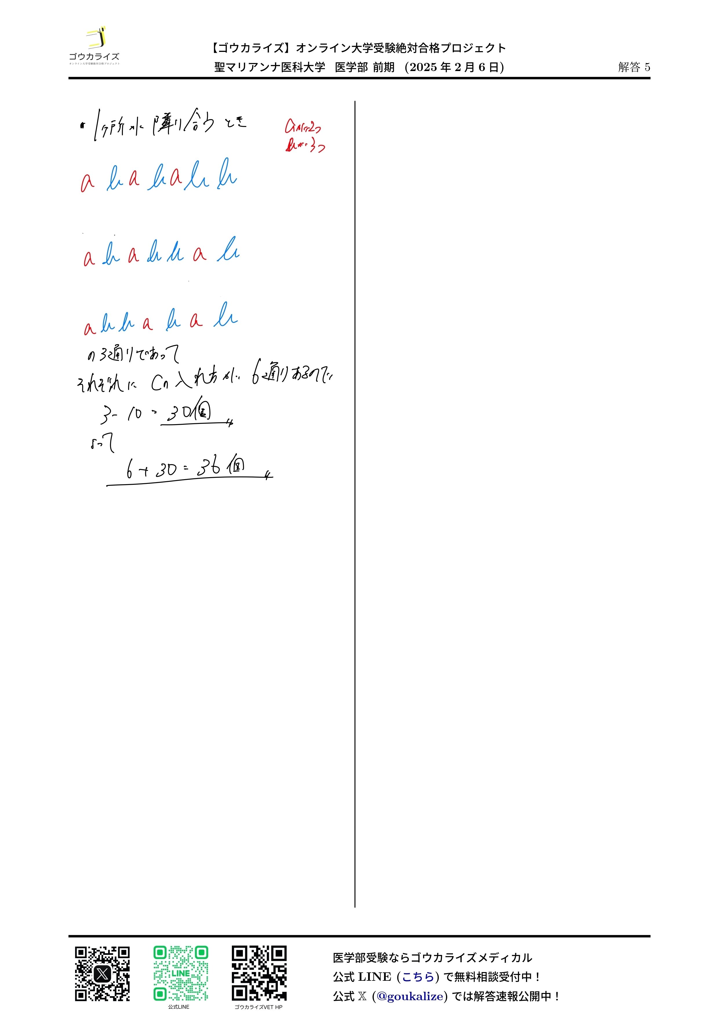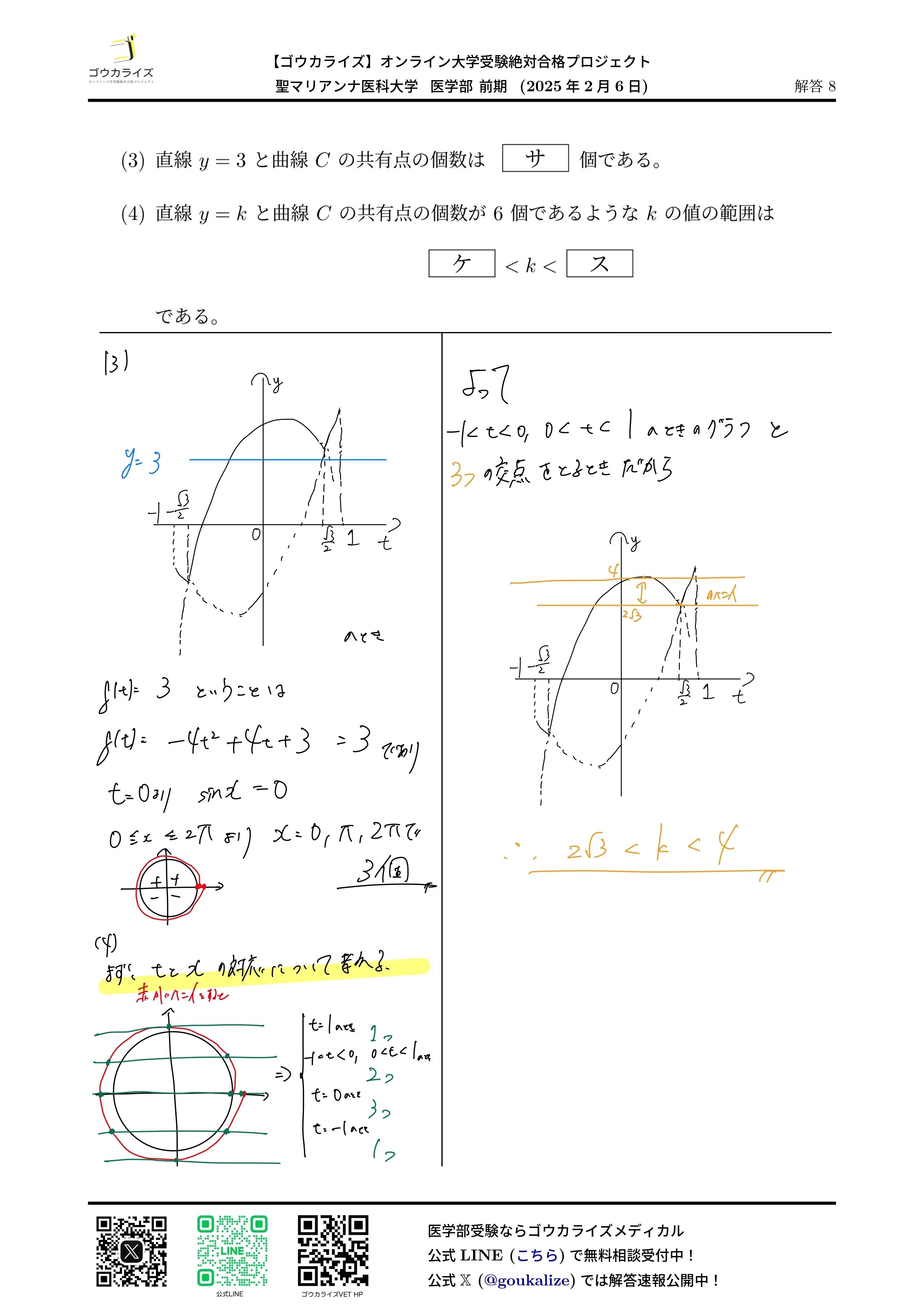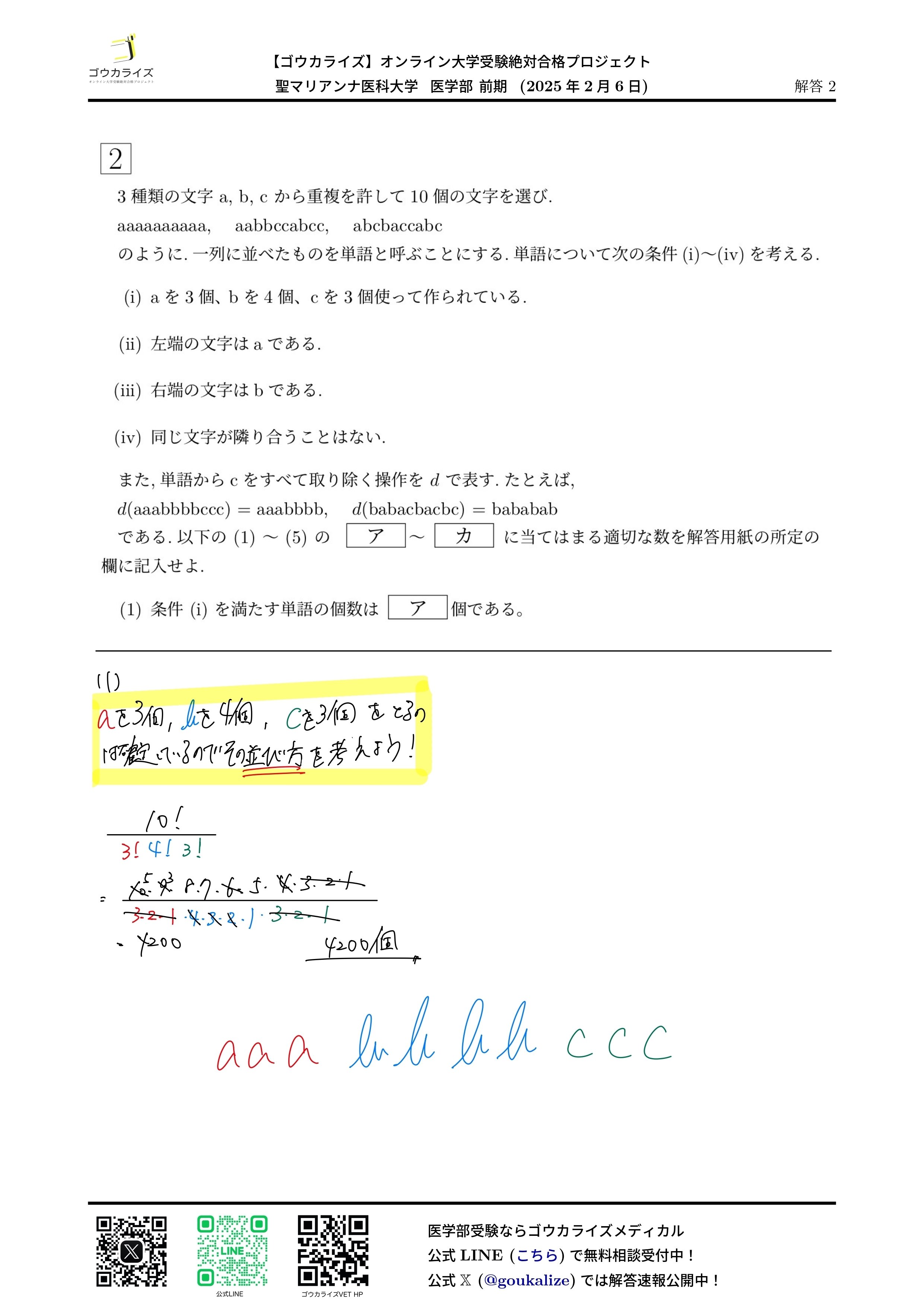 聖マリアンナ医科大学 医学部 前期 2025年(2/6) 数学 解答速報
