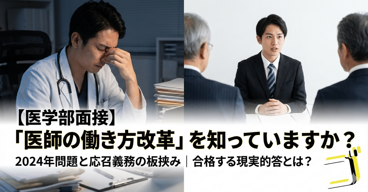 面接では、この「法律(働き方改革)」と「倫理(応召義務)」の対立構造 を理解しているかどうかが試されます。