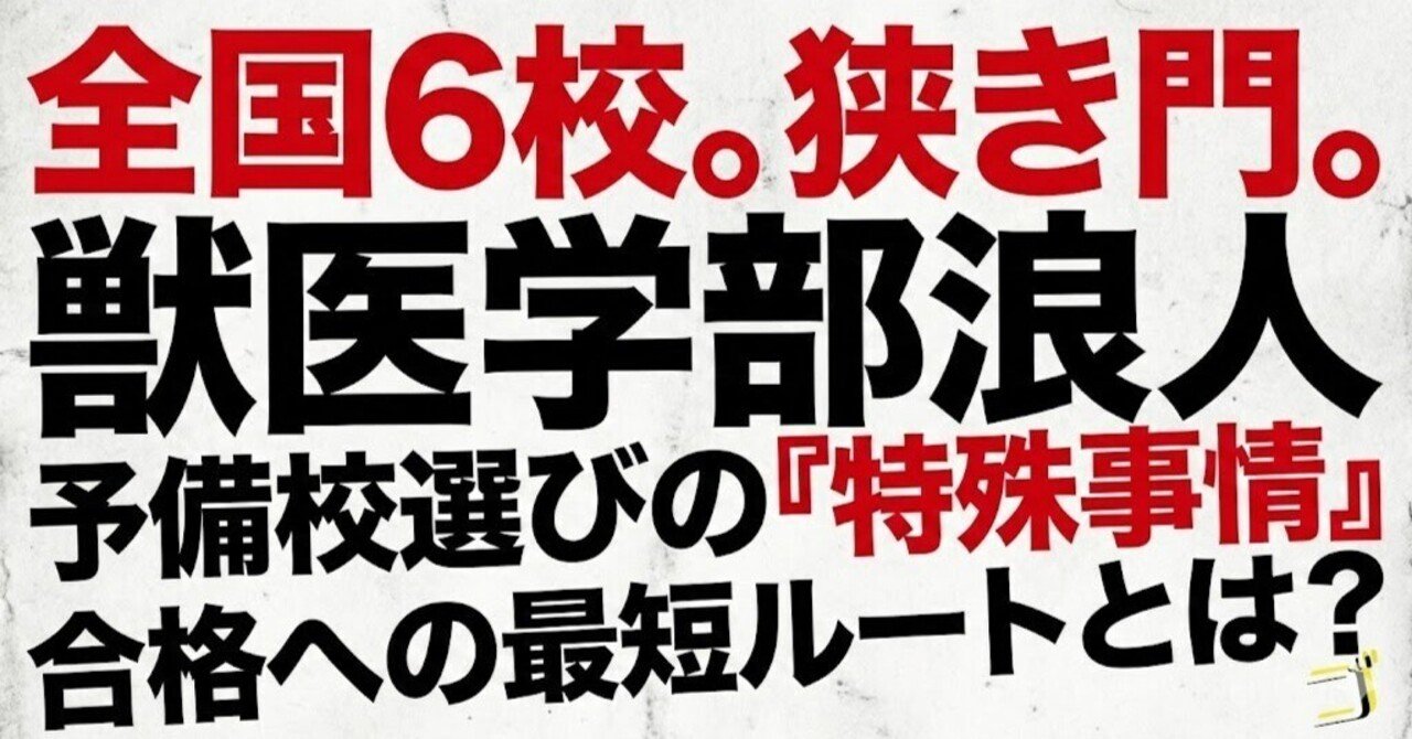 この記事では、獣医学部浪人の予備校選びについて、全国私立6校という特殊な受験市場における大手・獣医専門・コーチング各形態の実情と、選び方の視点を整理します。