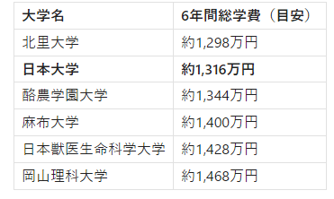 【リアルな数字】日本大学 獣医学科、6年間の学費総額シミュレーション