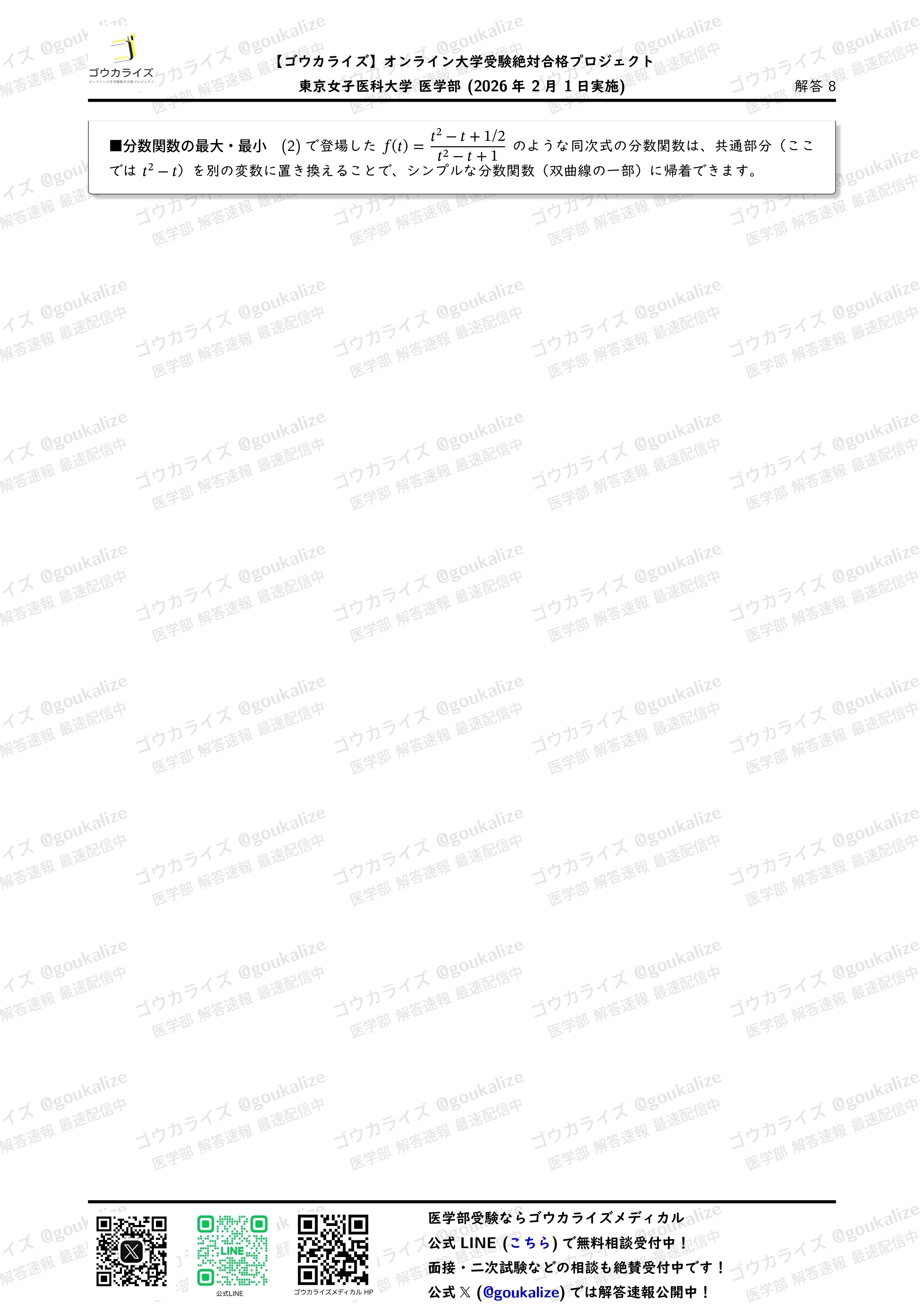 オープンチャット「2026年 医学部 解答速報【ゴウカライズ】」