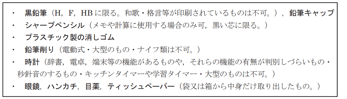時計は試験中の時間管理に欠かせません。ただし、「受験上の注意」7ページで禁止されている時計もあるので確認してください。