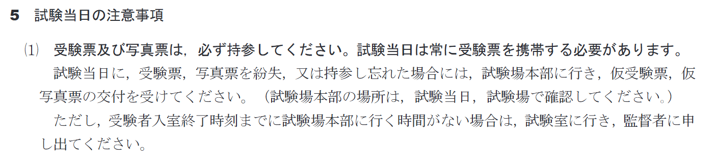 2. 受験票・写真票は絶対に忘れない