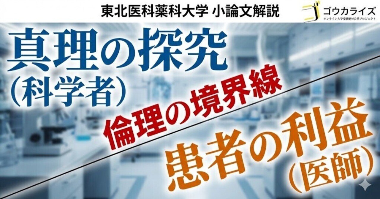 今回は、東北医科薬科大学医学部で2016年度に出題された「医師と科学者の倫理」に関する問題を解説します。