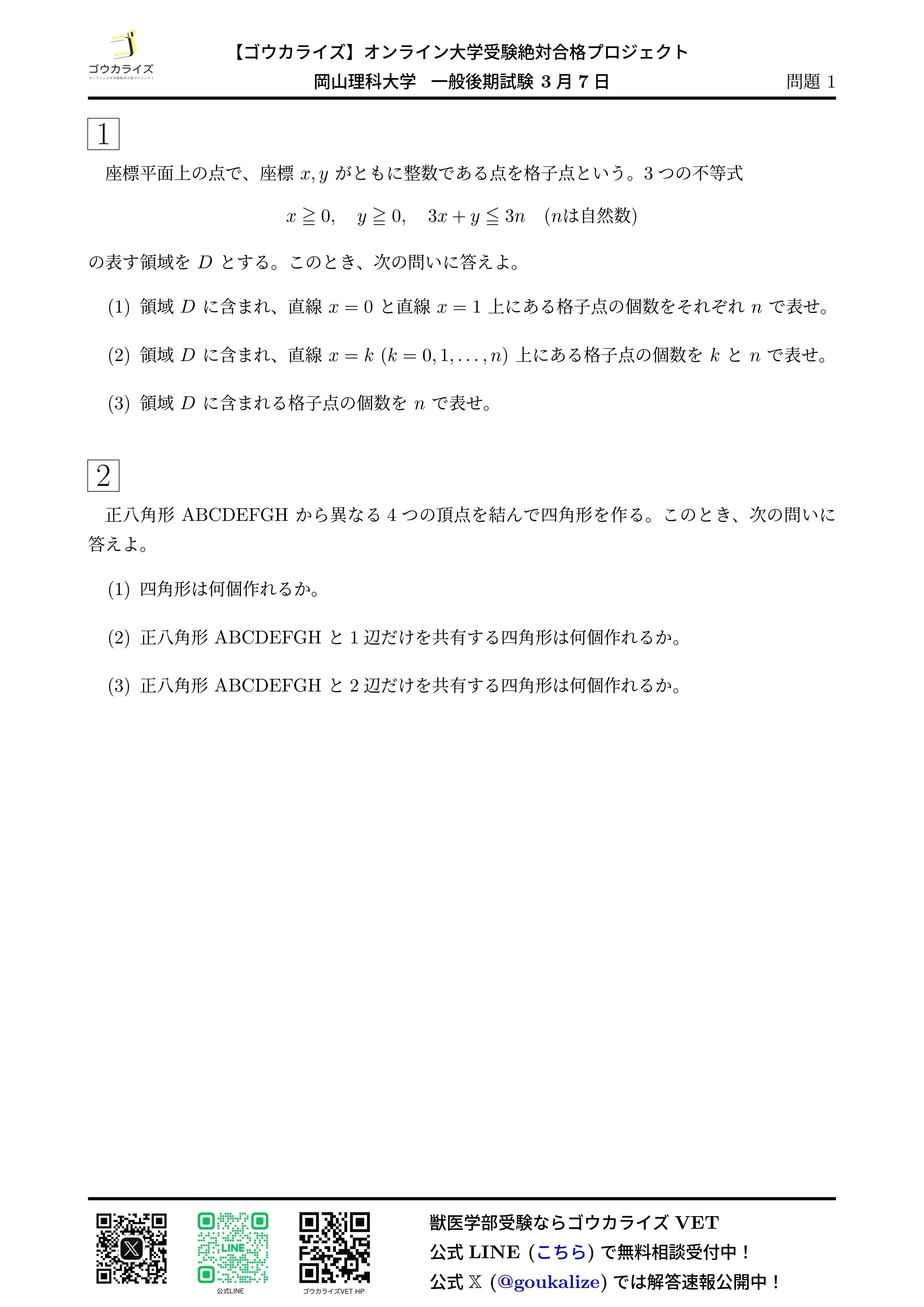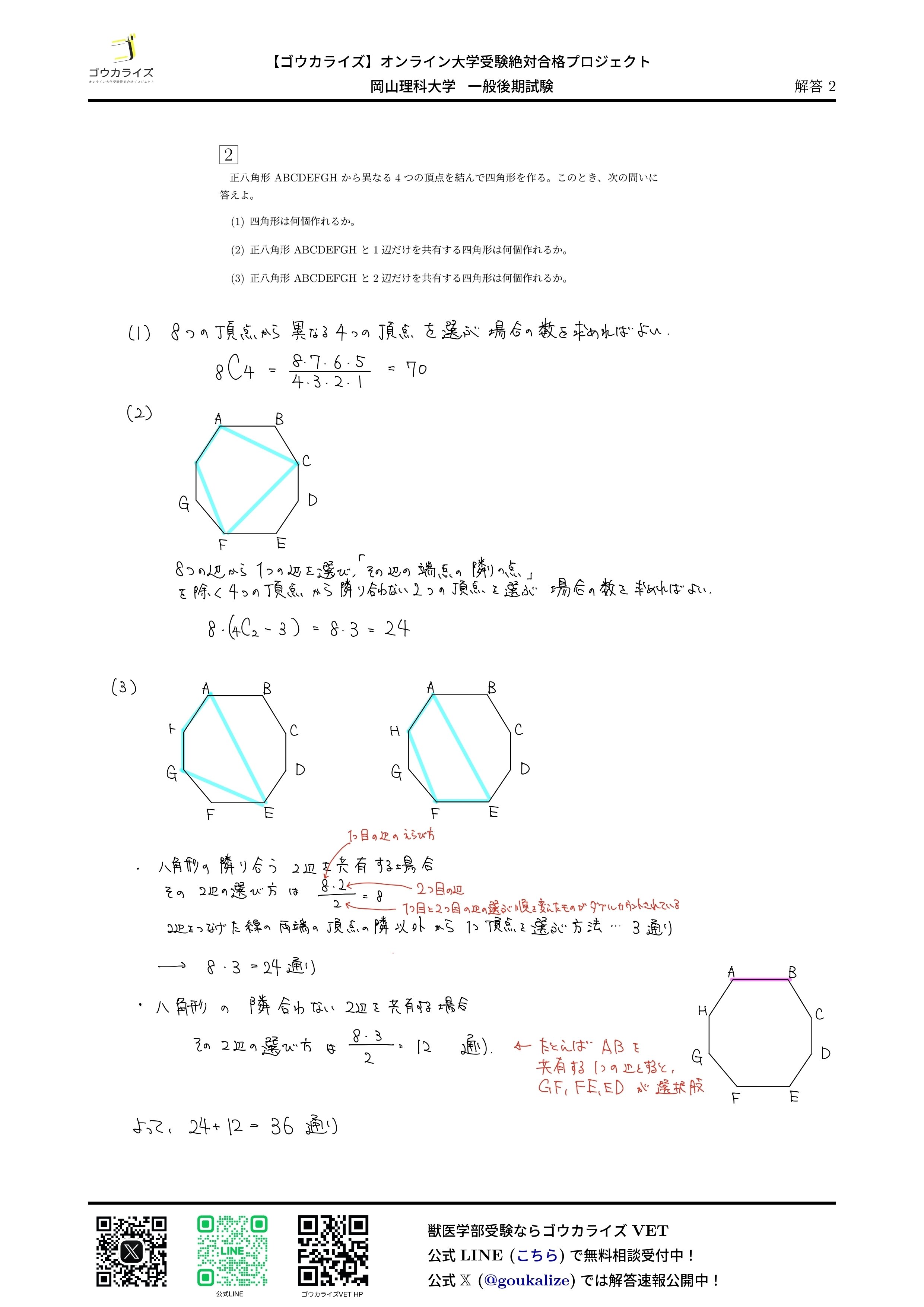 2025年 岡山理科大学 獣医学部 一般入試後期日程 解答速報