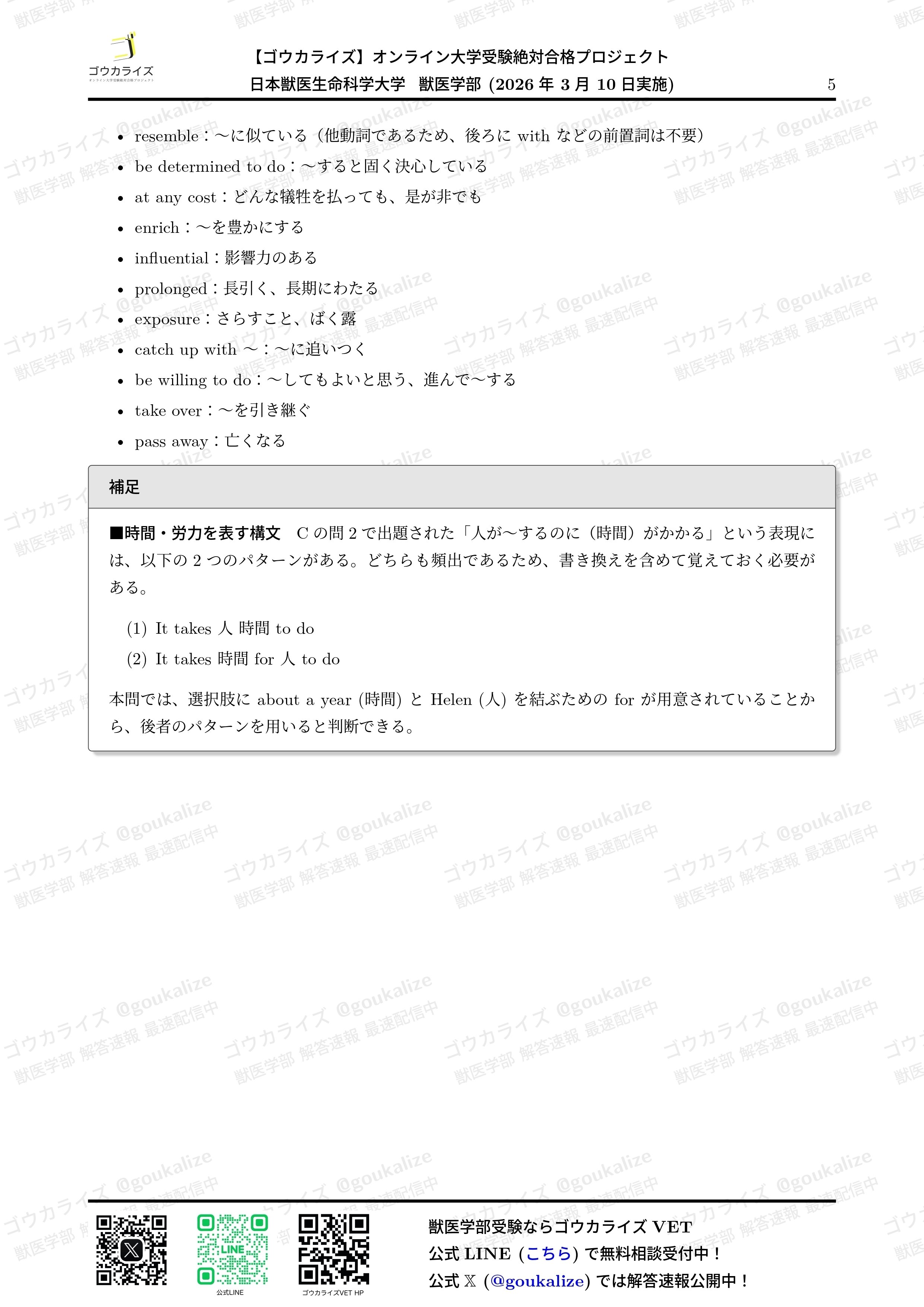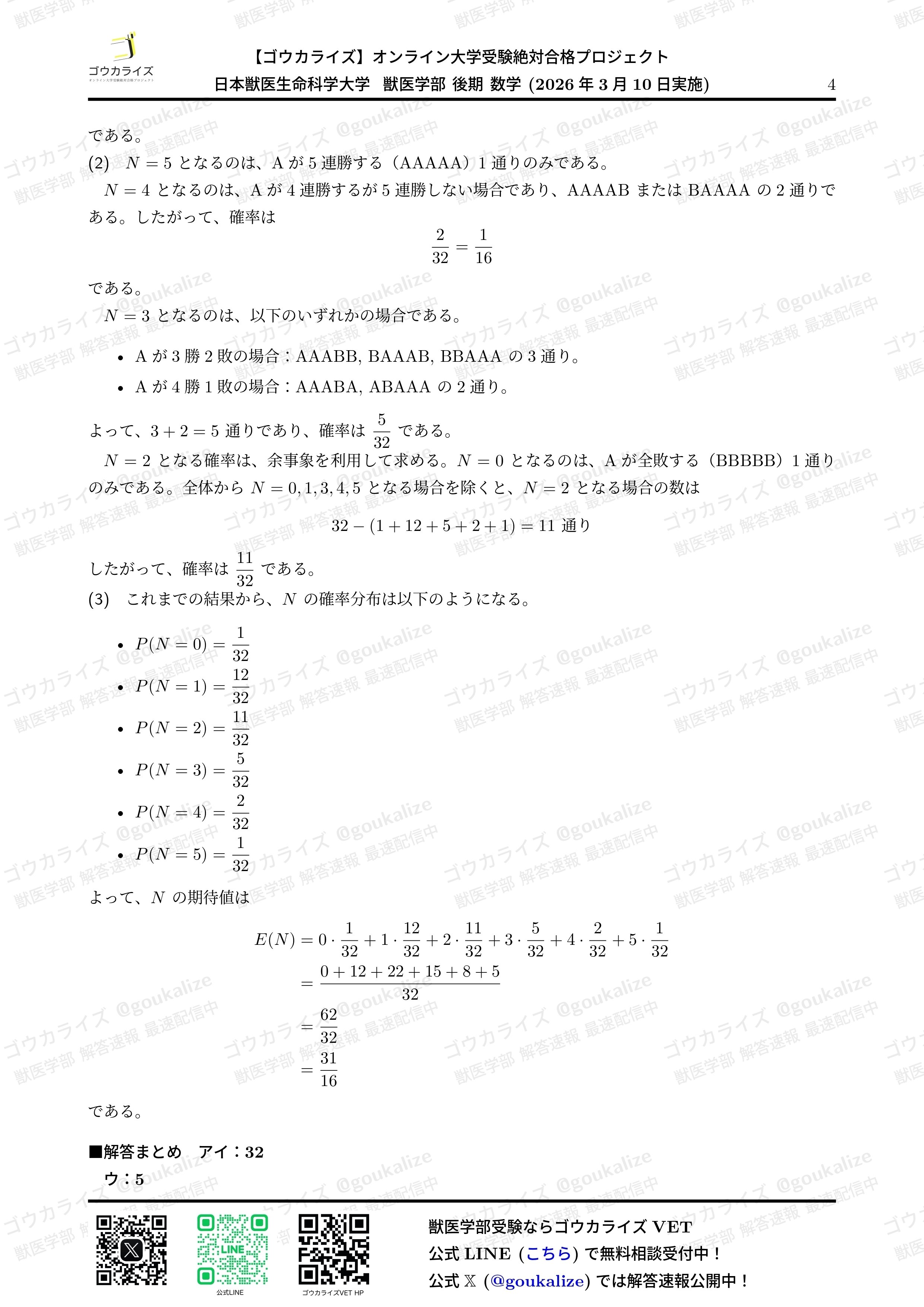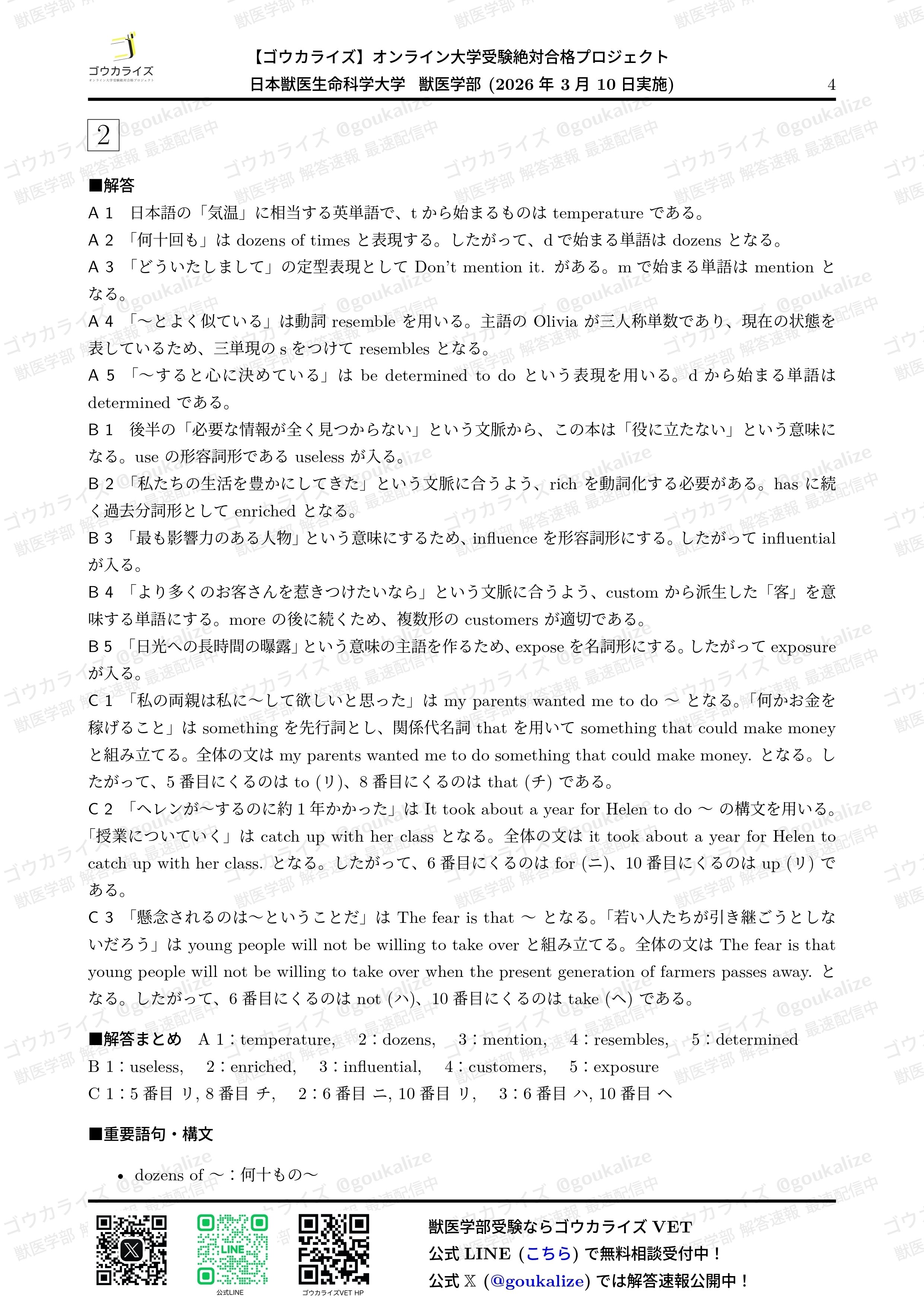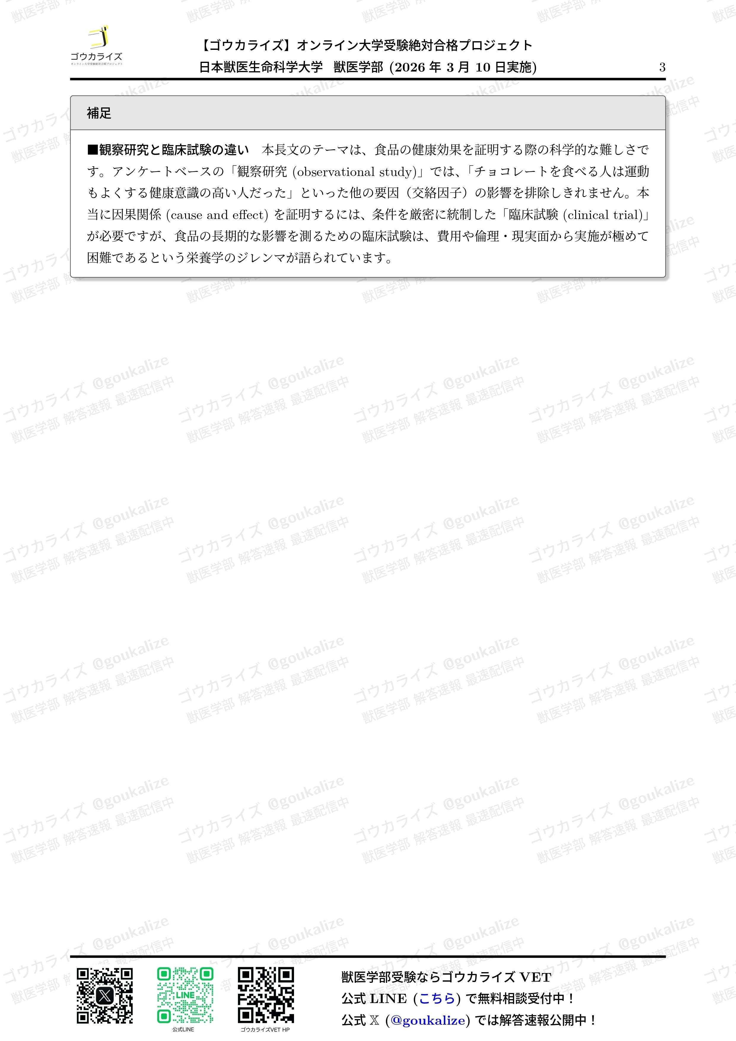 オープンチャット「【ゴウカライズ】2026年 獣医学部 解答速報」