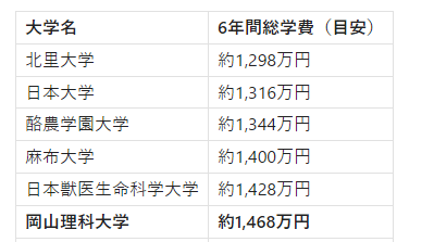 【リアルな数字】岡山理科大学 獣医学部、6年間の学費総額シミュレーション