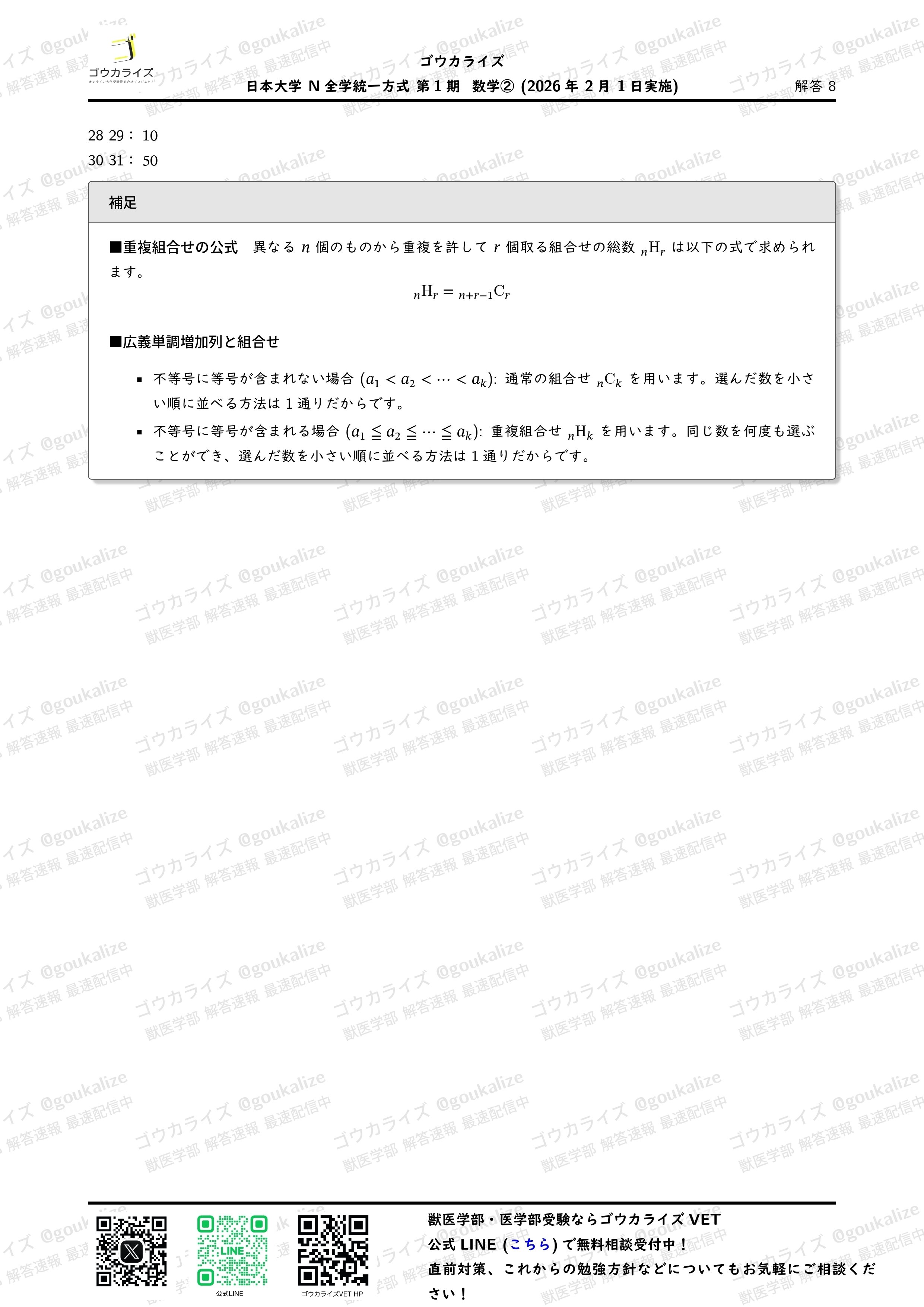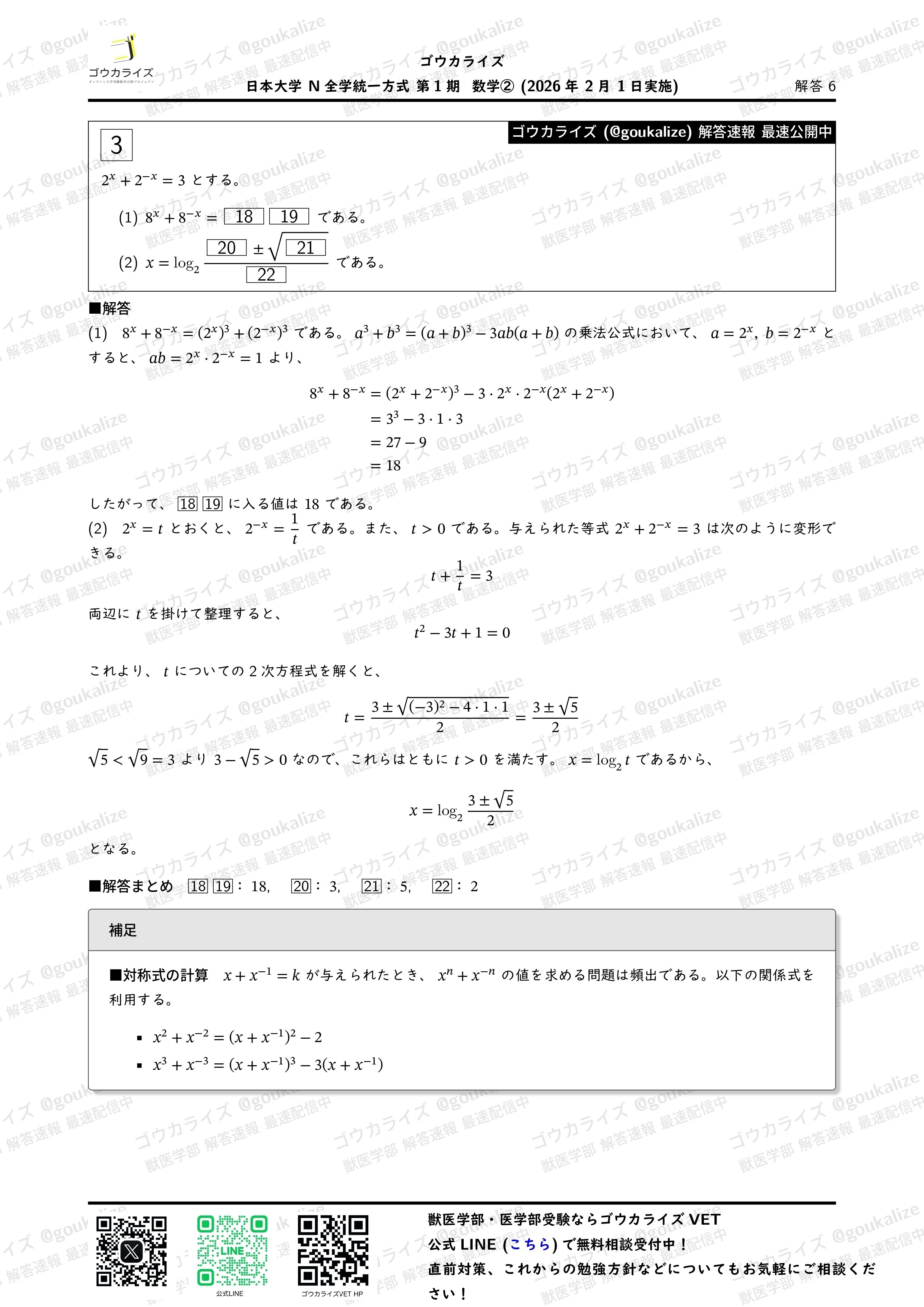#解答速報 #獣医学部 #ゴウカライズ #獣医専門予備校 #入試数学