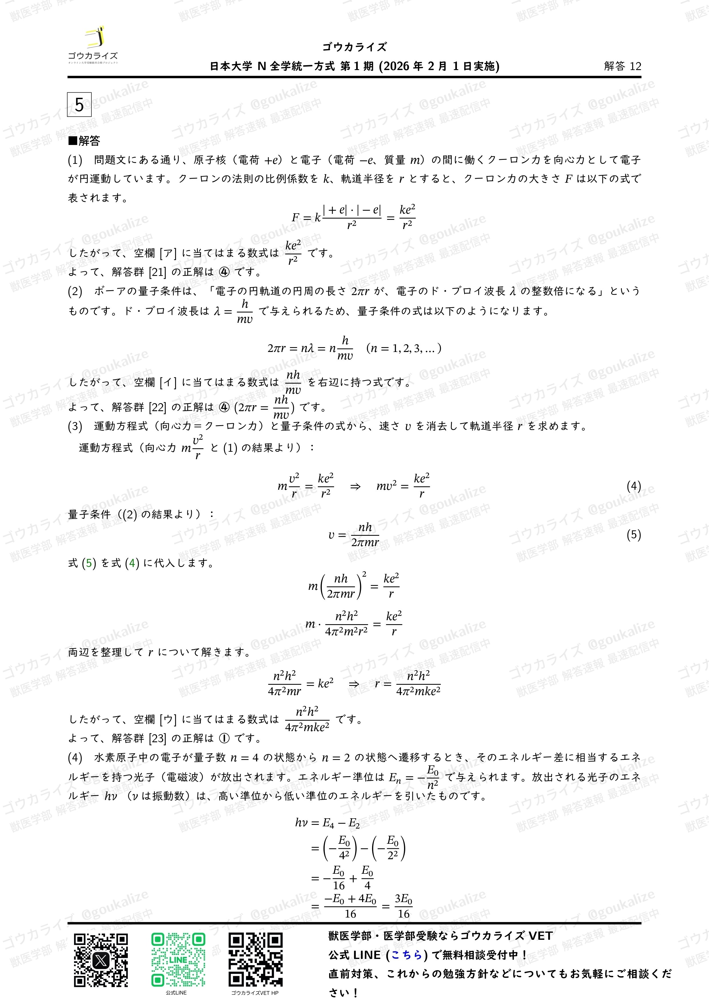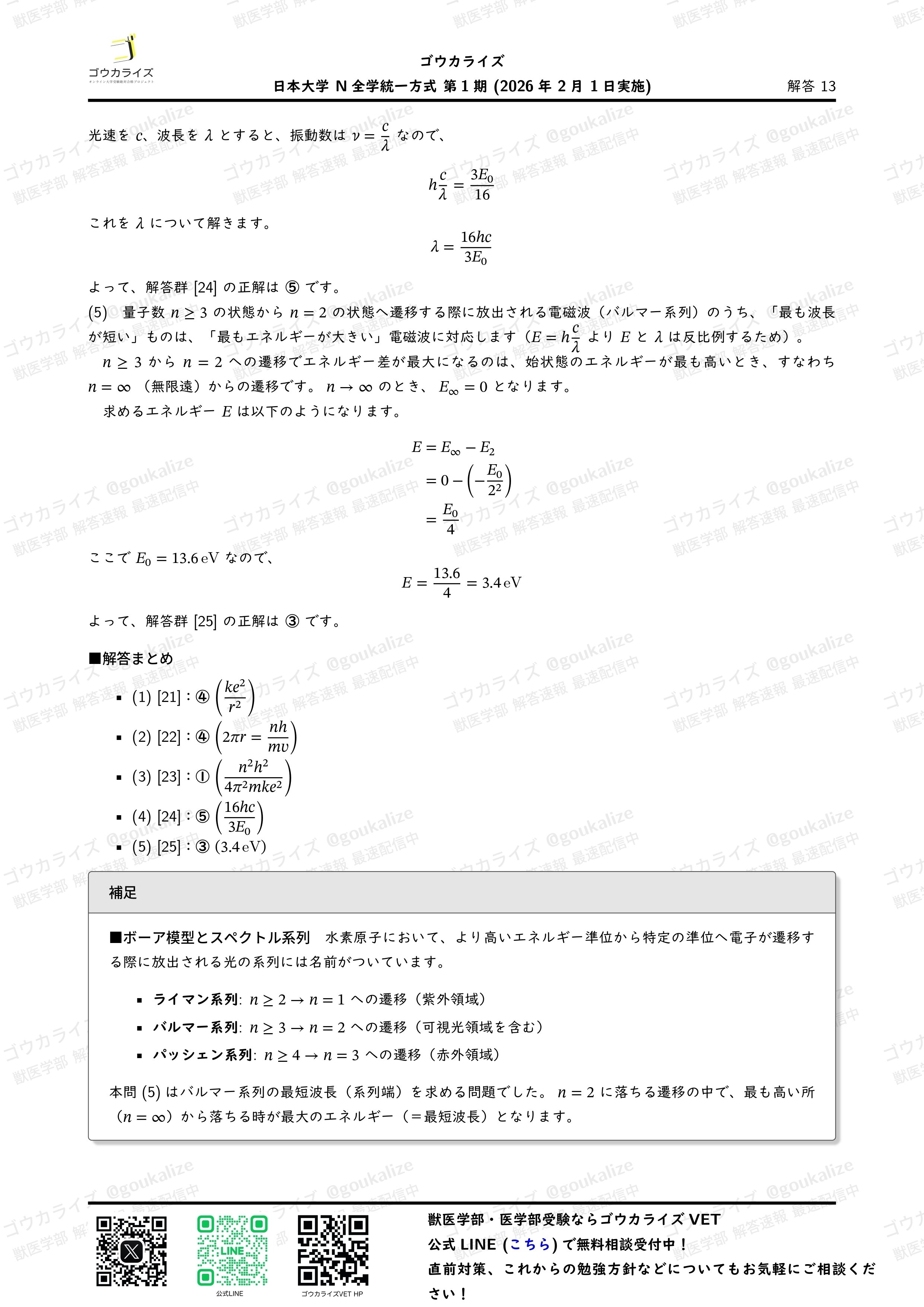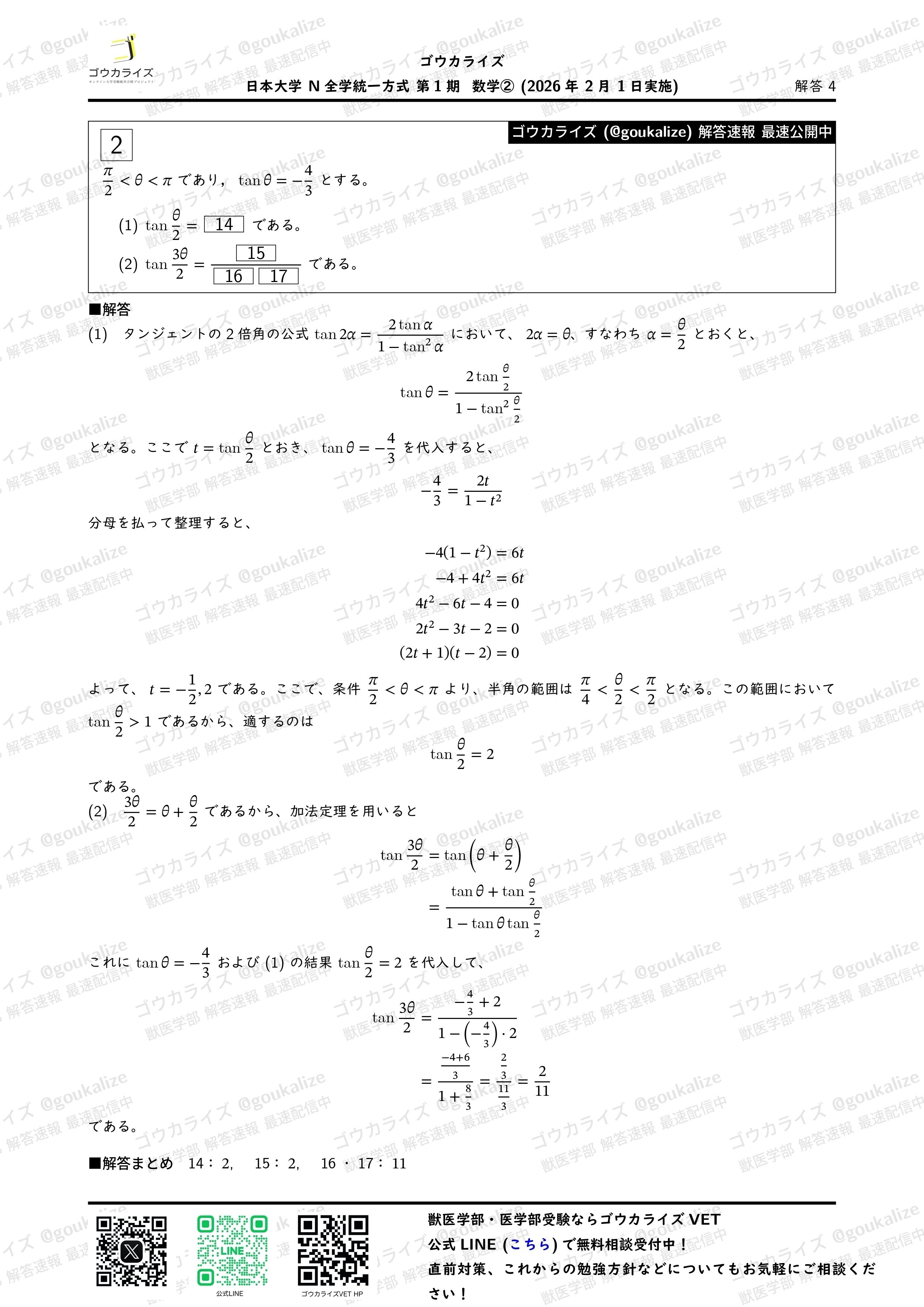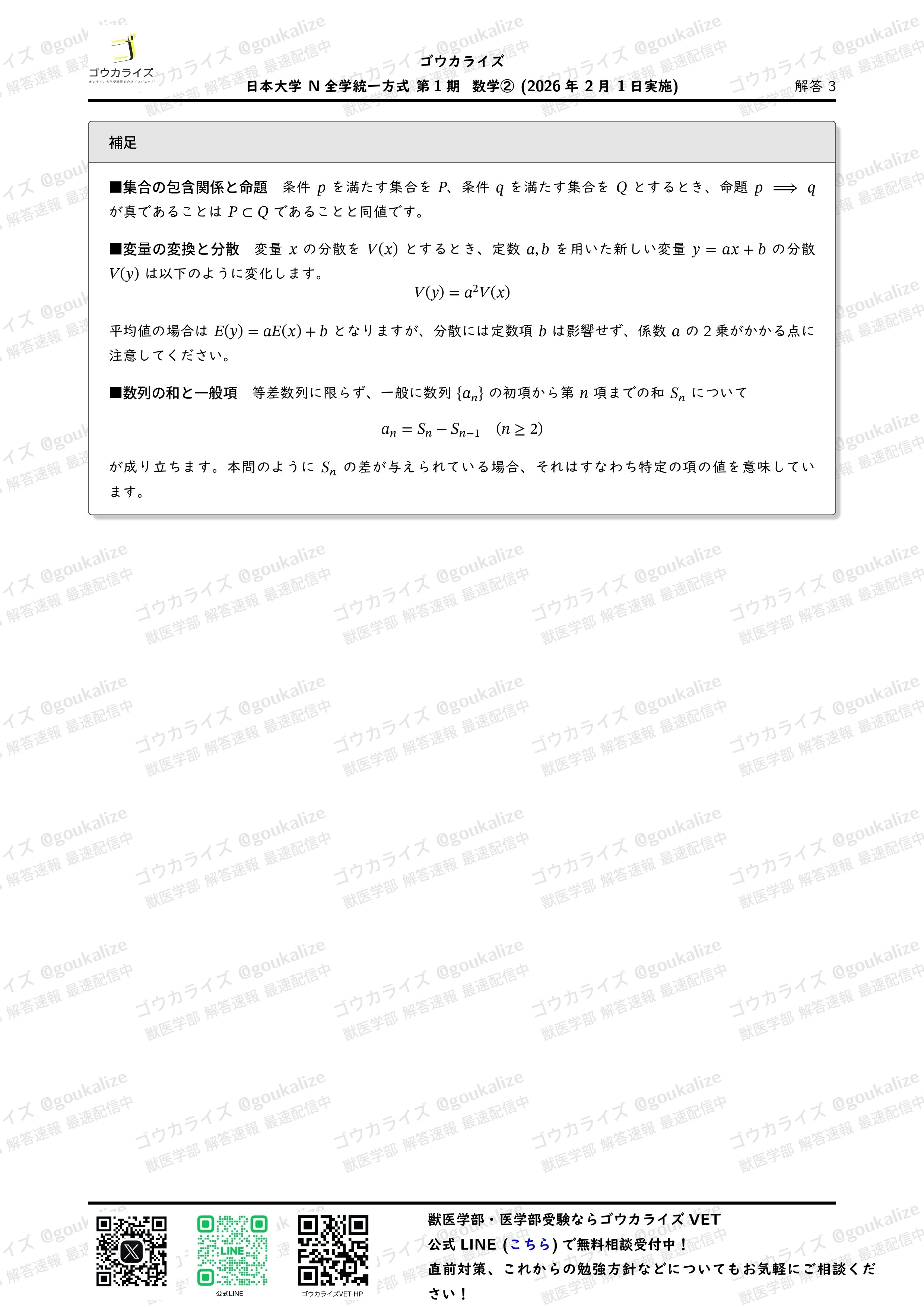 noteには画像を載せますが問題・解答解説をPDFで受け取りたい方は公式LINEで「日本大学解答速報」と送信してください。