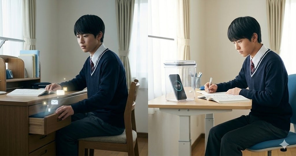 勉強中のスマホ、どうやって遠ざけようとしましたか?自分の場合、こんな感じでした。